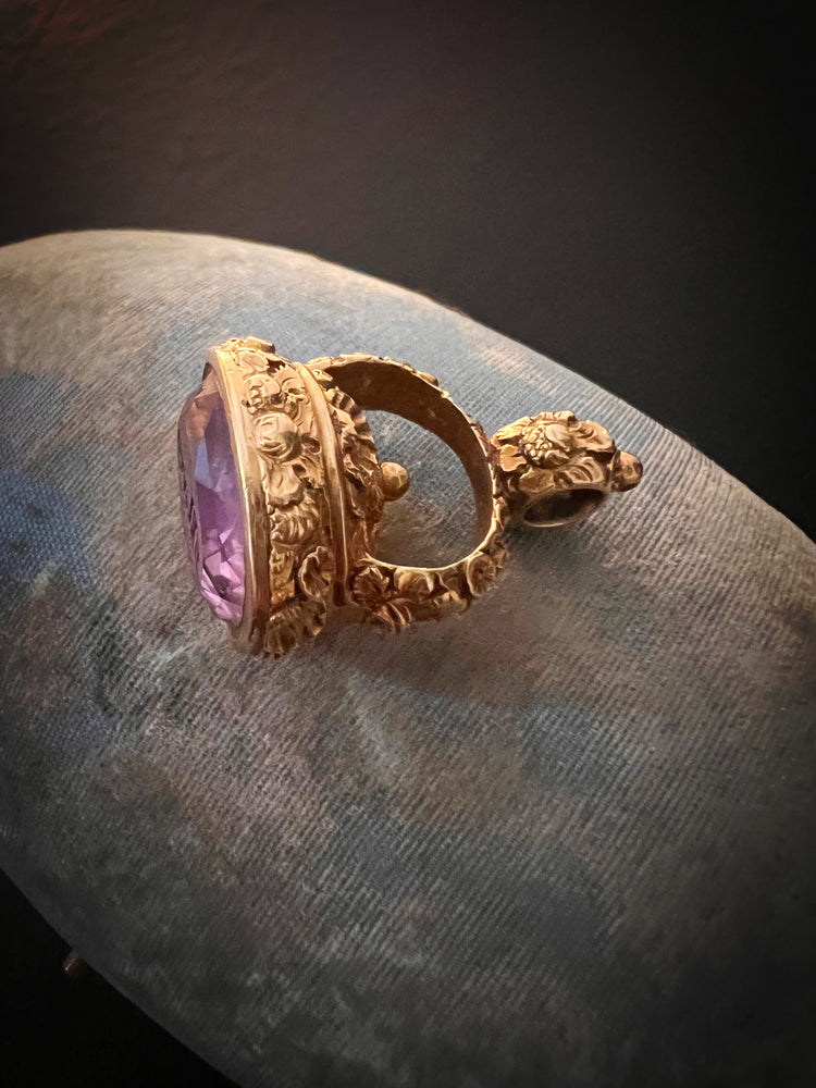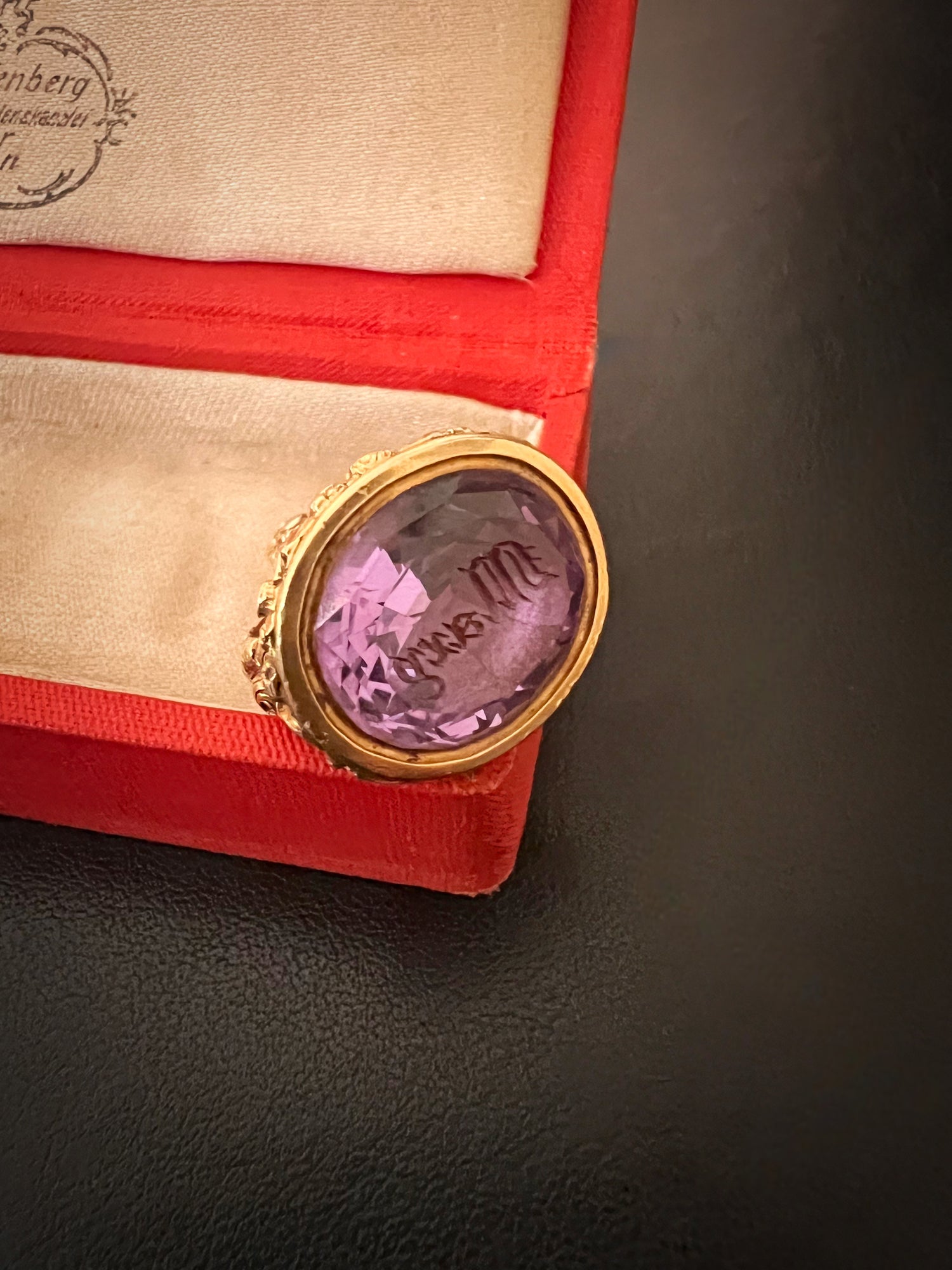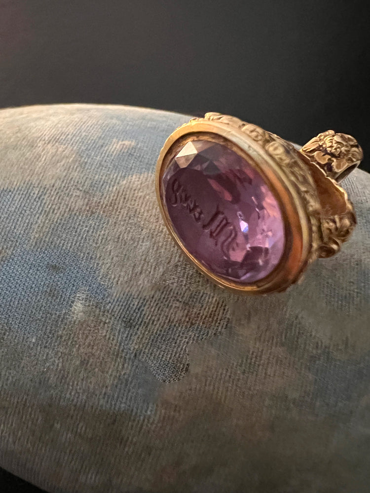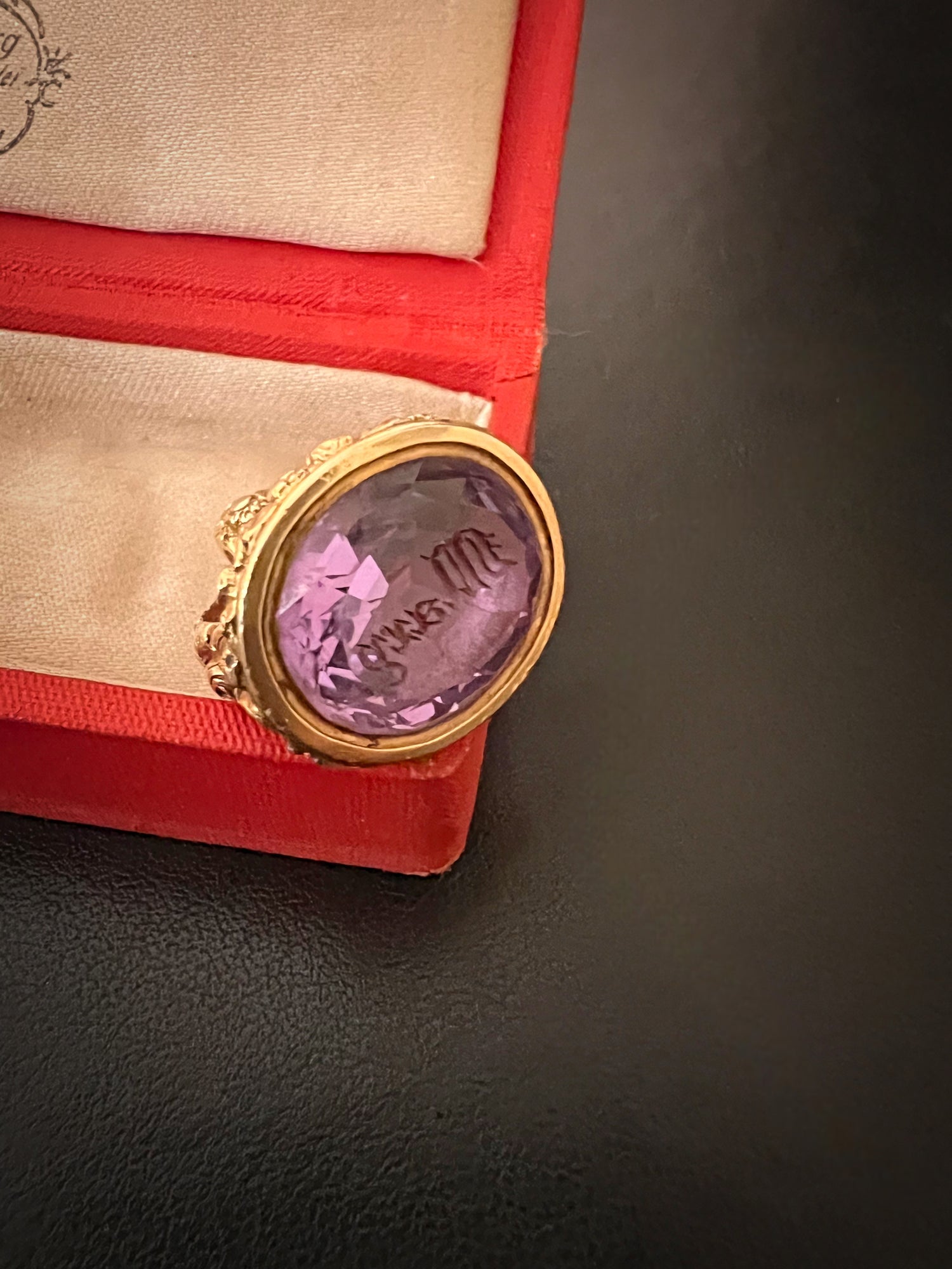 The amethyst faceted intaglio bares the name ‘Mary’ in a gothic style script!