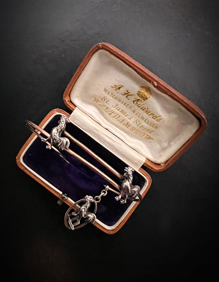 The bangle has the French Boars head mark for silver (the roosters) and a makers mark.