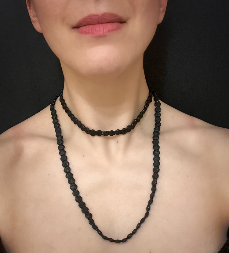 The beads catch the light, so it twinkles when worn! Perfect in candle light!