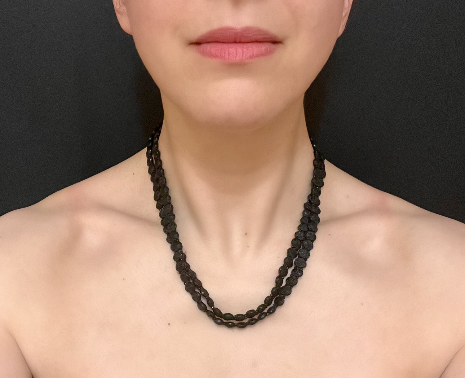 We recommend removing pieces of jewellery before washing hands or showering, as water can damage the antique settings.