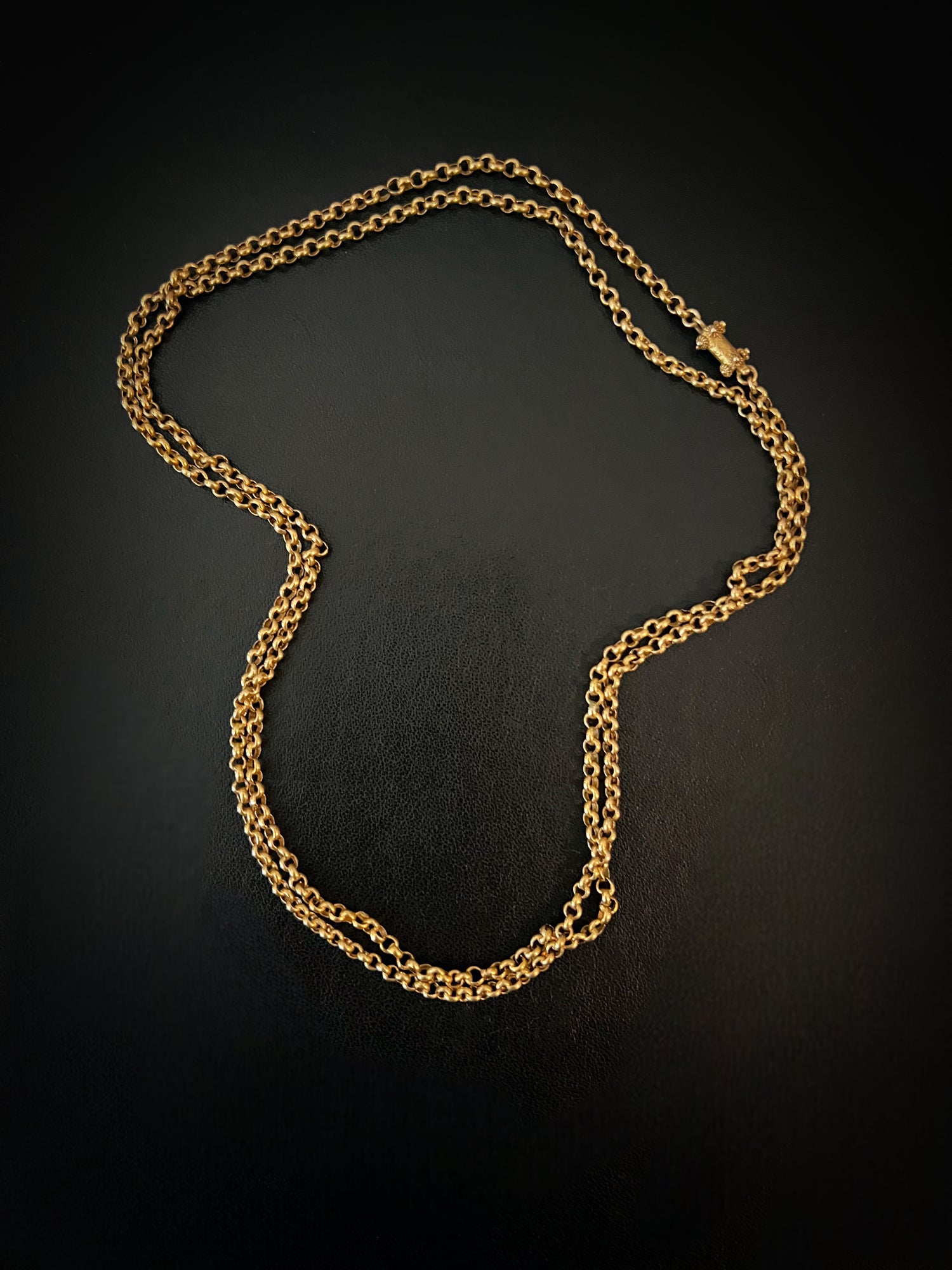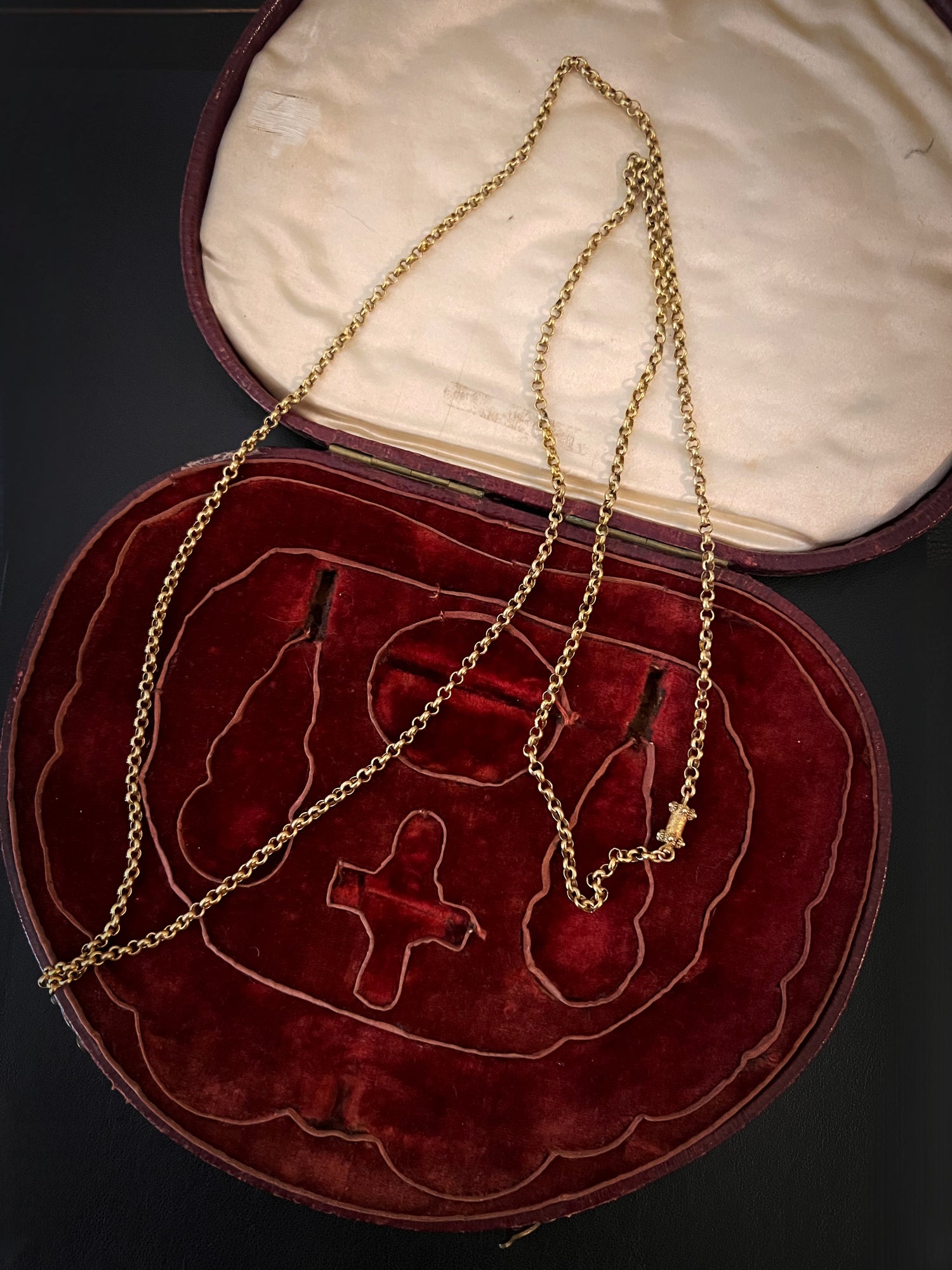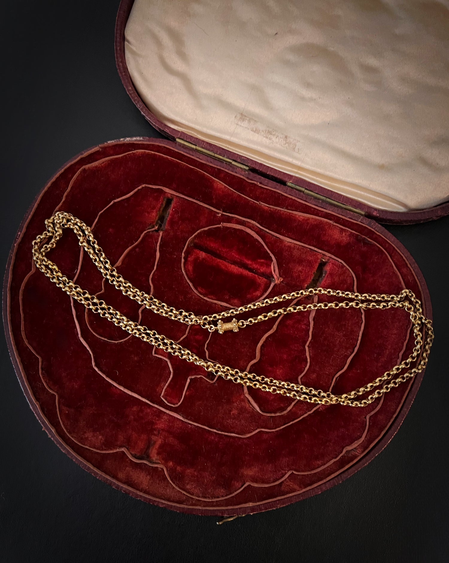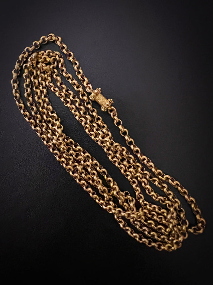 This is an absolutely stunning Georgian chain with a beautiful chased and filigree barrel clasp!!!