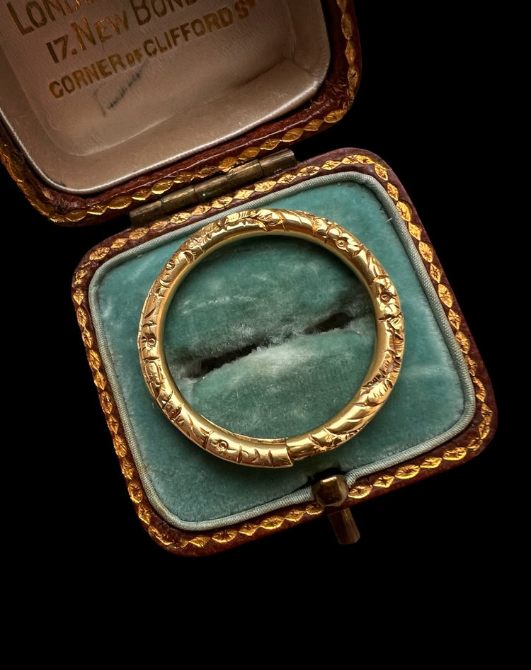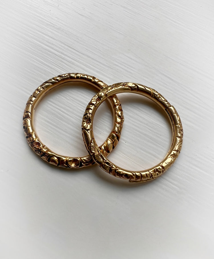 Circa 1830; the ring is a great weight, and size, with lovely chasing all over.