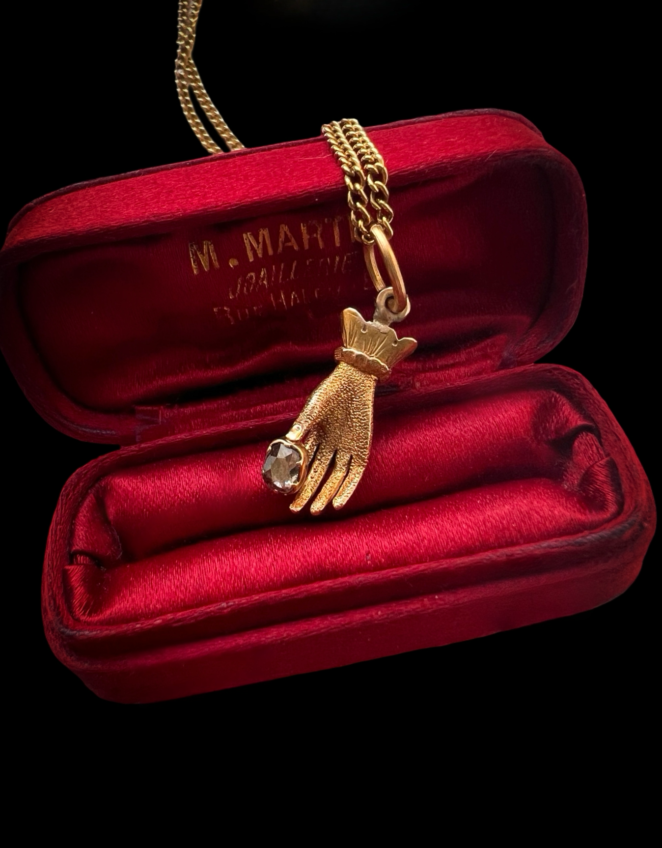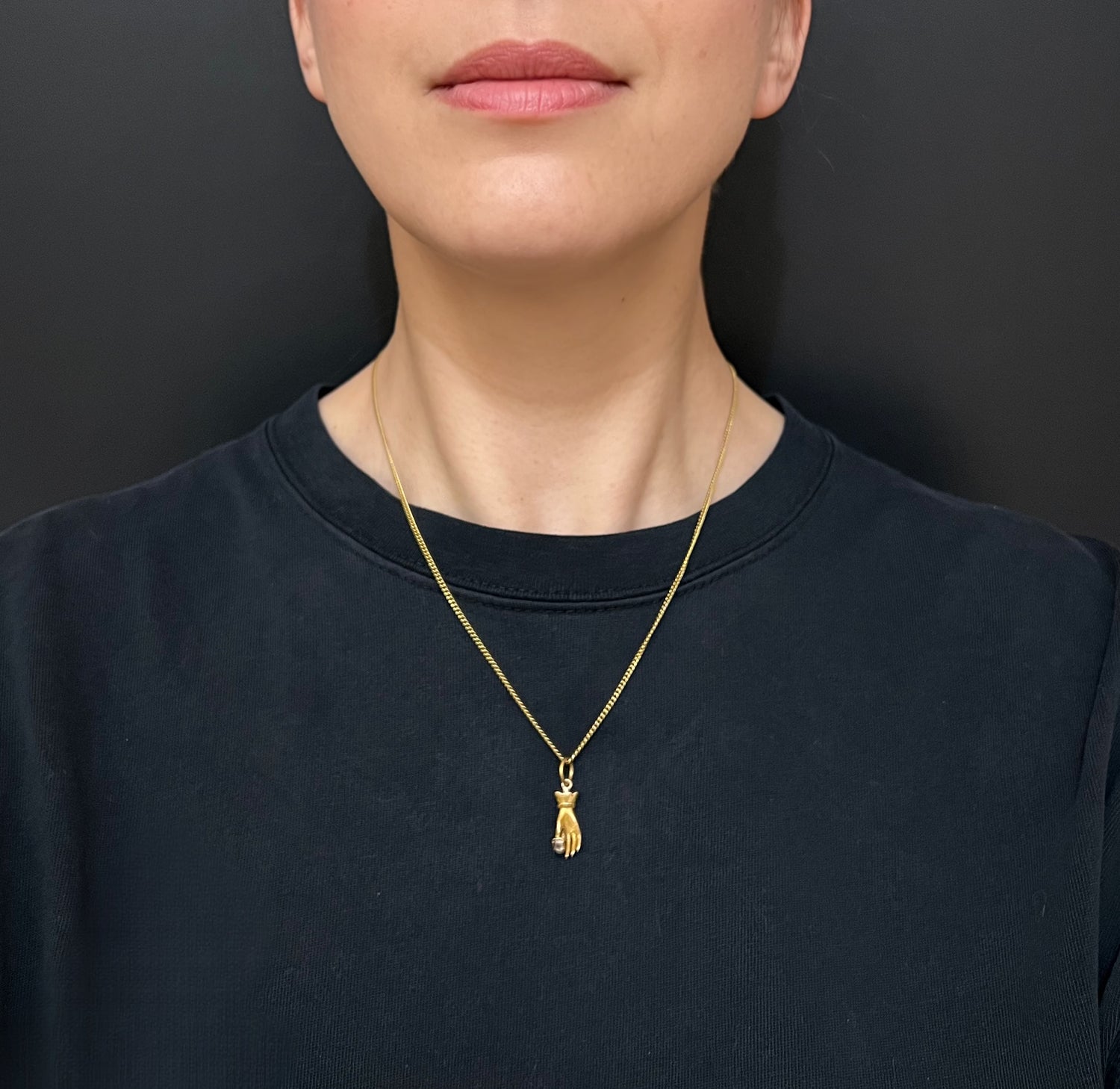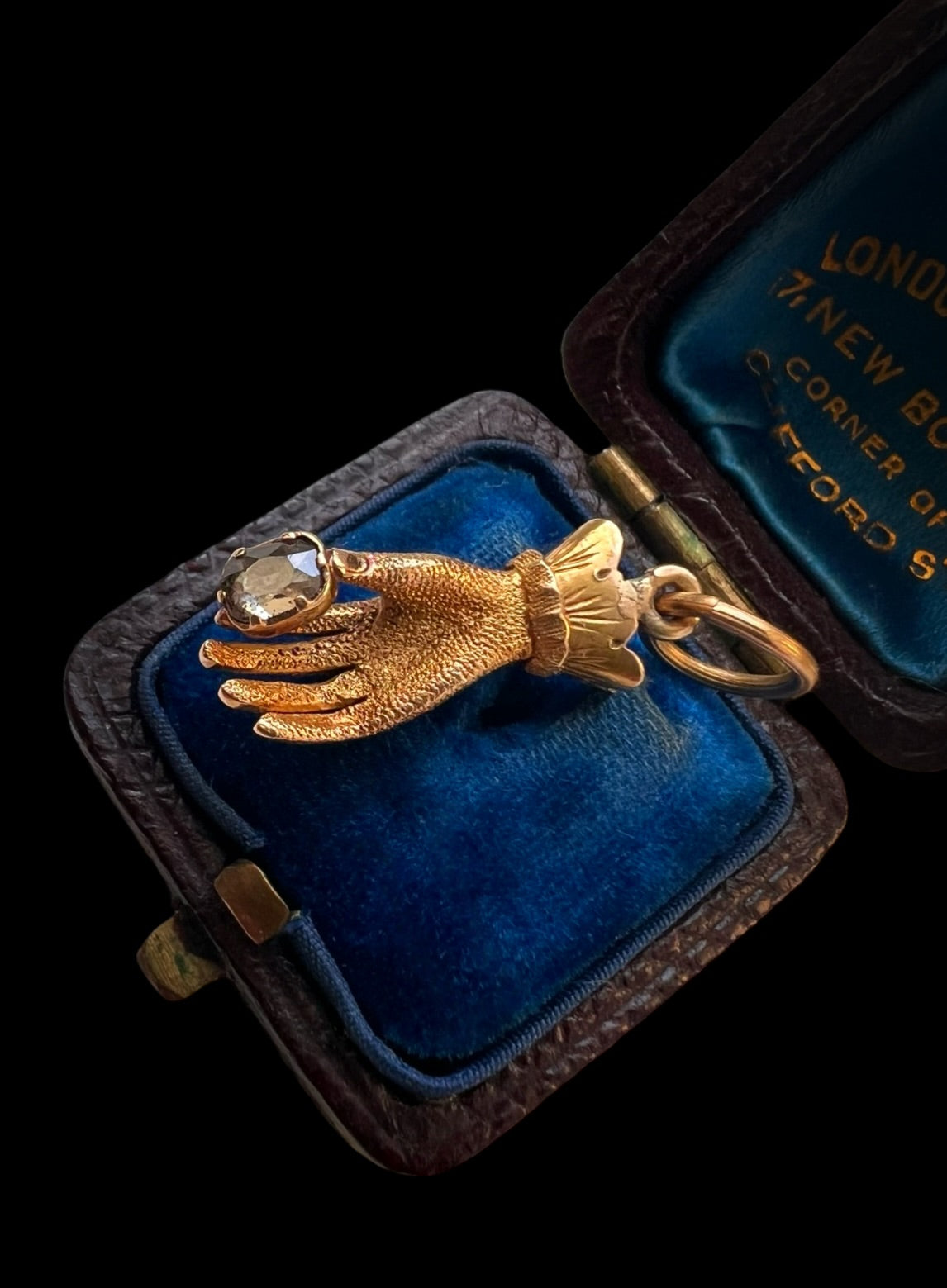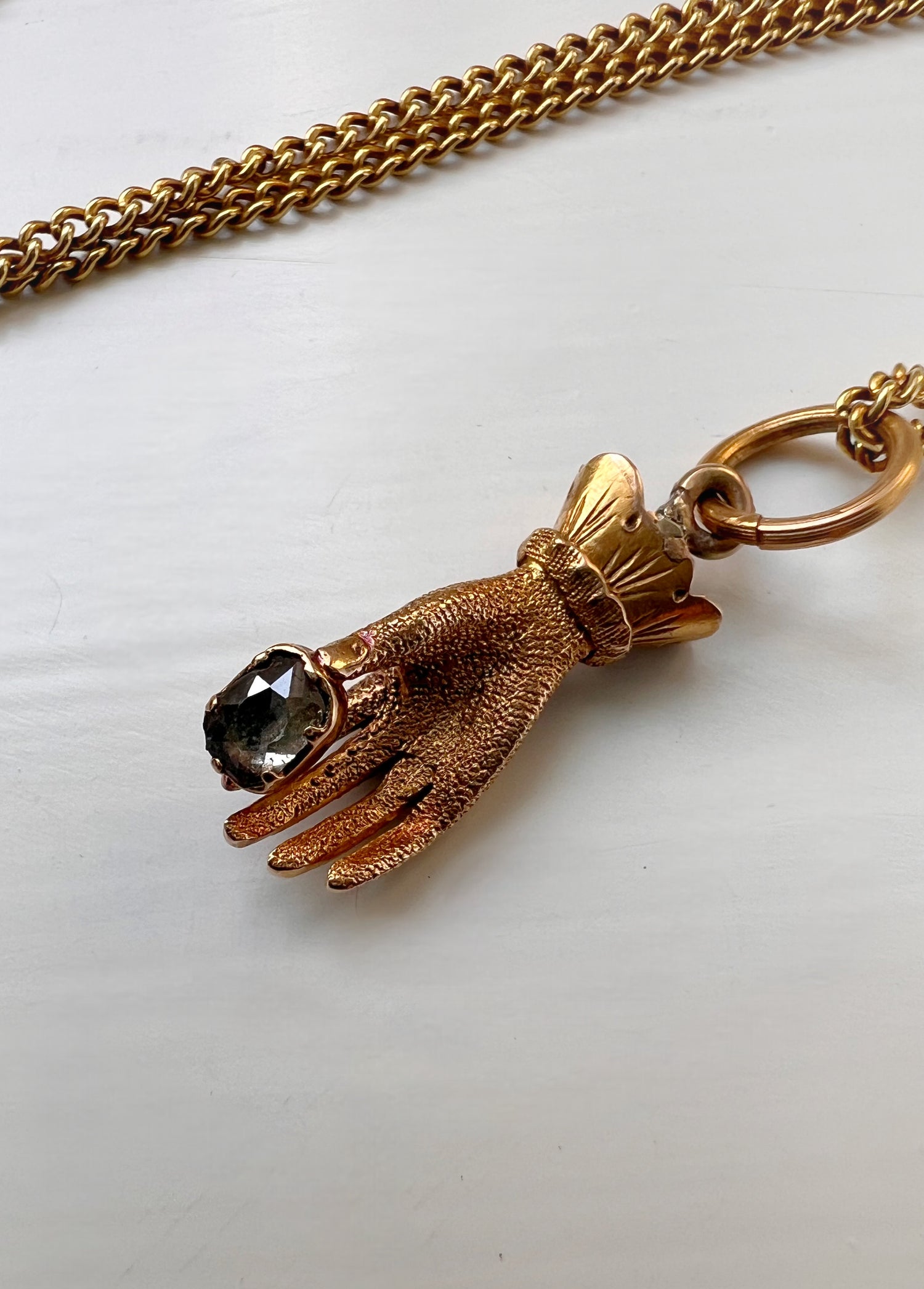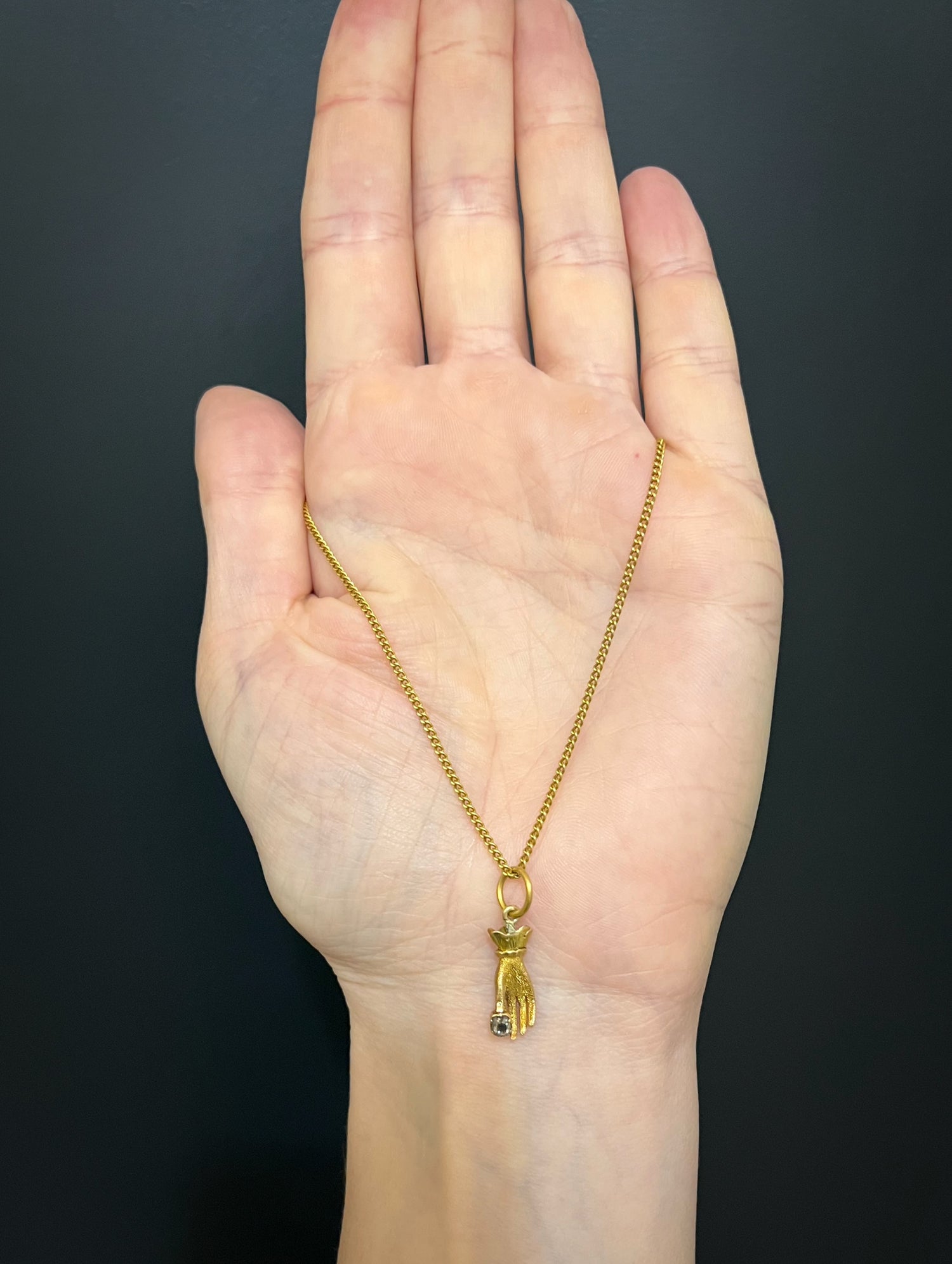 GEORGIAN 15CT GOLD HAND WITH DIAMOND PENDANT