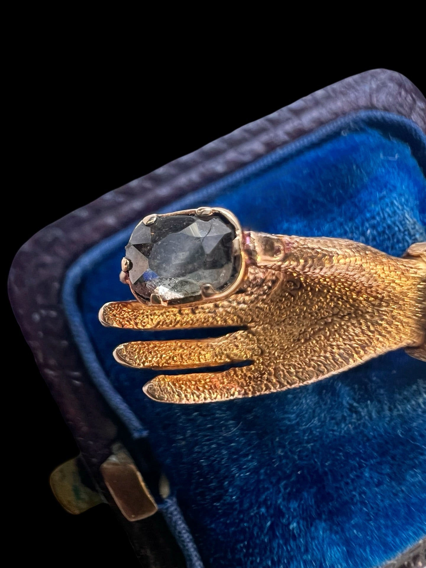 A beautiful Georgian hand pendant crafted in textured 15ct gold.
