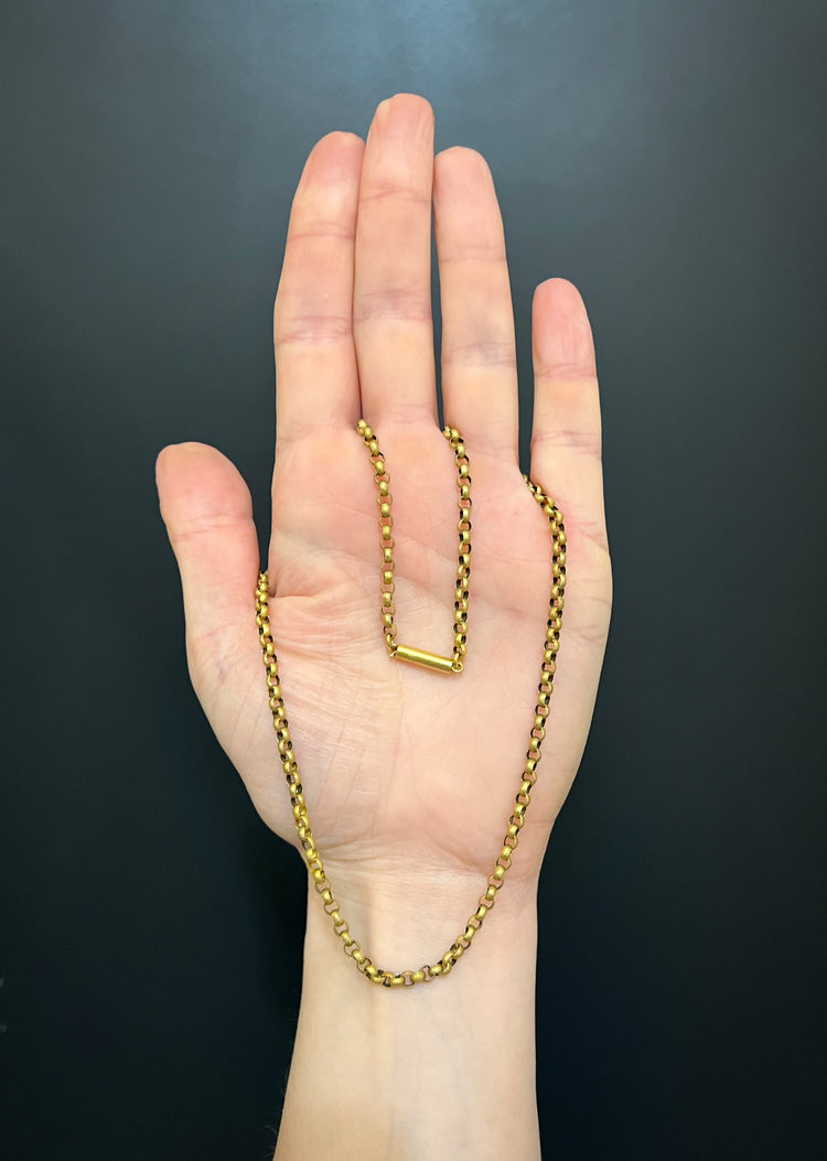 The chain closes with a super chunky and secure 15ct gold barrel clasp.