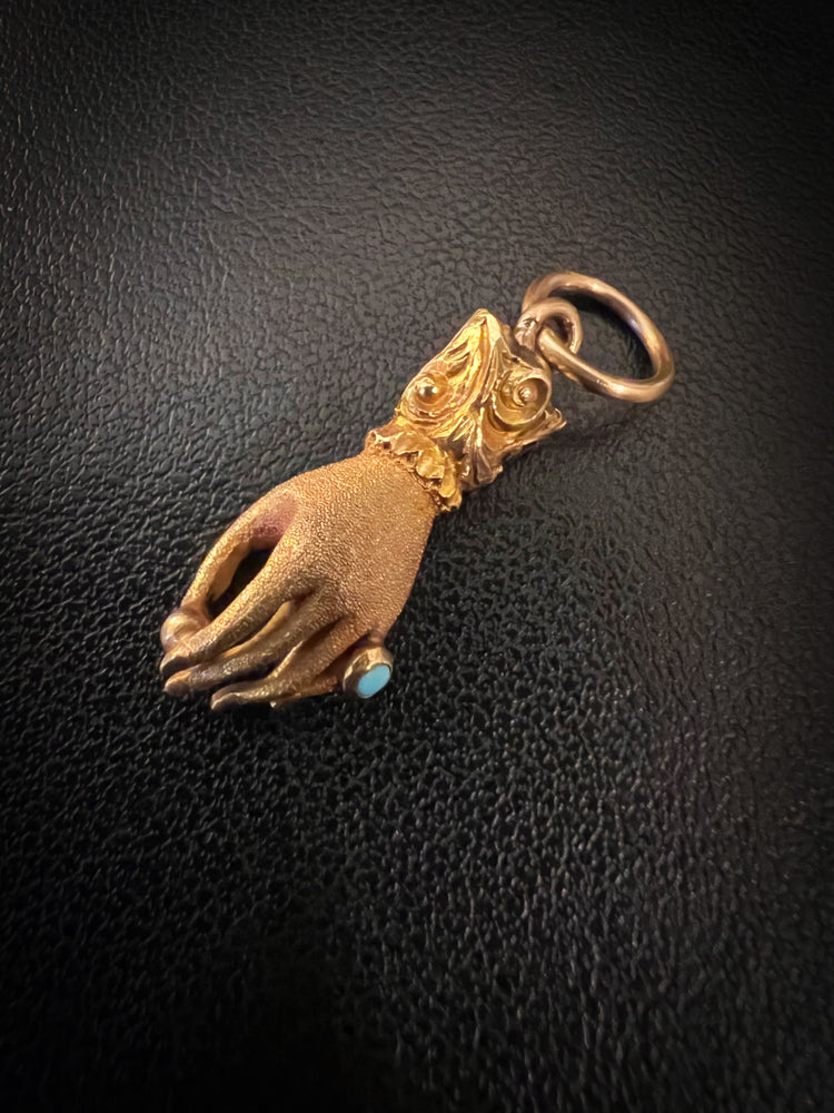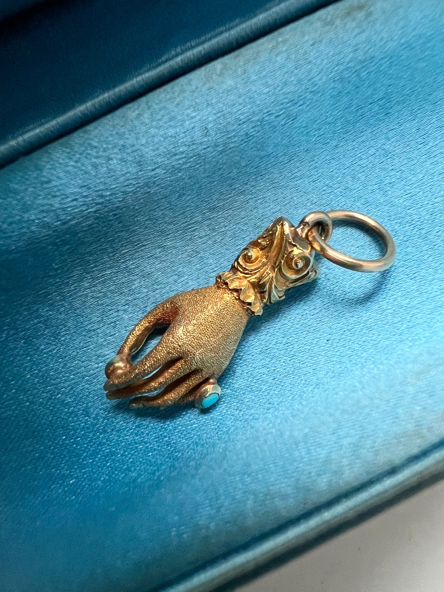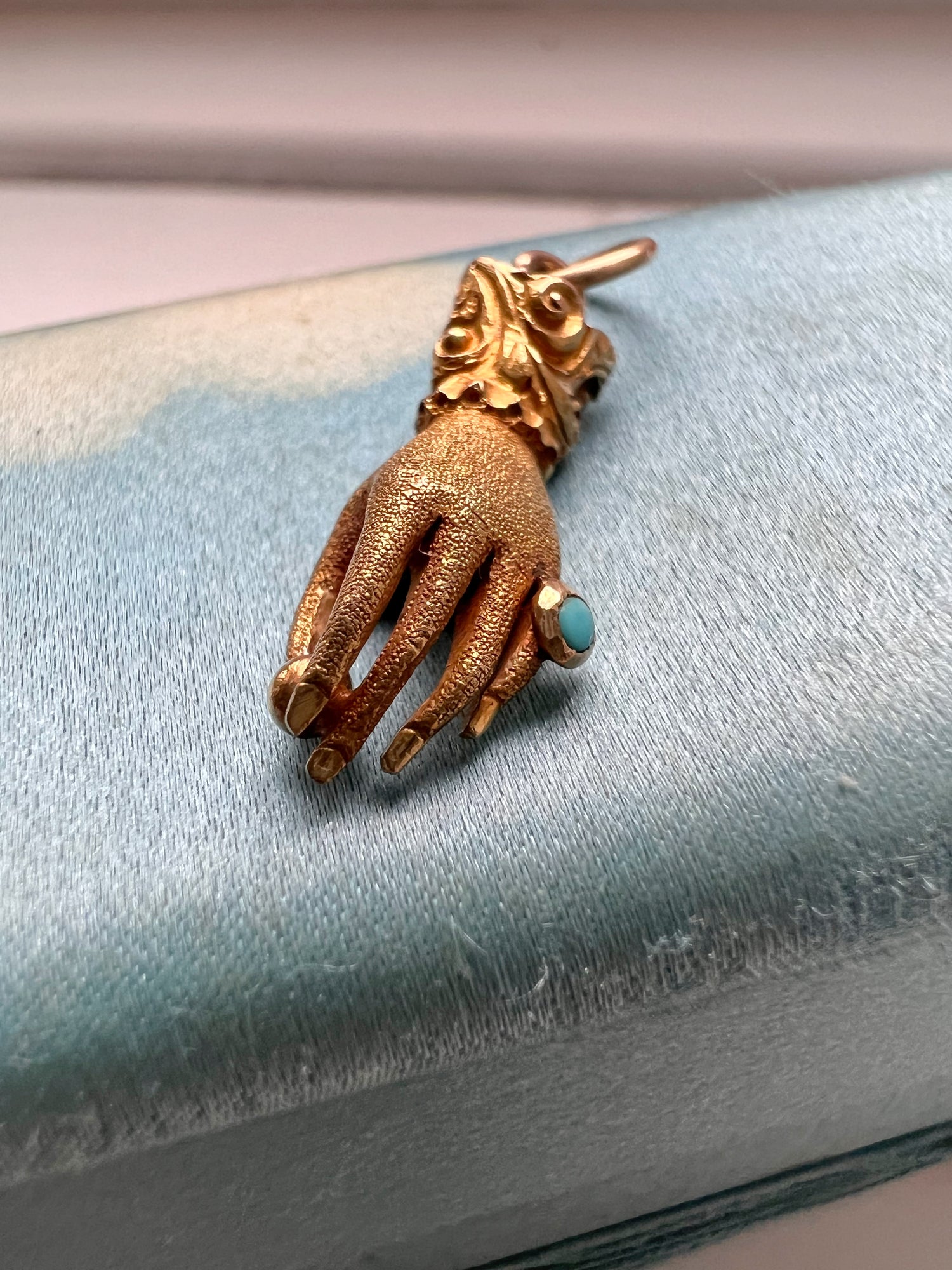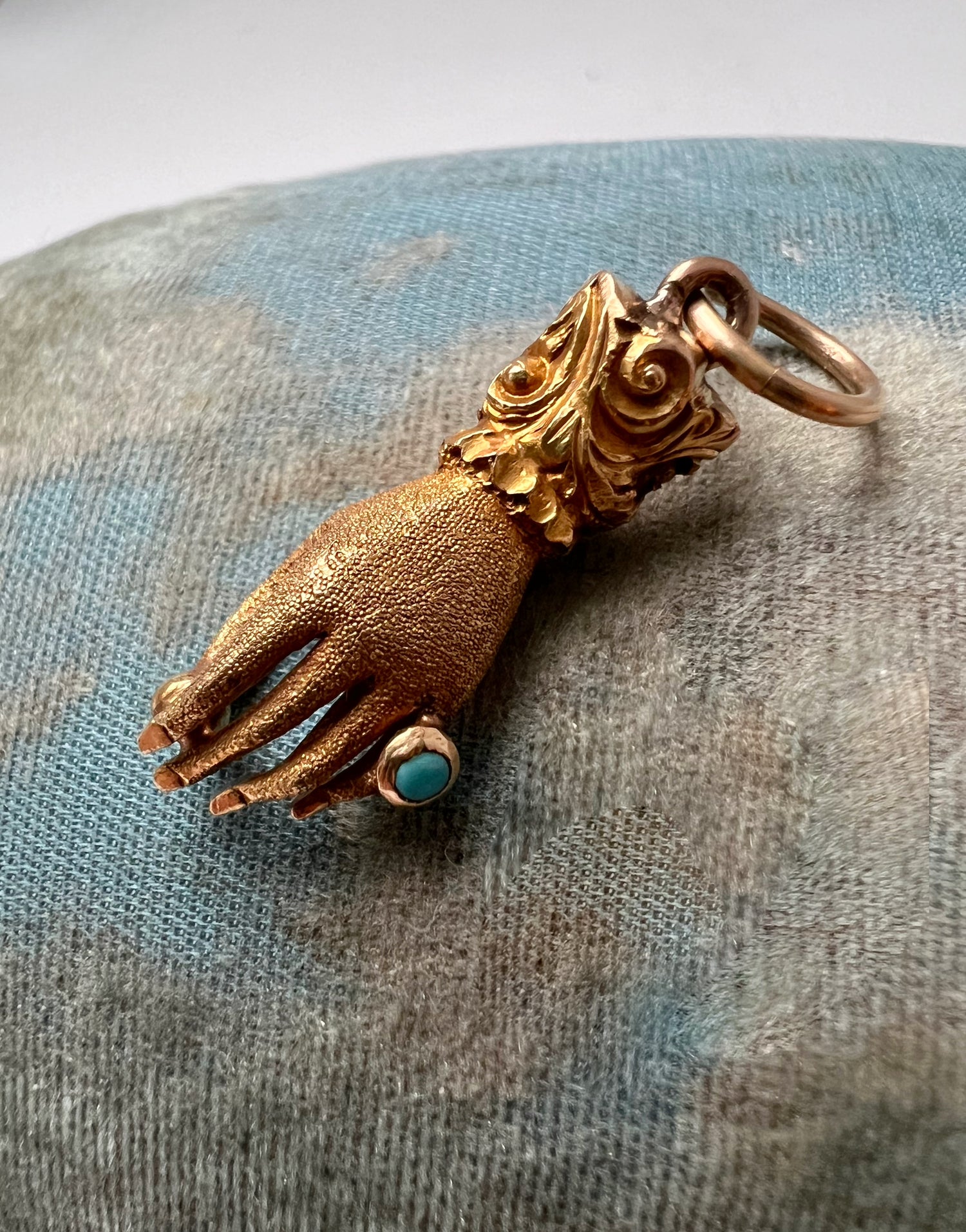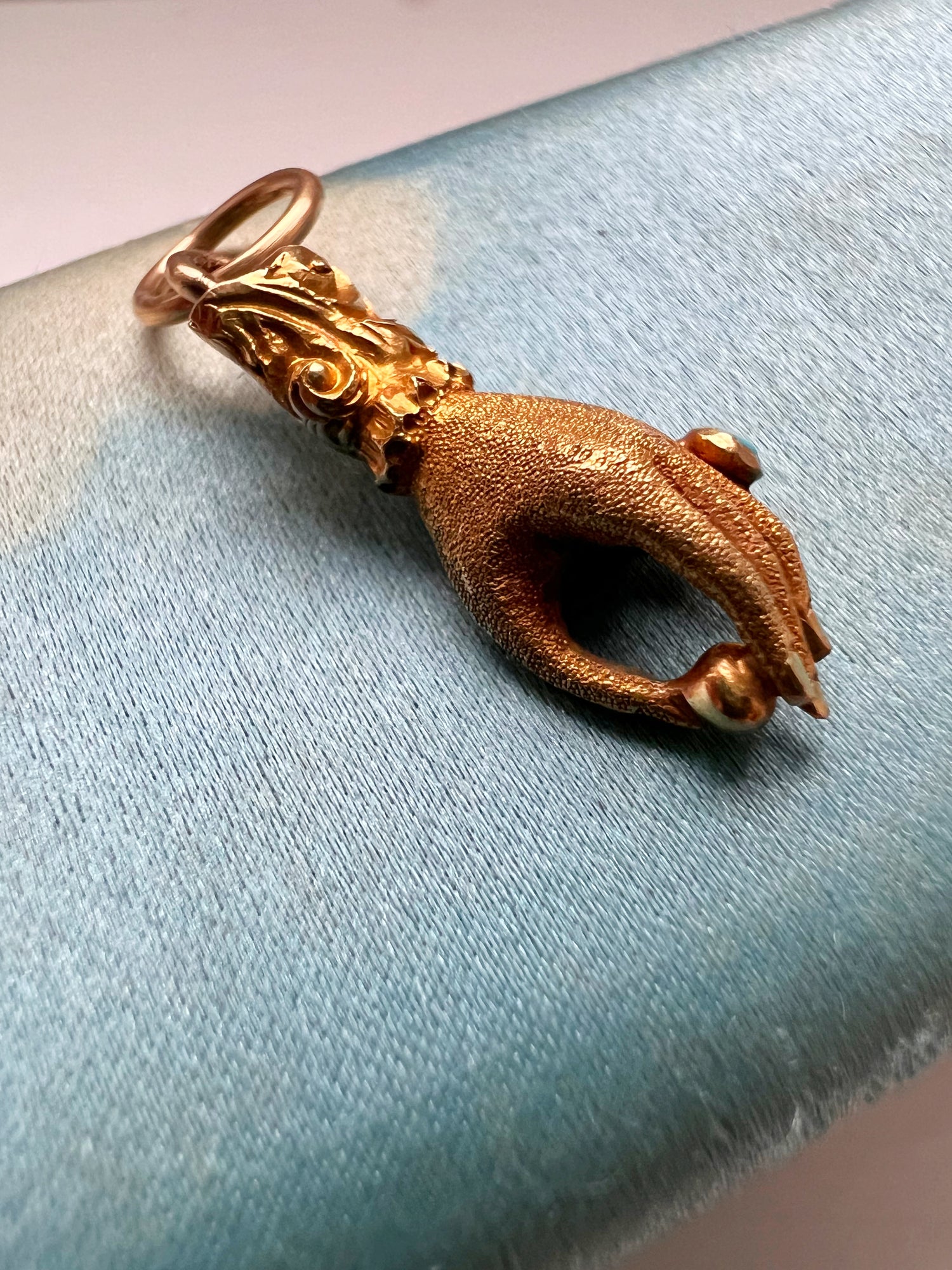 A fine Georgian hand pendant crafted in textured 18ct gold.