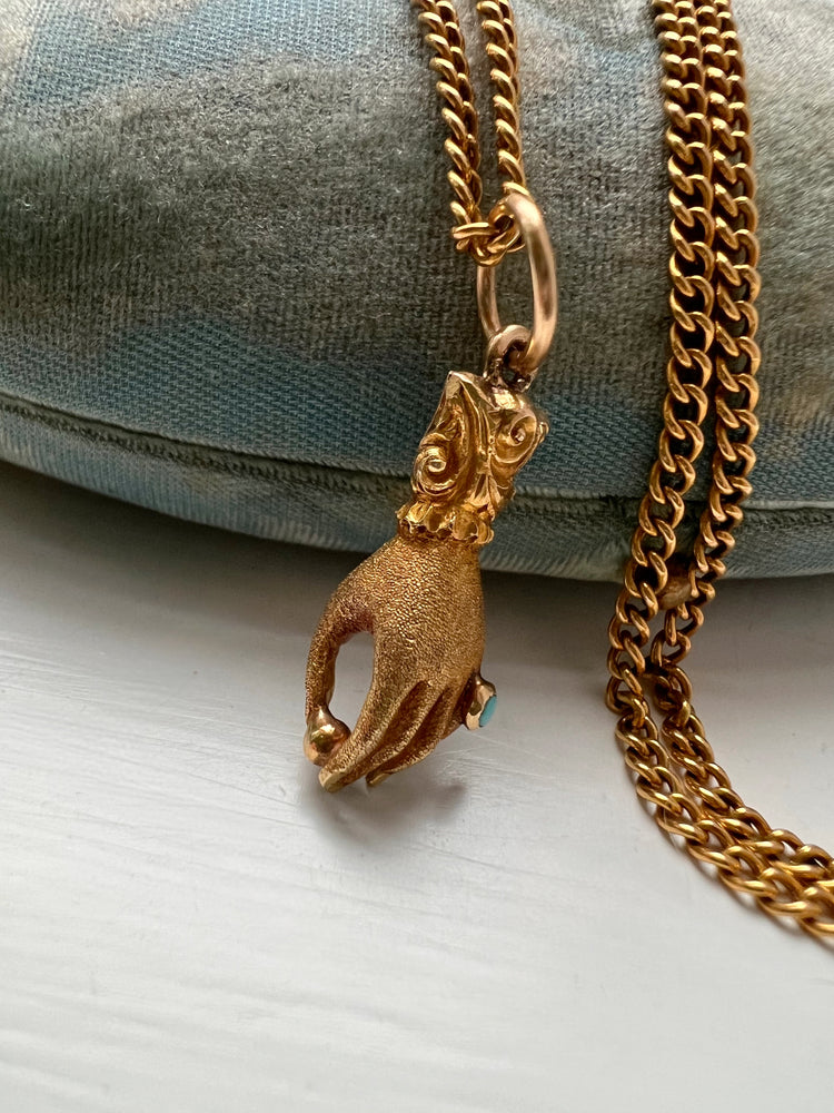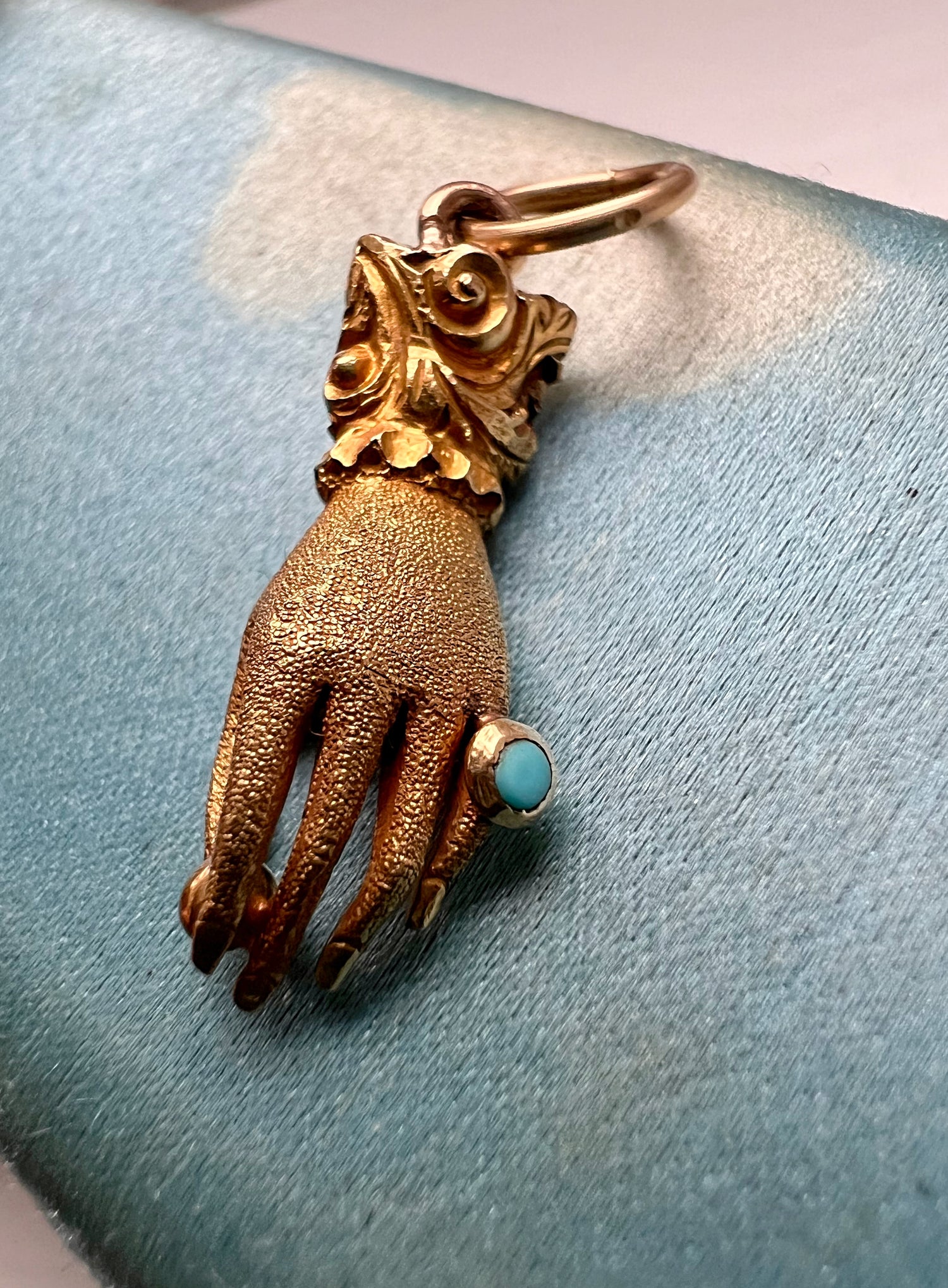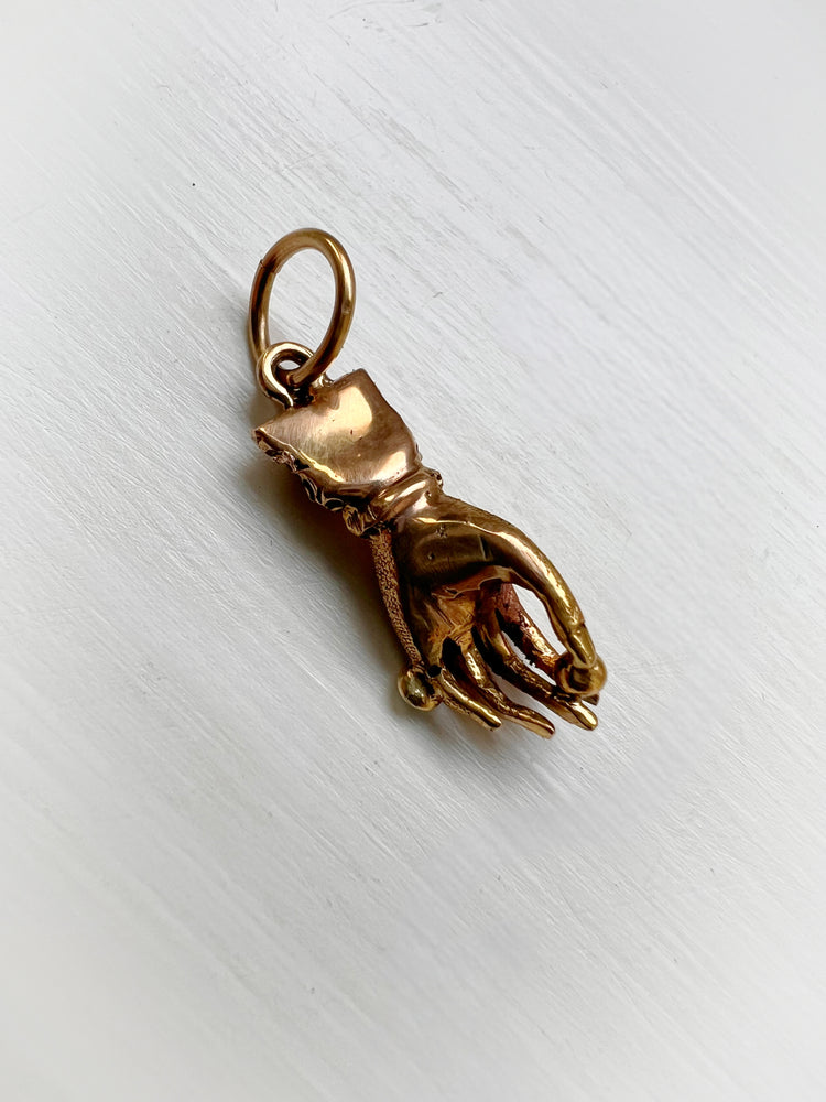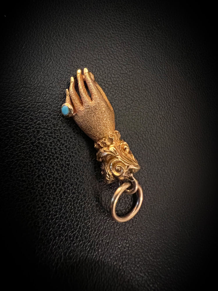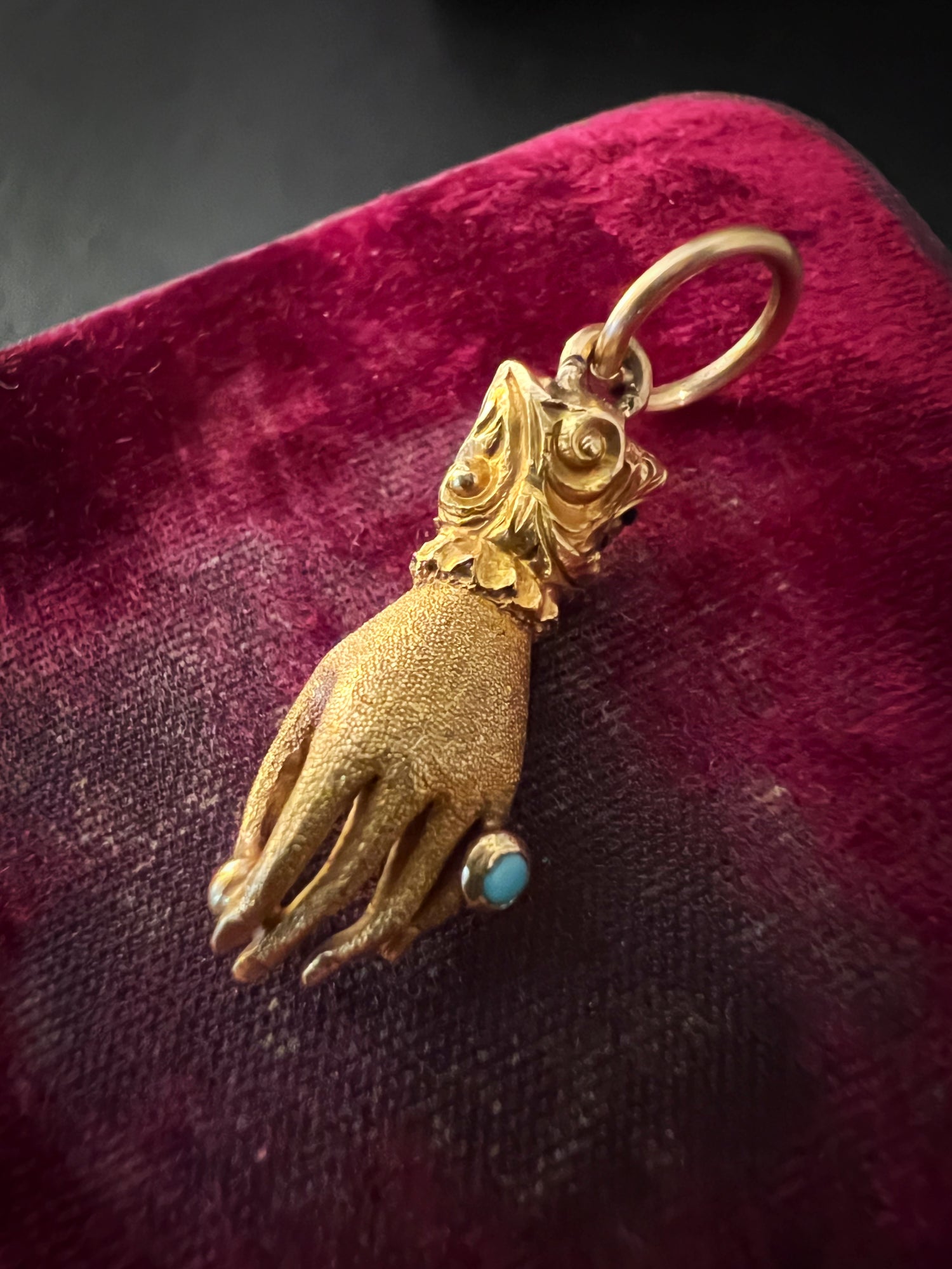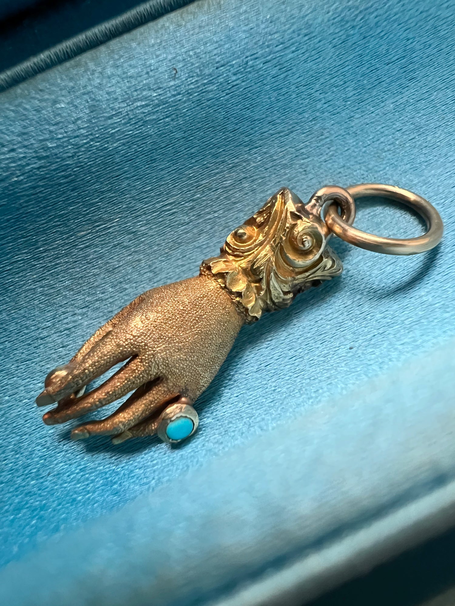 A fine Georgian hand pendant crafted in textured 18ct gold.