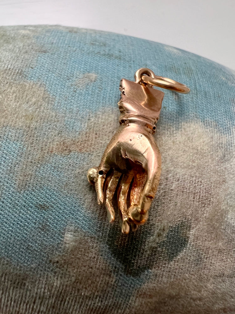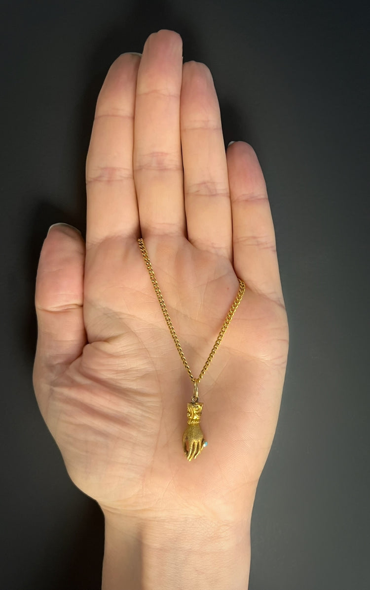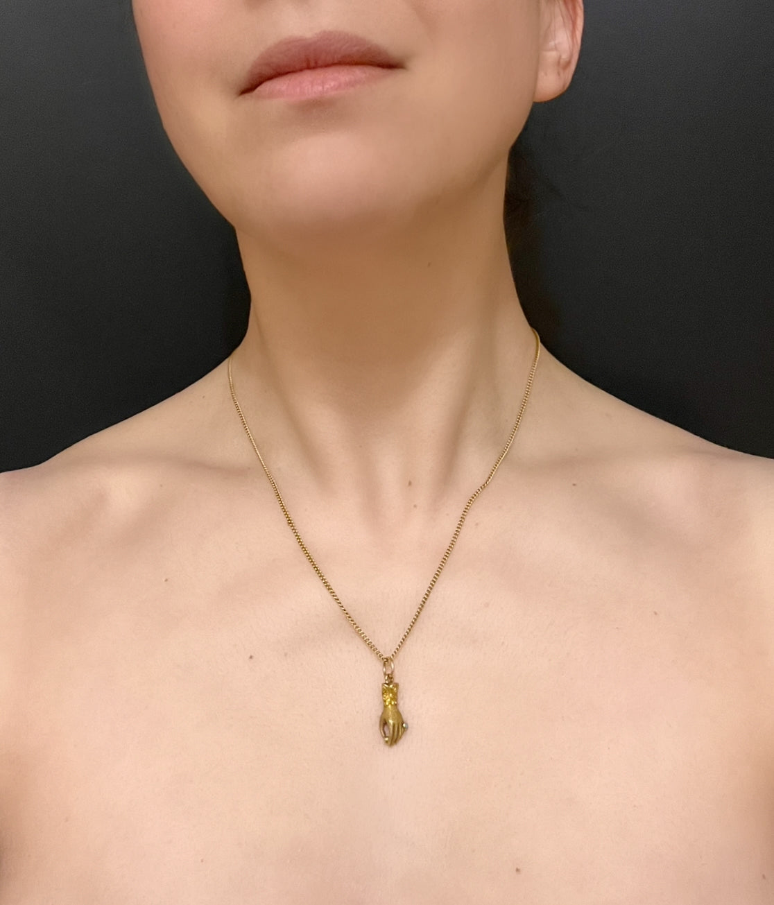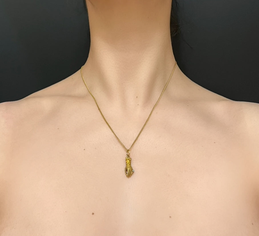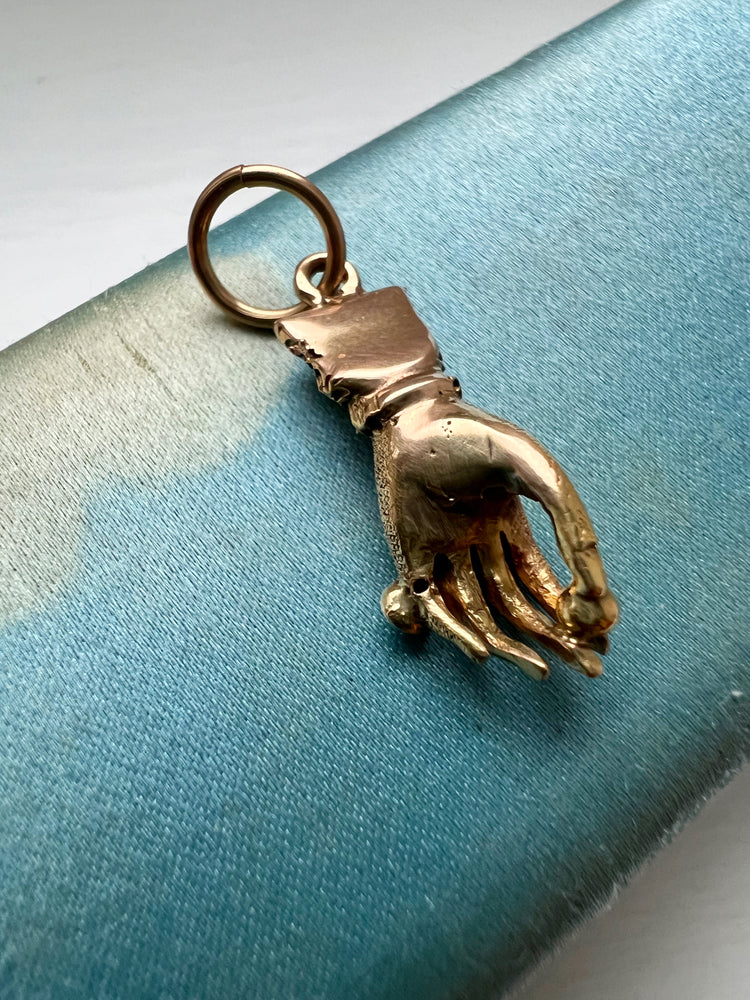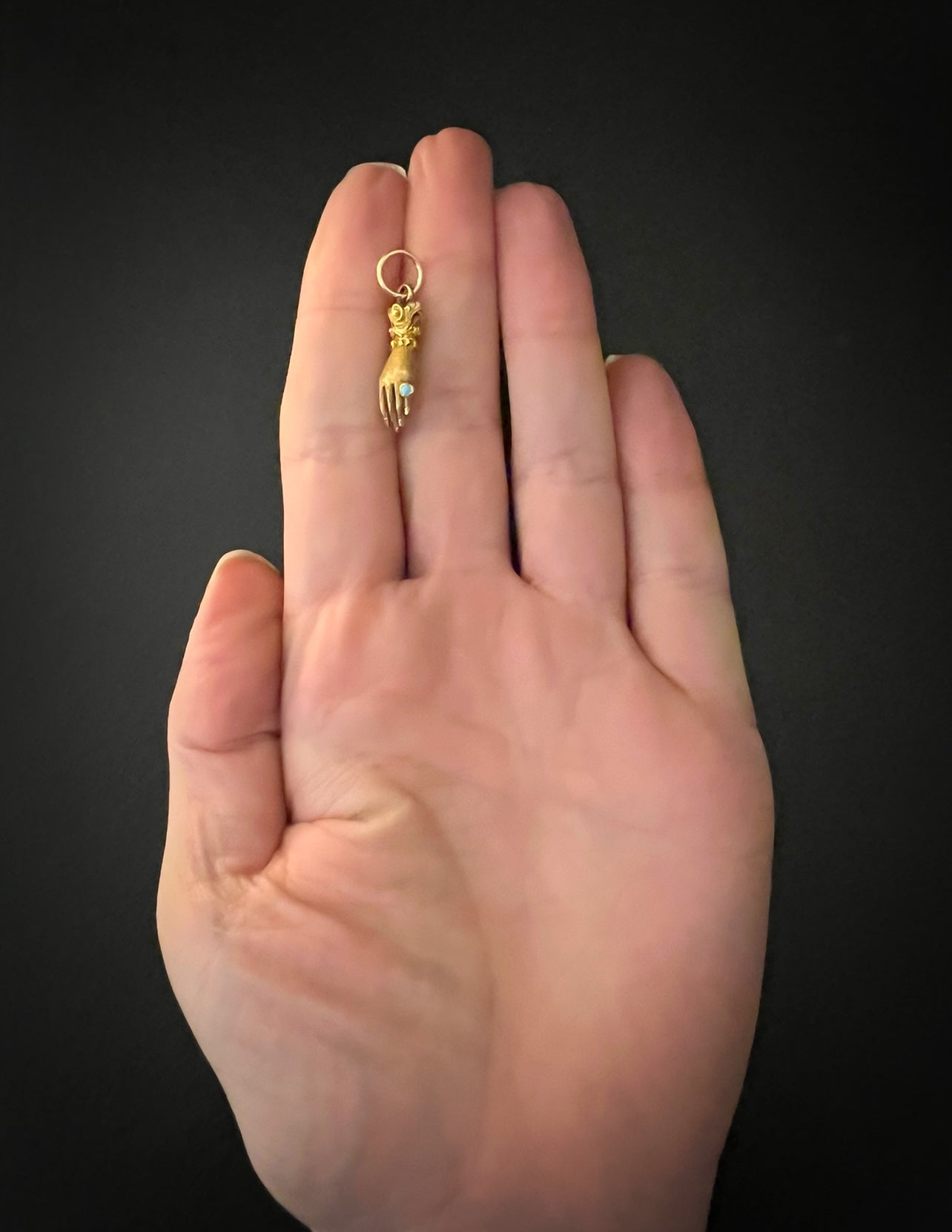 A fine Georgian hand pendant crafted in textured 18ct gold.
