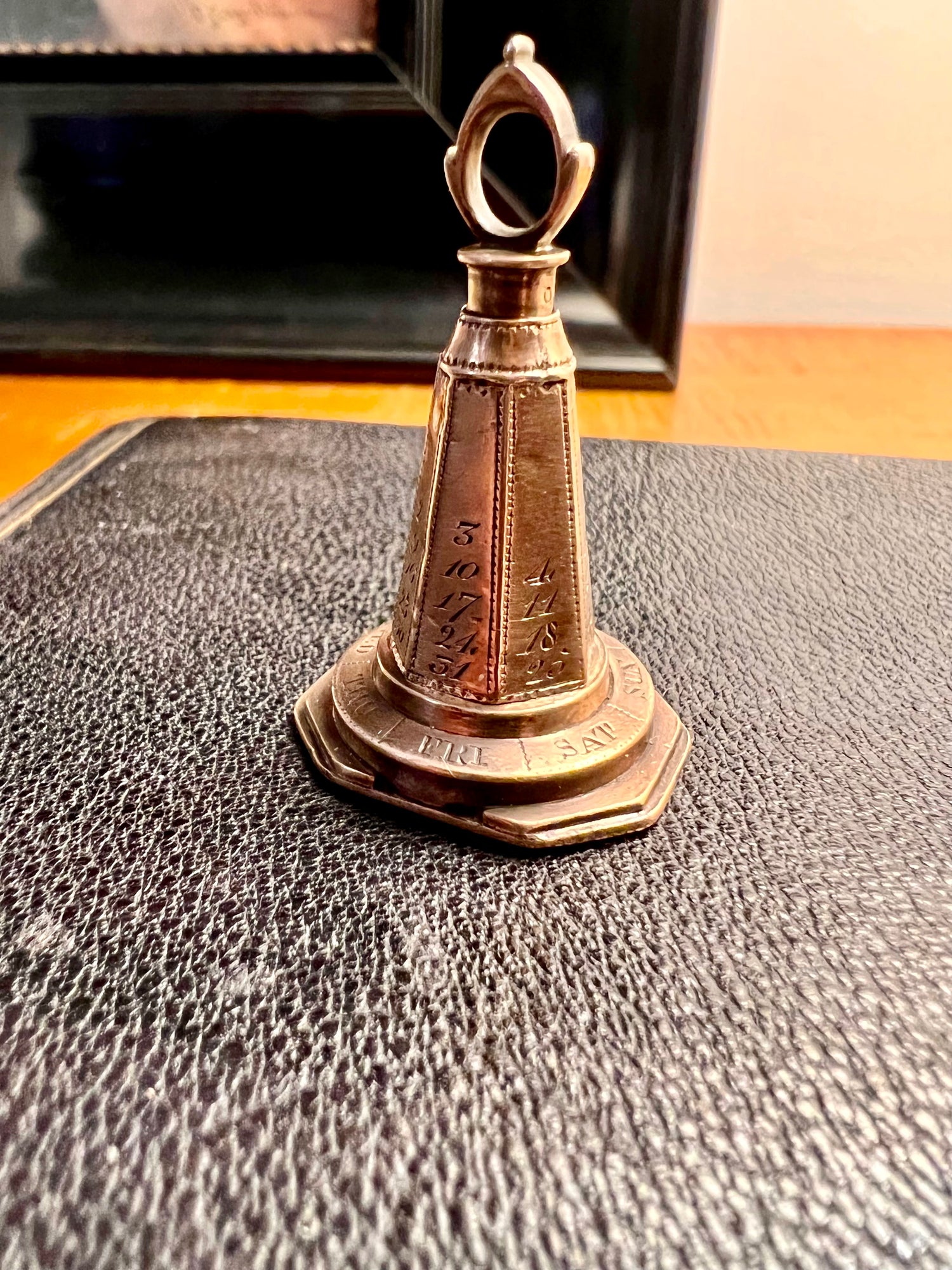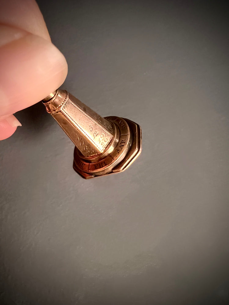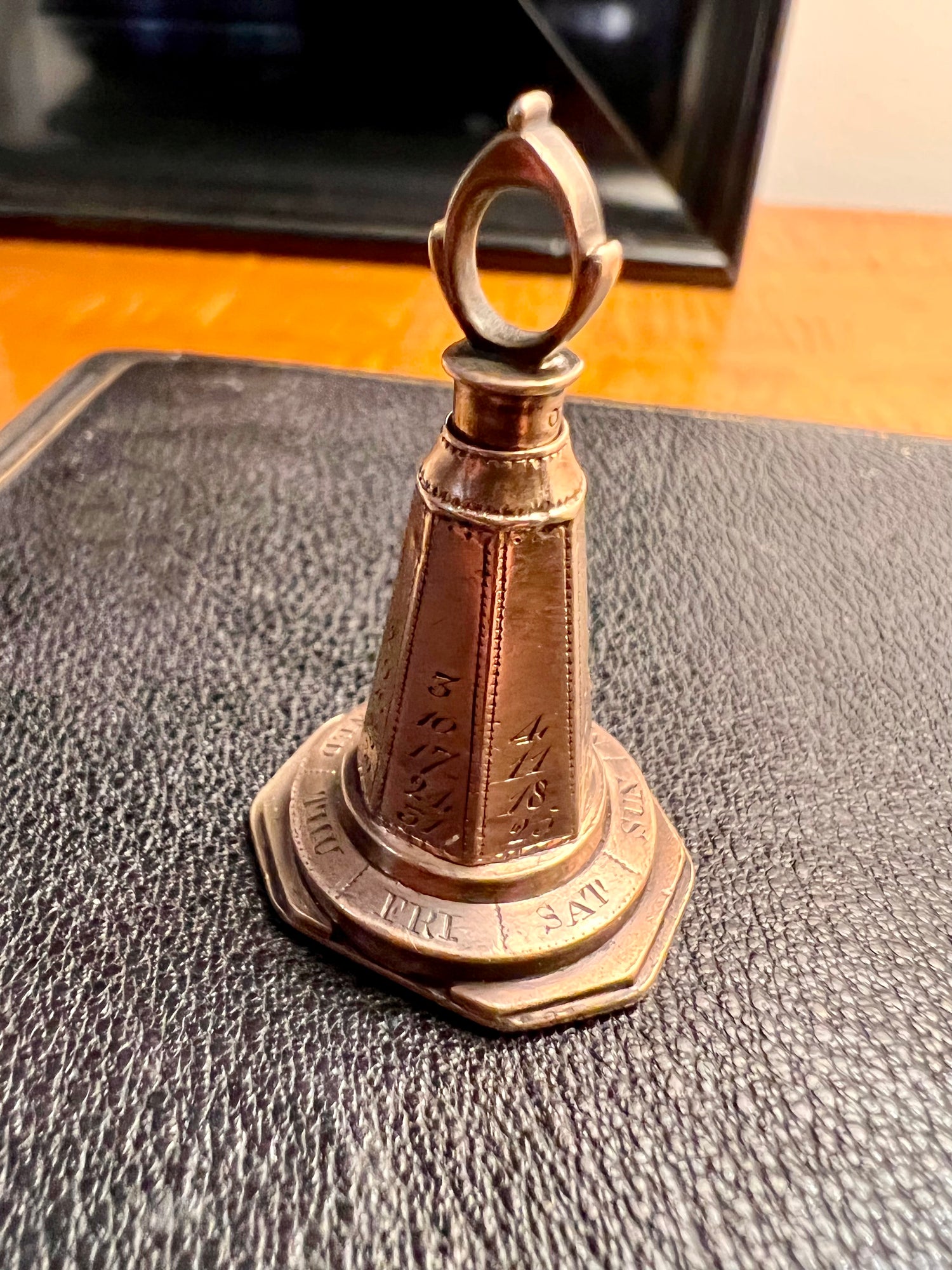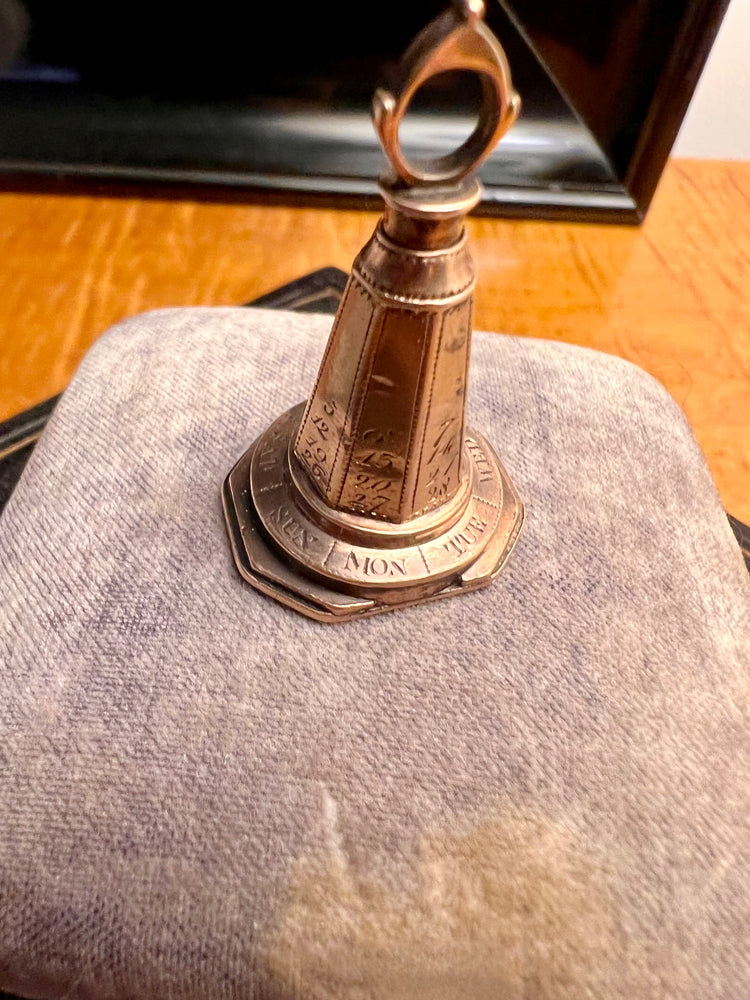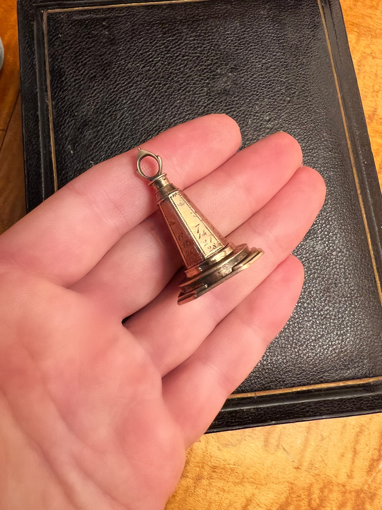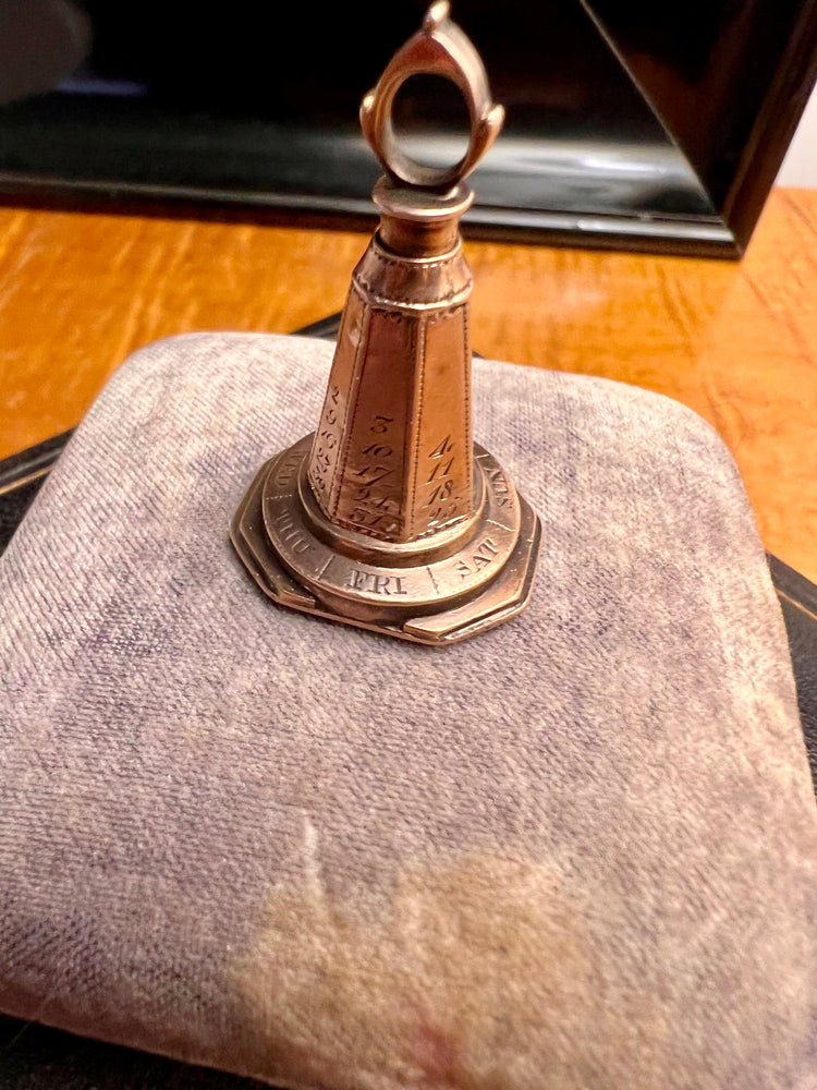 This is a 9ct gold Georgian, George lll calendar fob with carnelian seal.