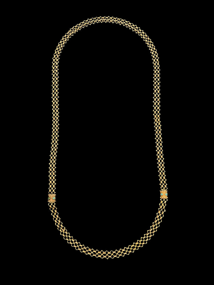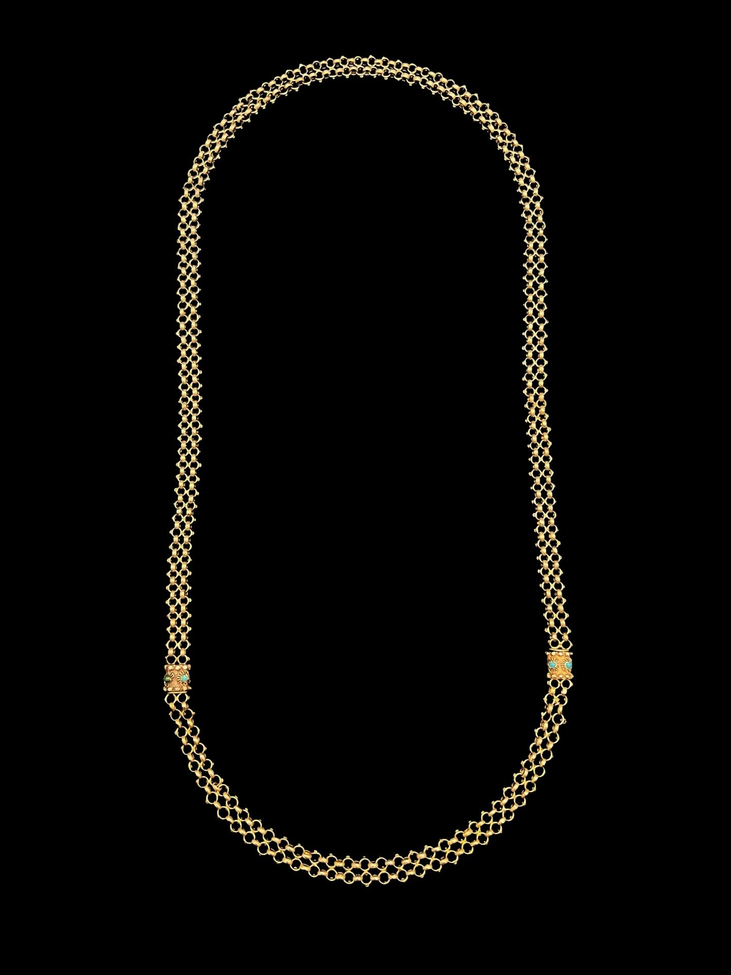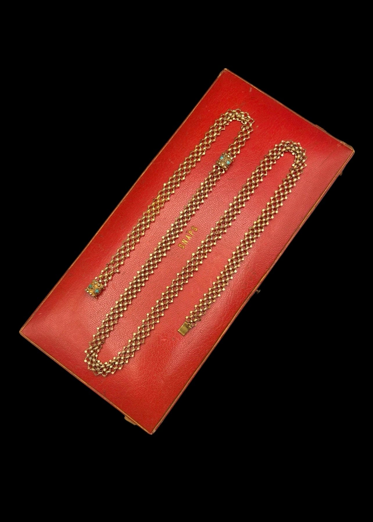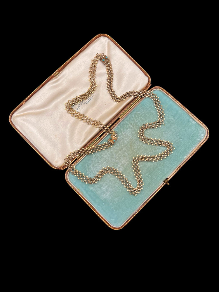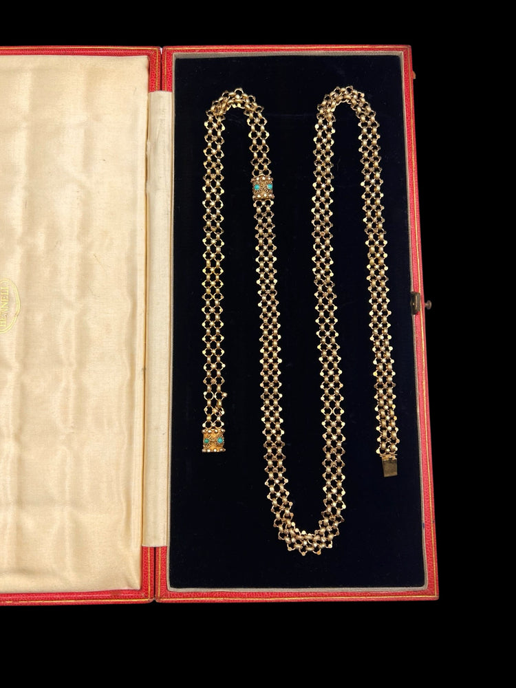 An absolutely stunning late Georgian fancy double belcher chain with double filigree and turquoise clasp.