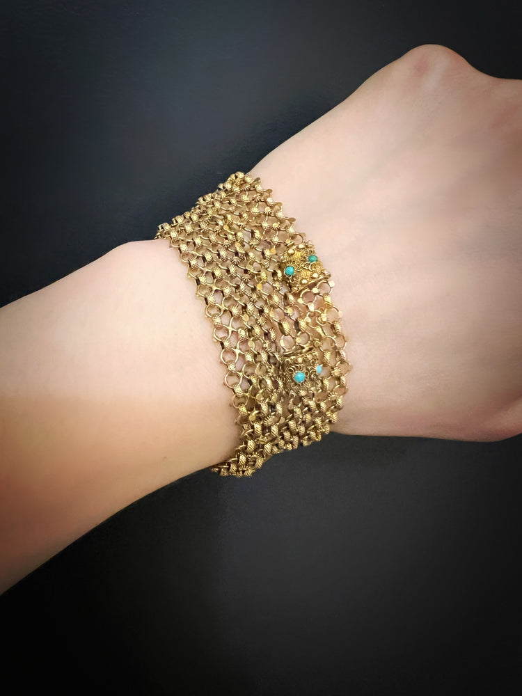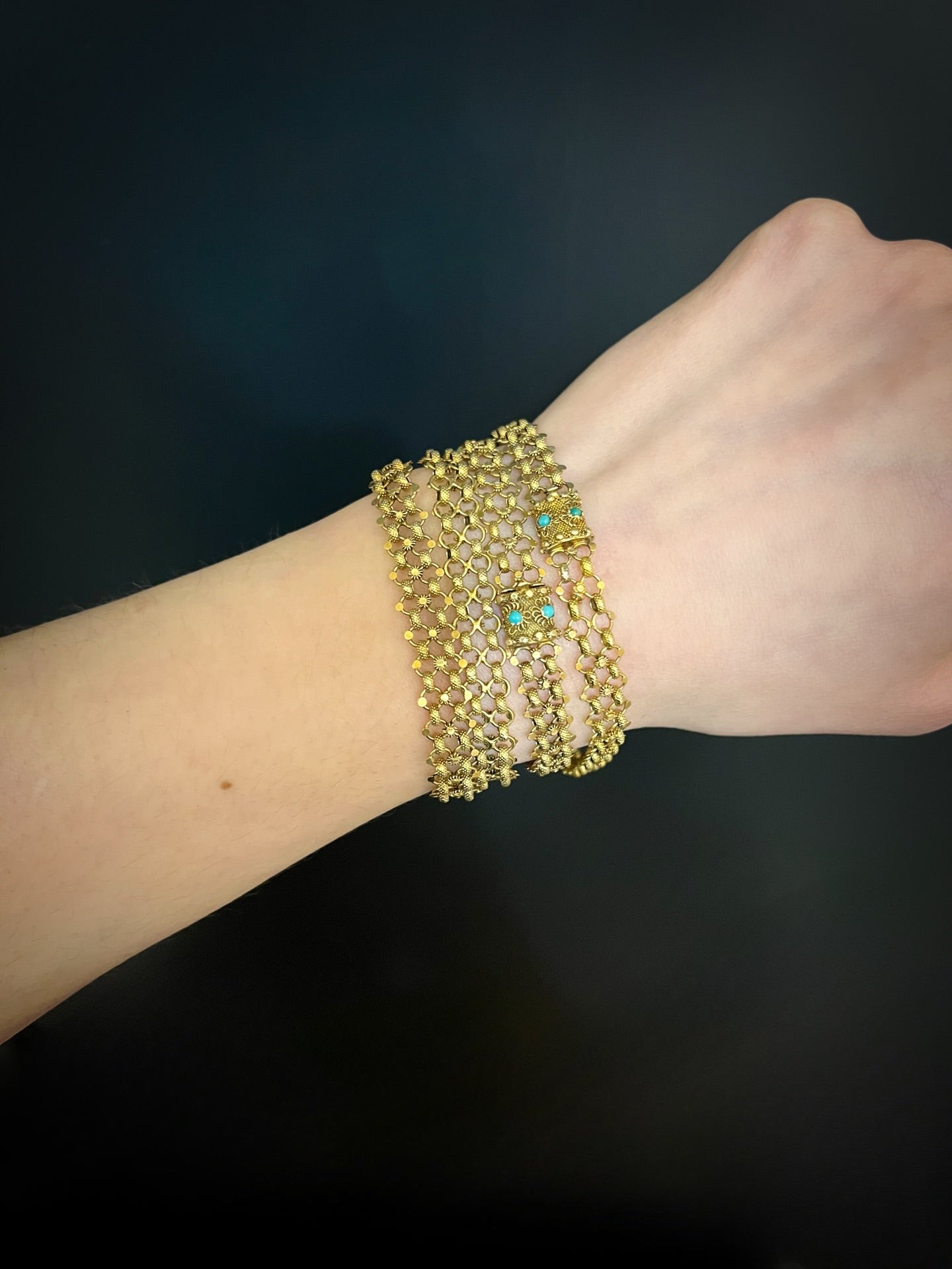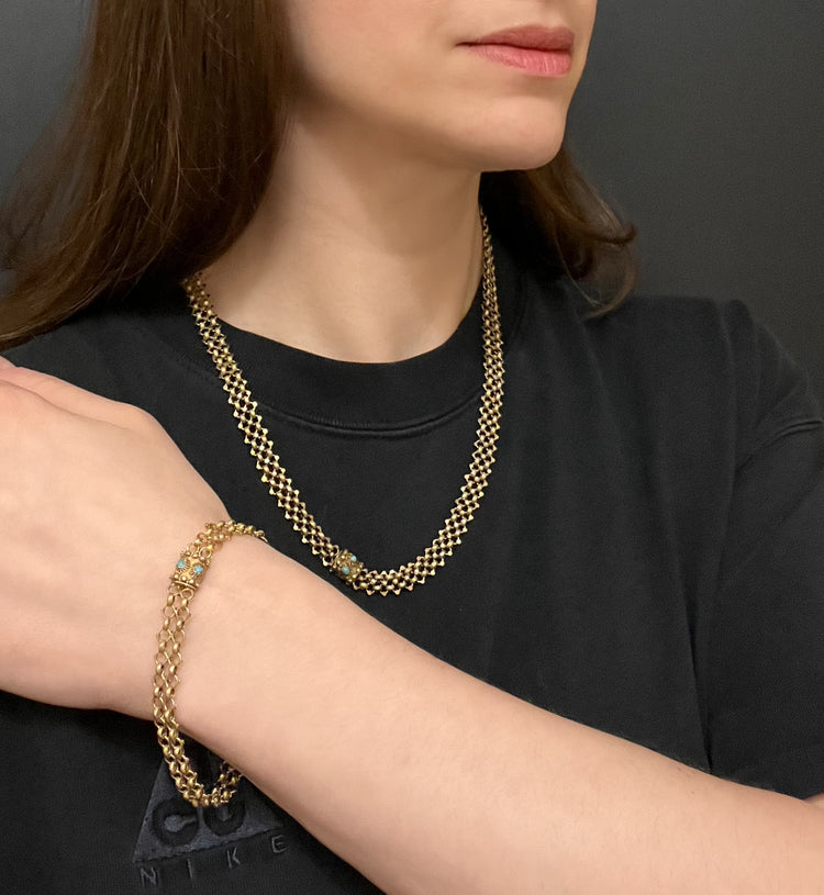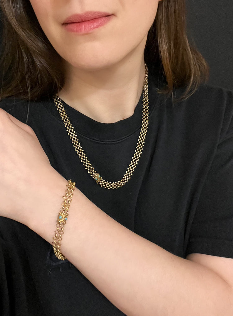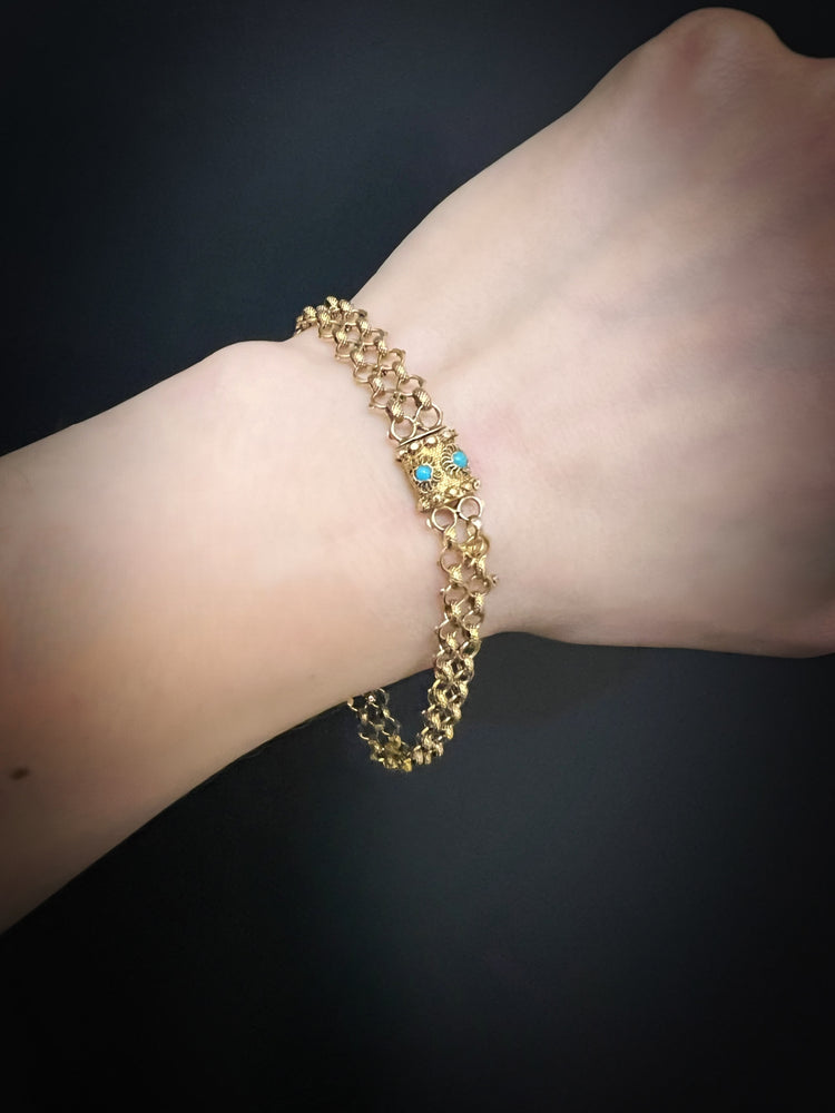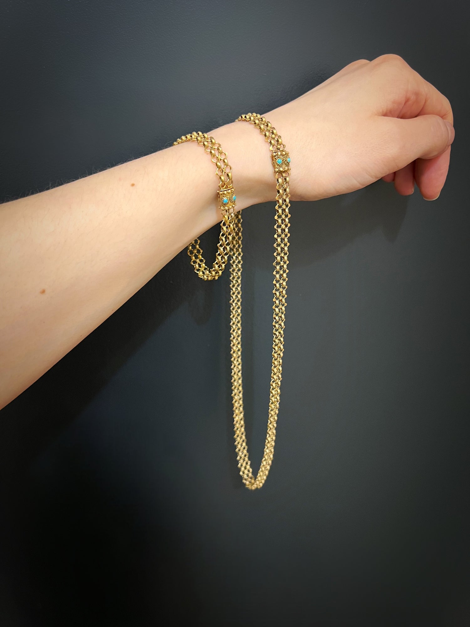 GEORGIAN CHAIN WITH INTEGRAL BRACELET & DOUBLE TURQUOISE CLASP