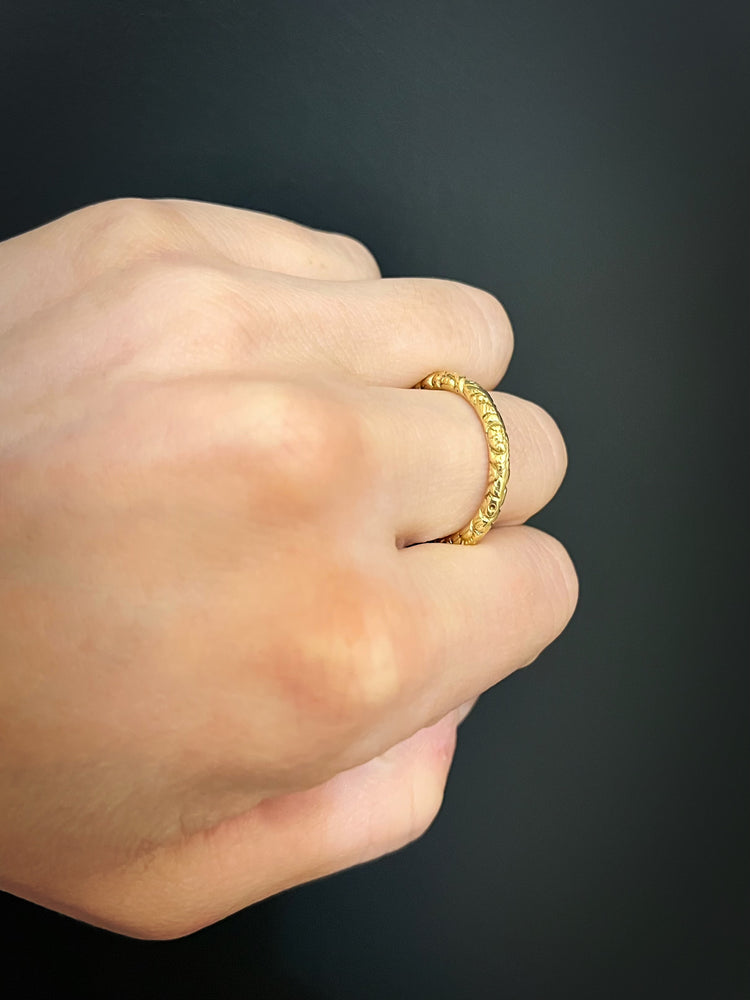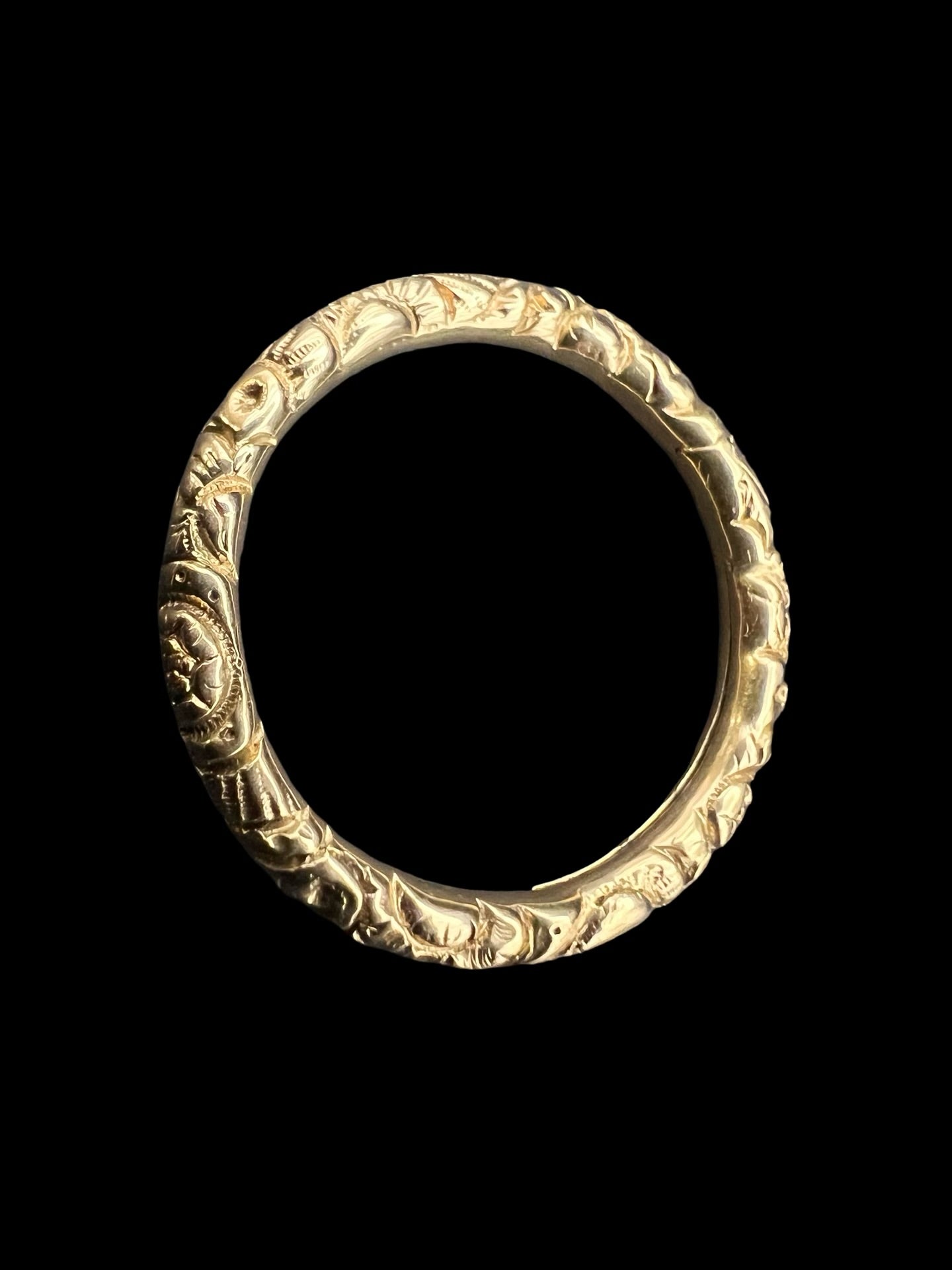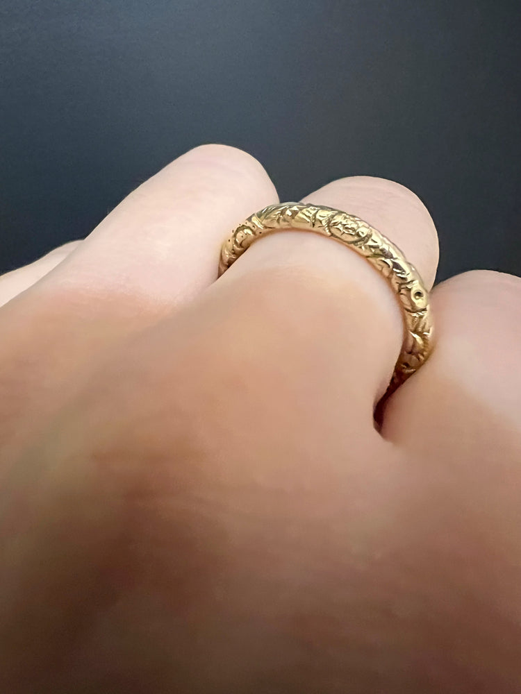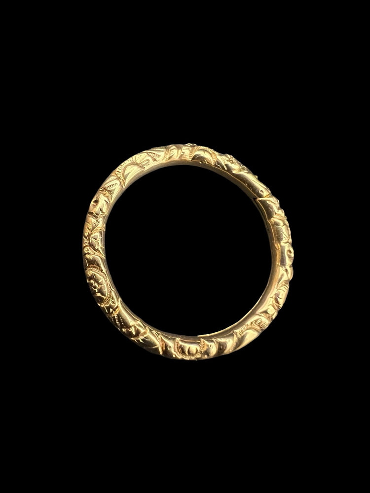 Circa 1830; the ring is supersized, with beautiful foliate chasing all over.