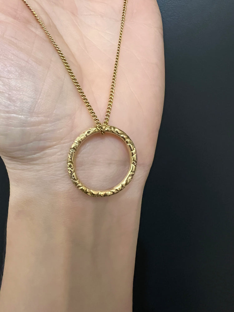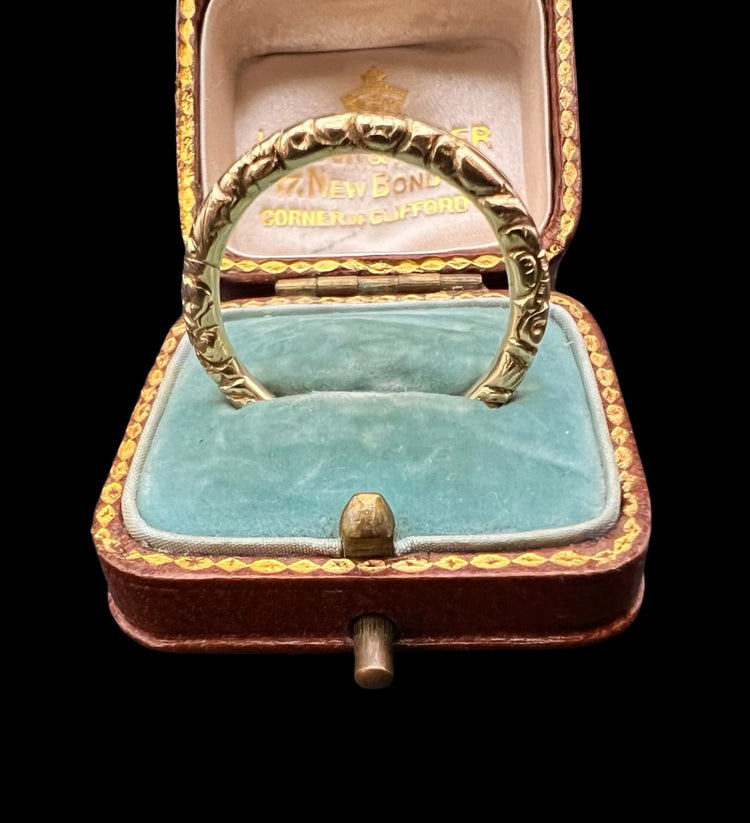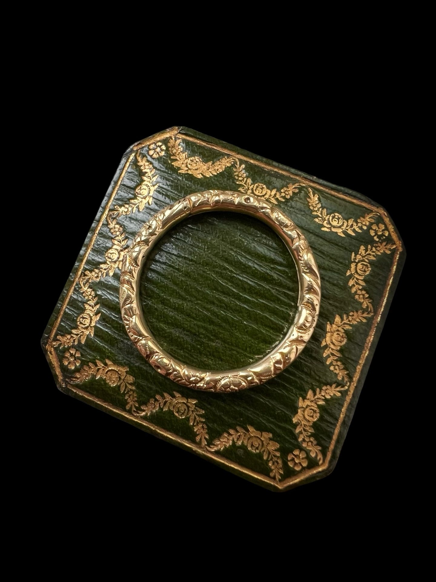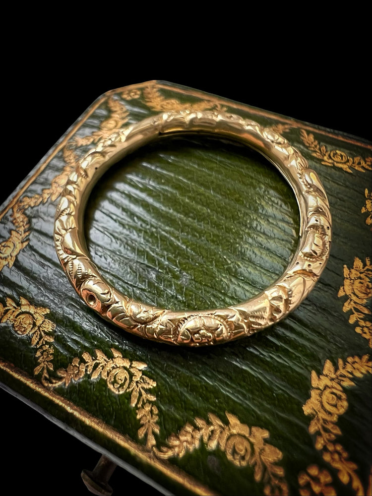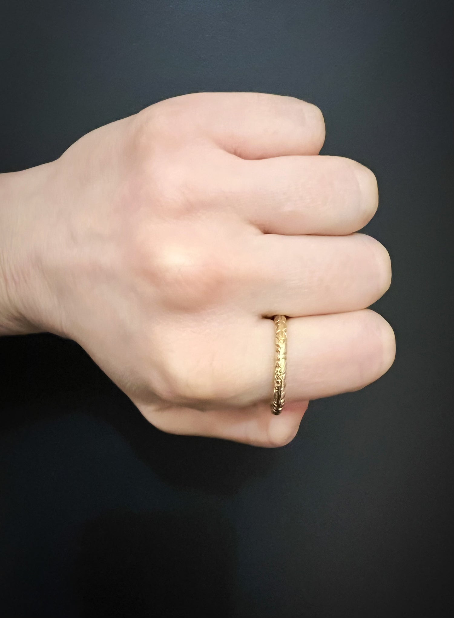 Circa 1830; the ring is supersized, with beautiful foliate chasing all over.