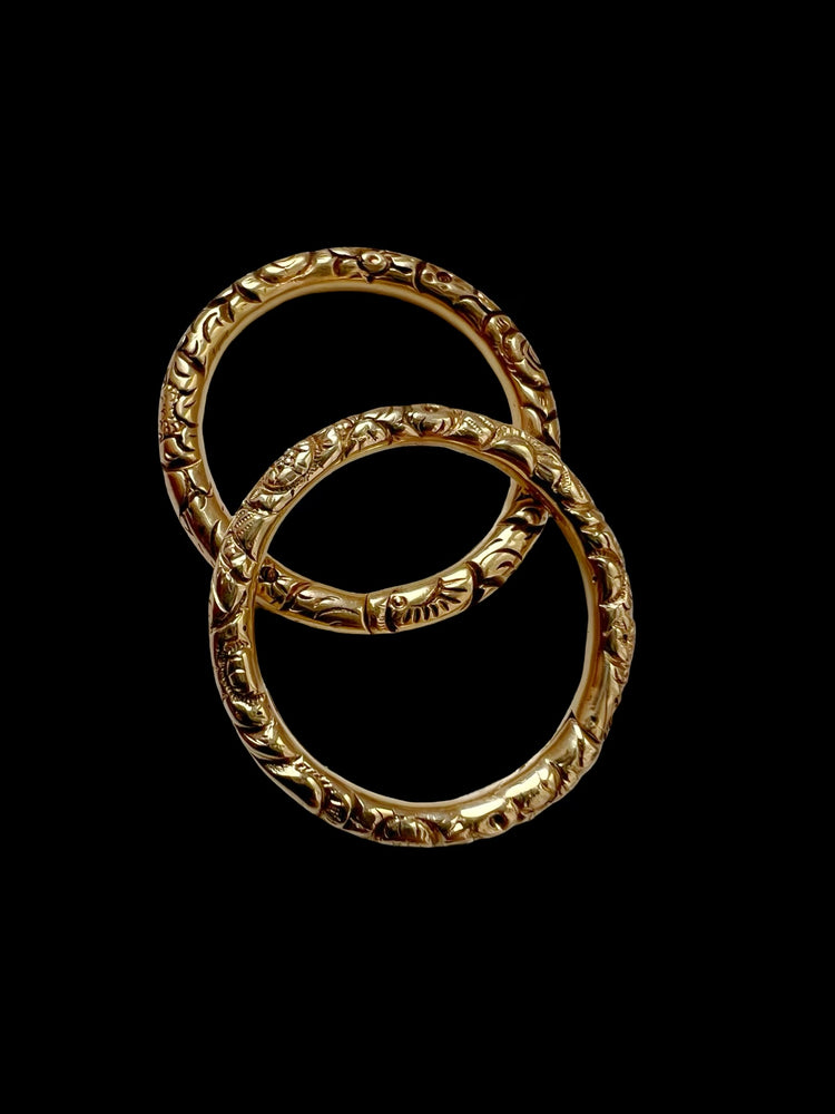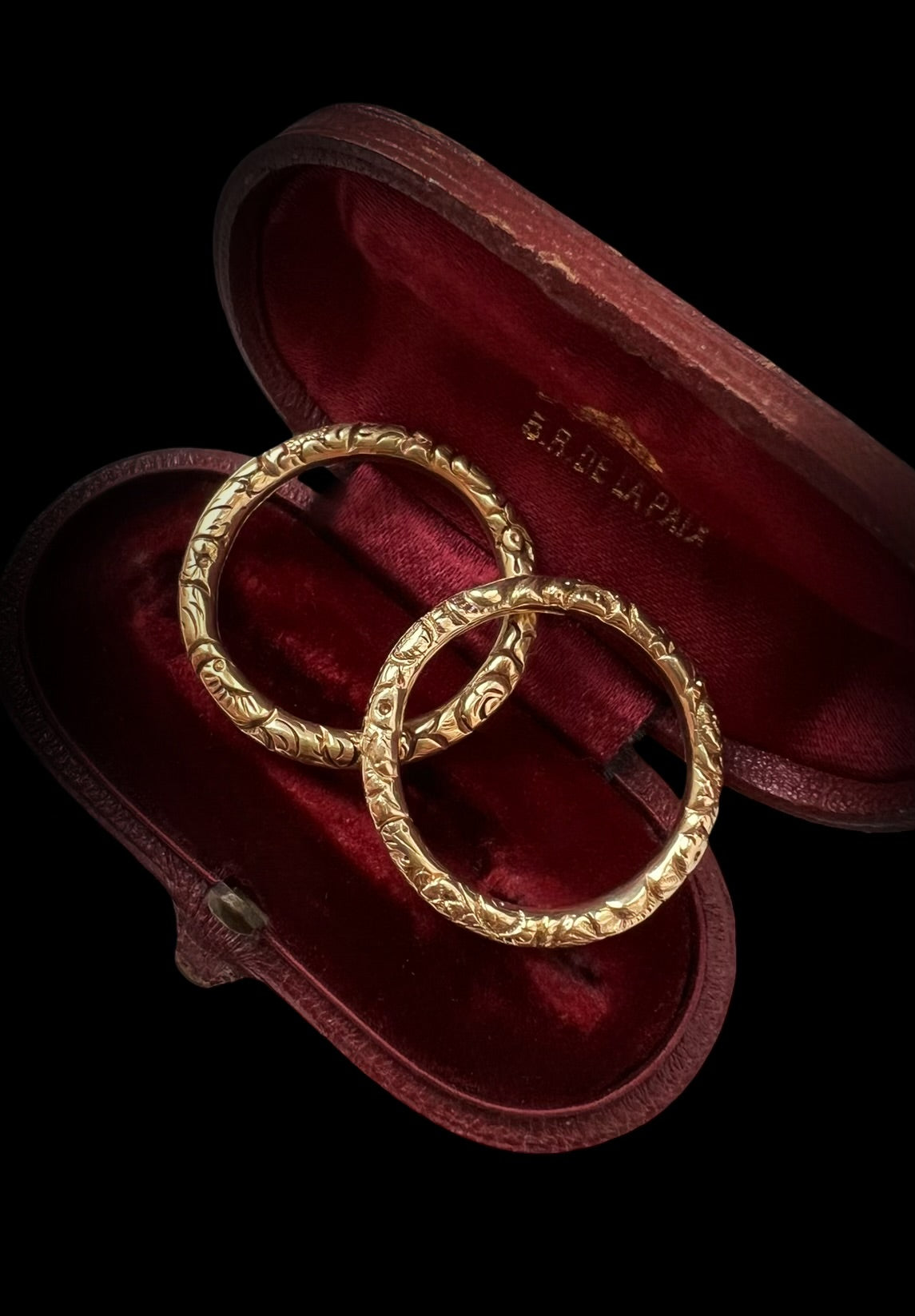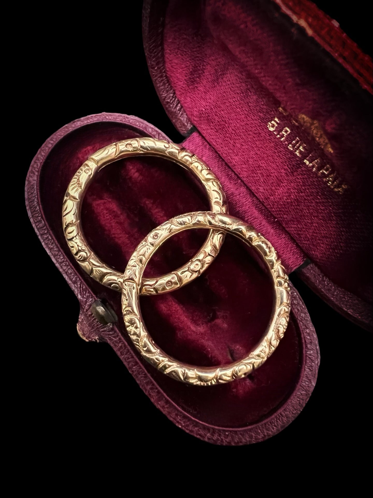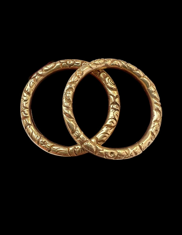 GEORGIAN CHUNKY CHASED 15CT GOLD SPLIT RING