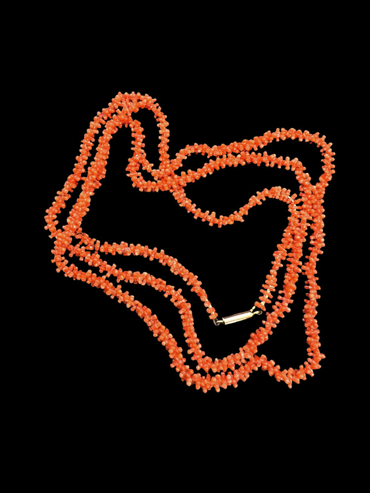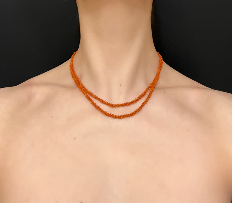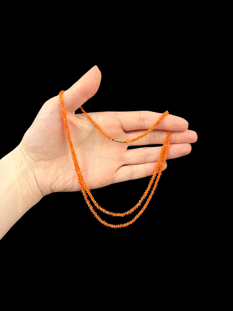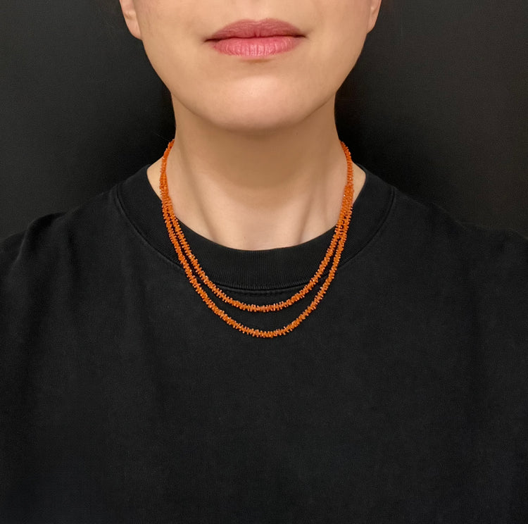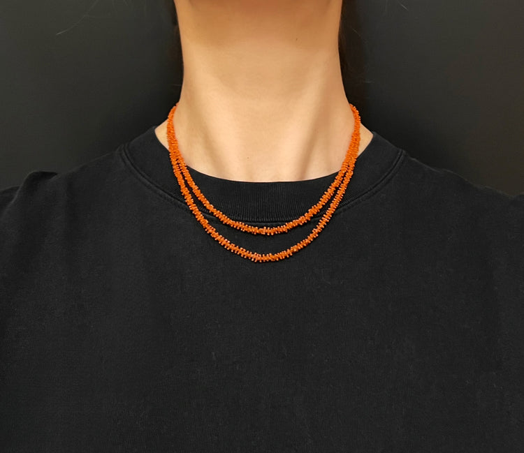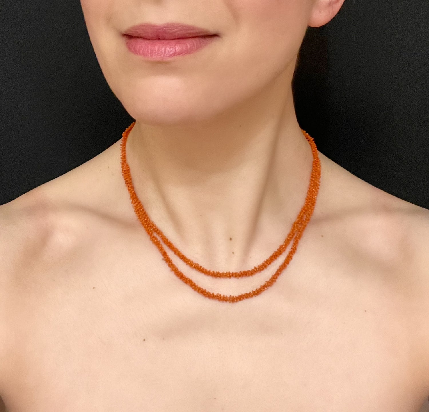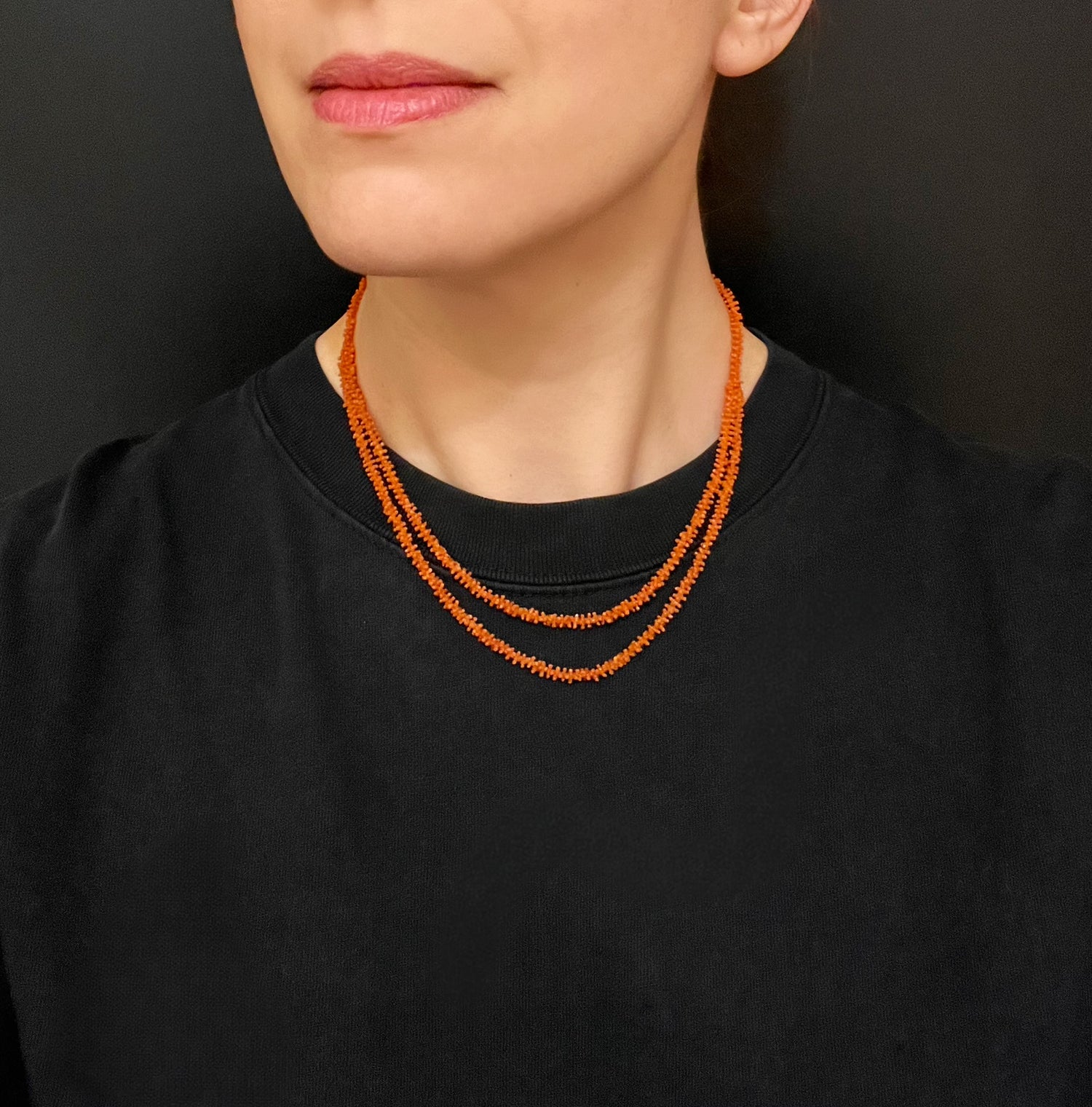 The necklace is made up of tiny hand carved little beads known as ‘cotton reel’ or ‘rolling pin’ beads due to their shape.