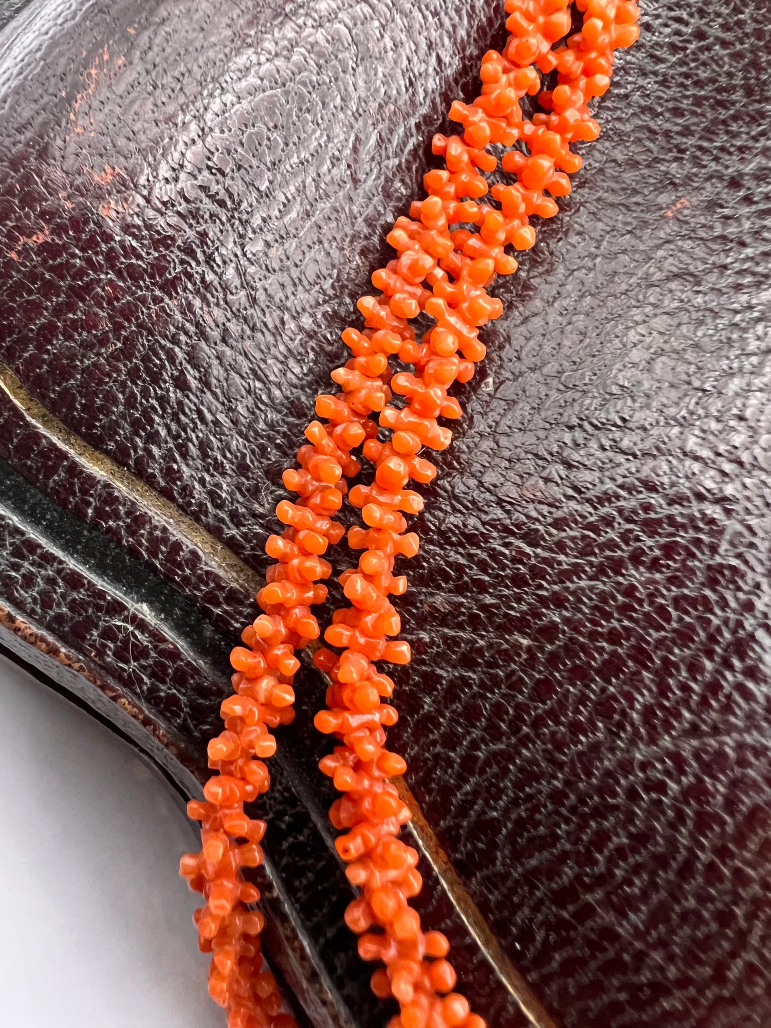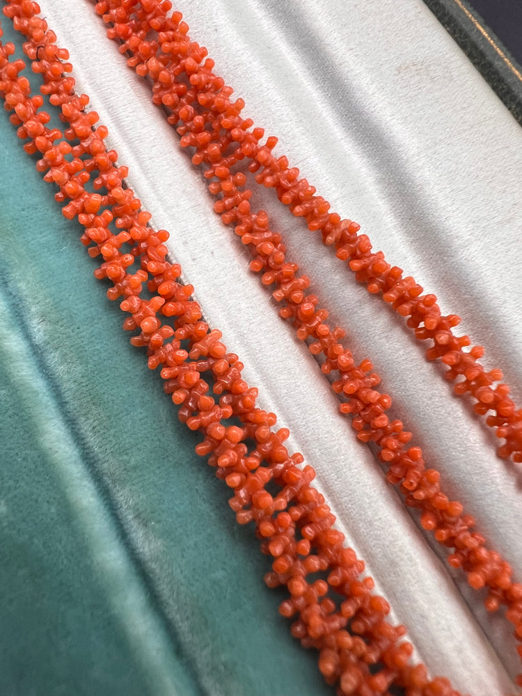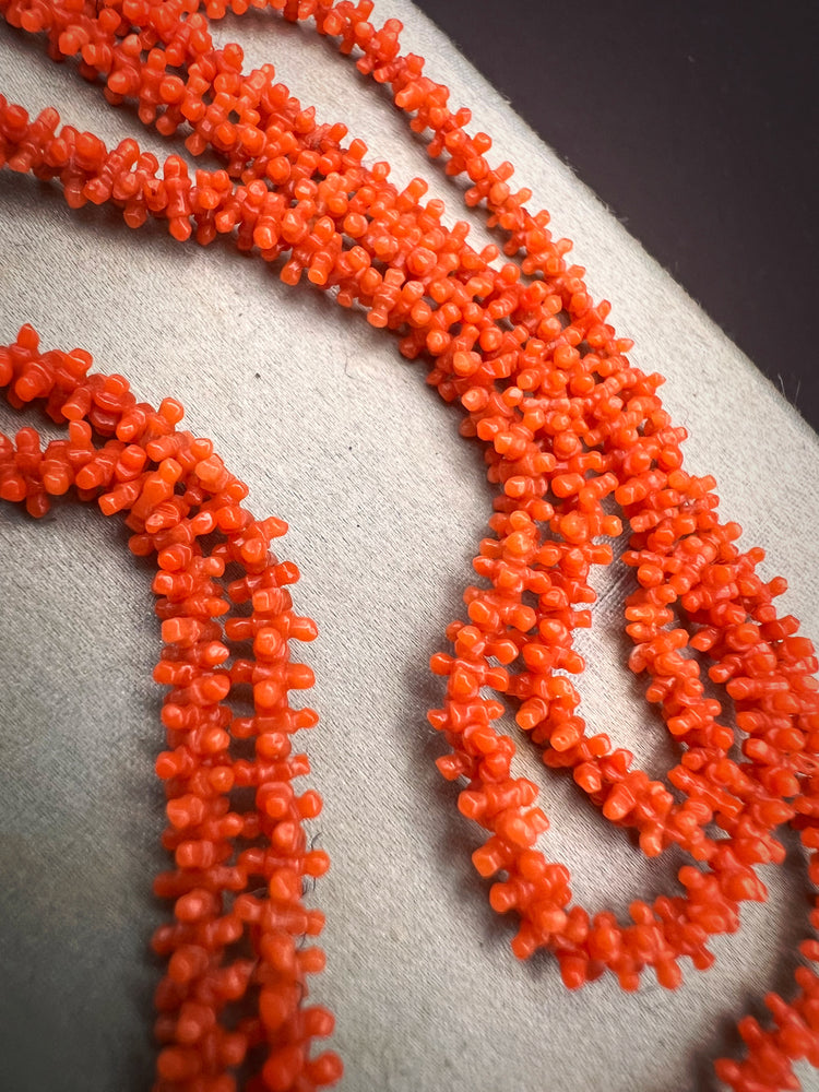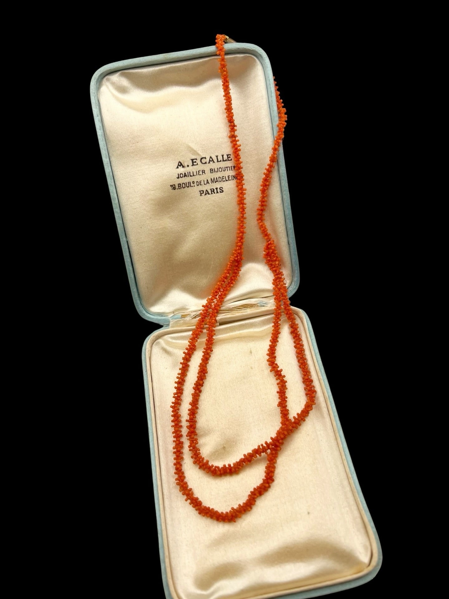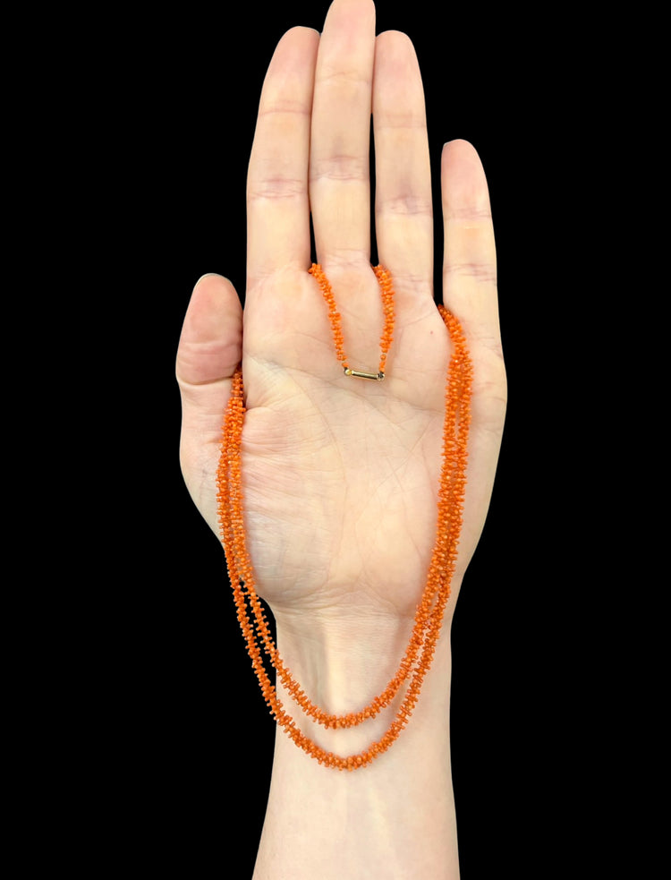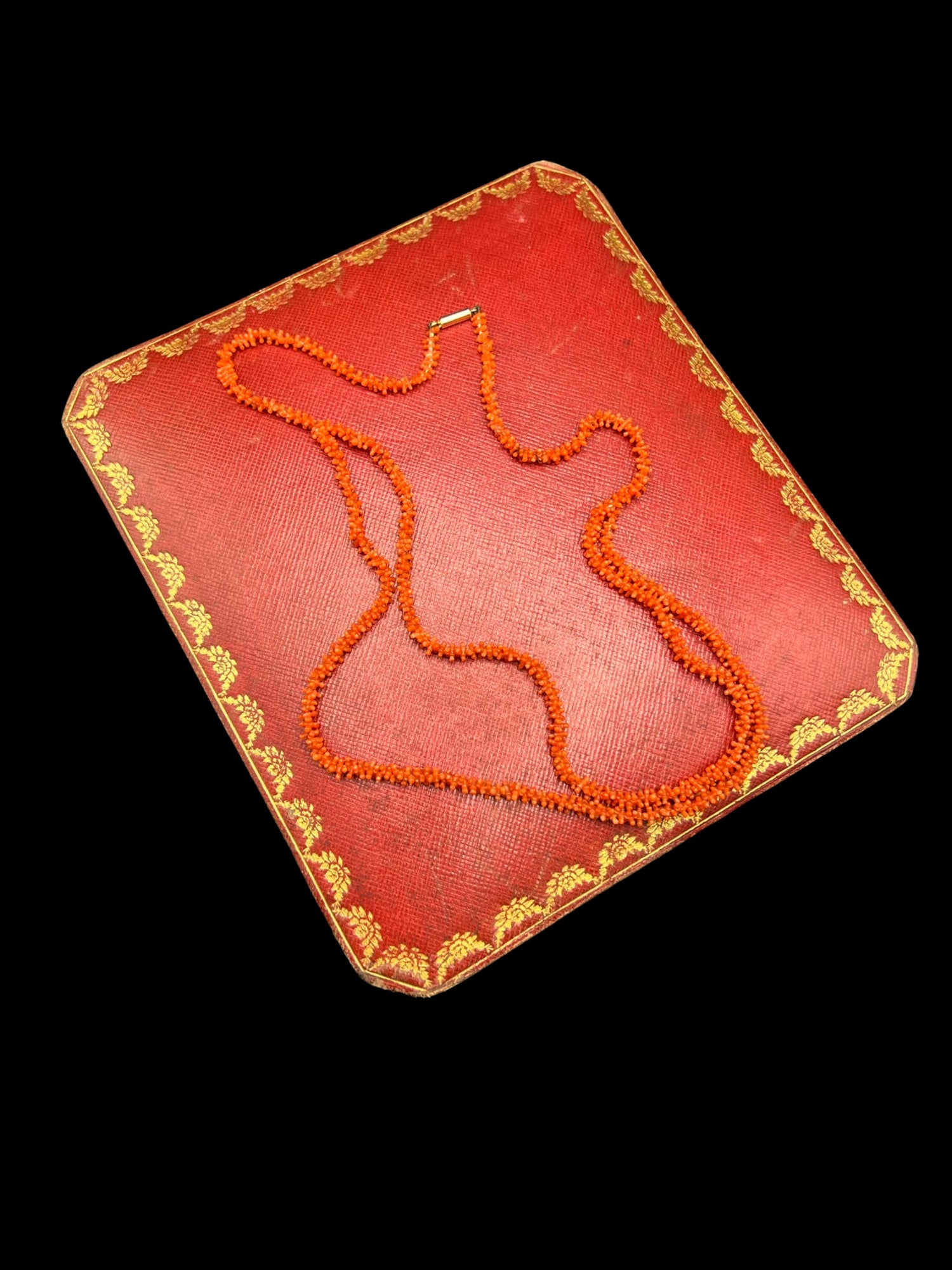 The necklace is made up of tiny hand carved little beads known as ‘cotton reel’ or ‘rolling pin’ beads due to their shape.