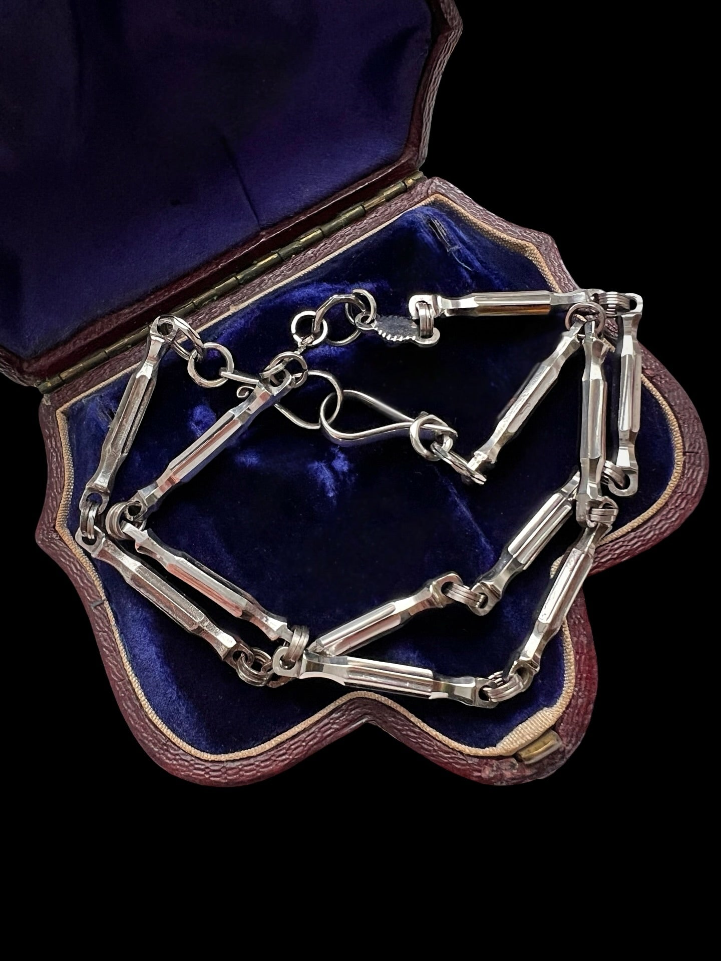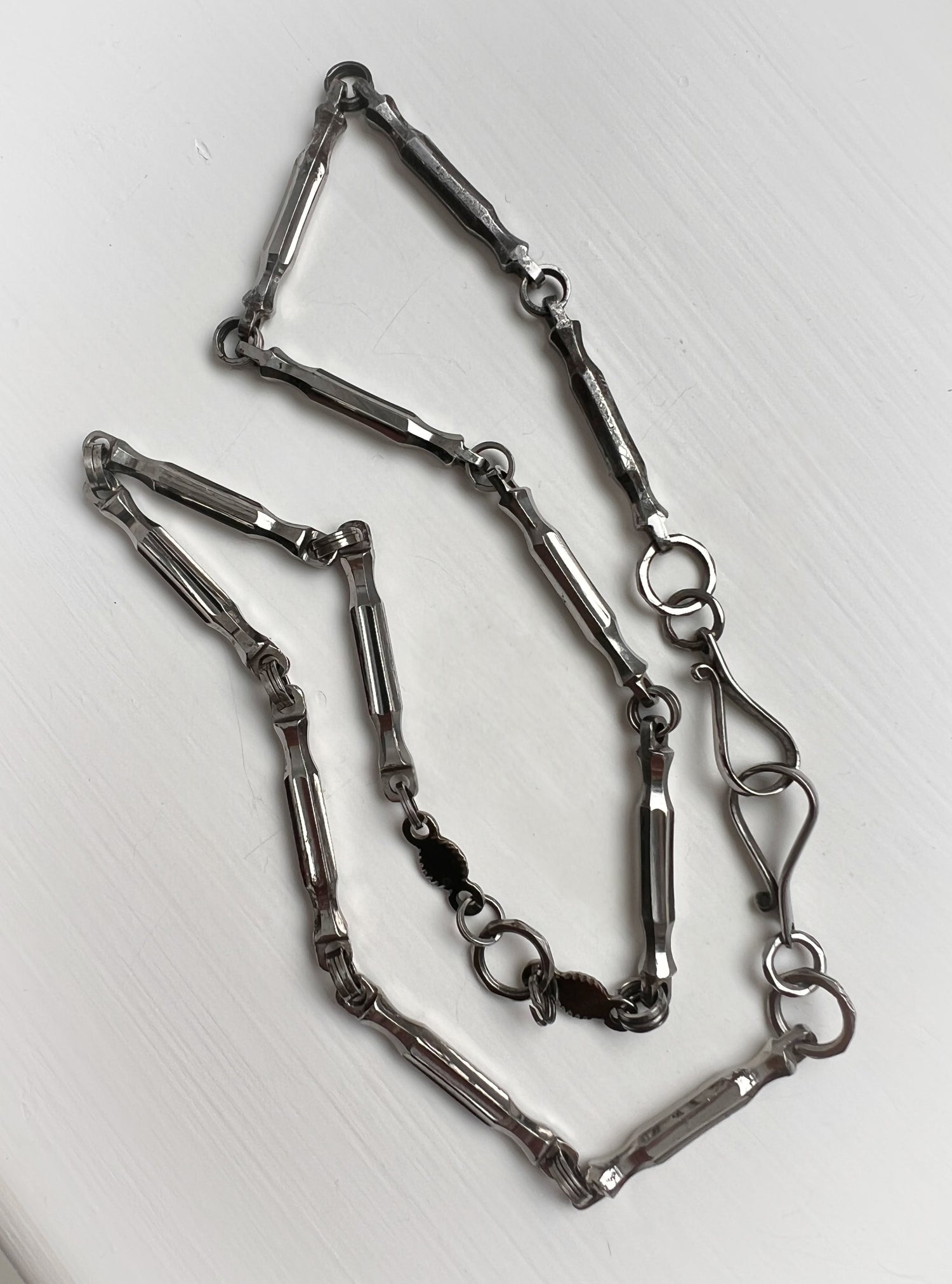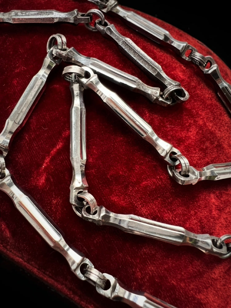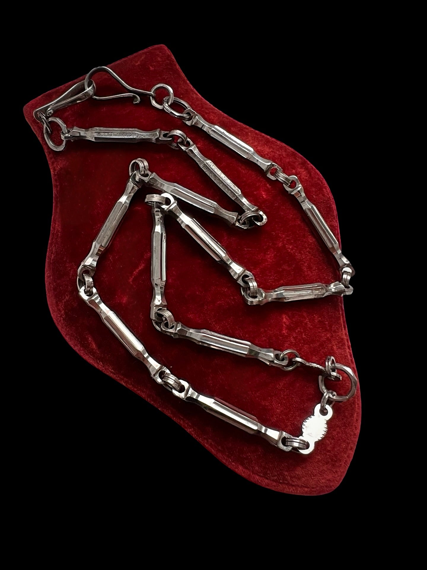 Circa 1820/30; the chain is made of long faceted cut steel barrel links with a central faceted split ring, which is perfect to add your favourite pendant.