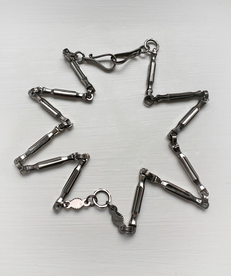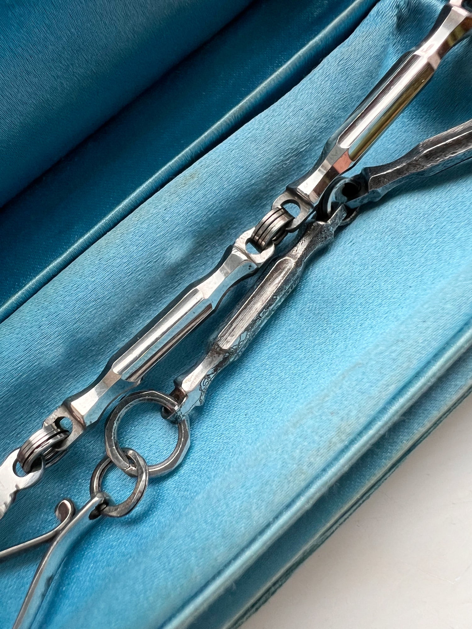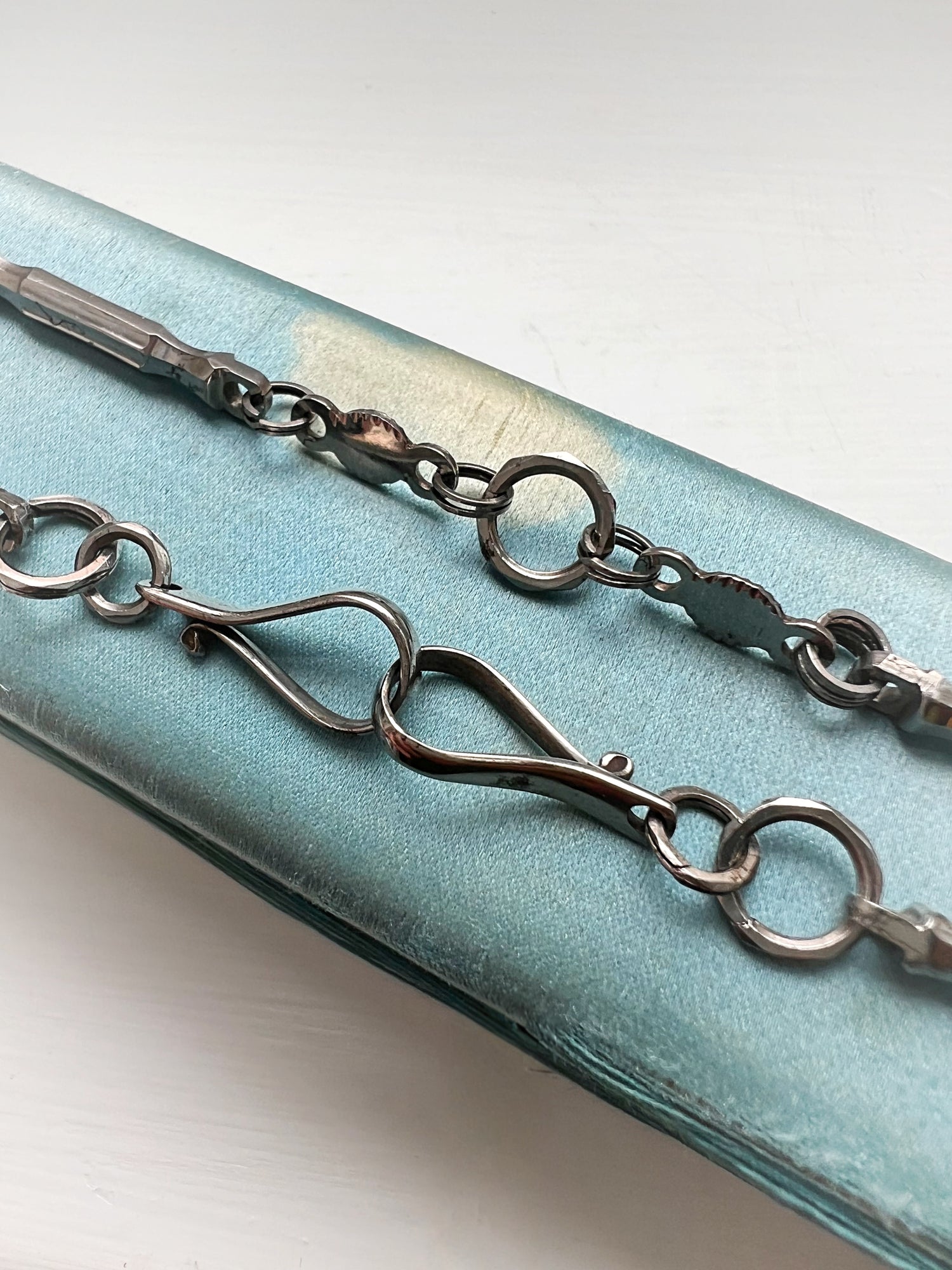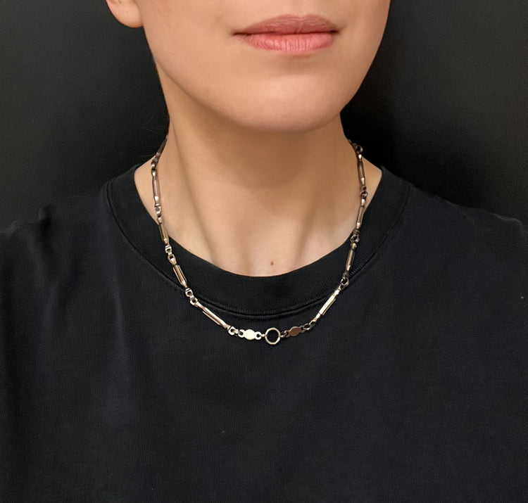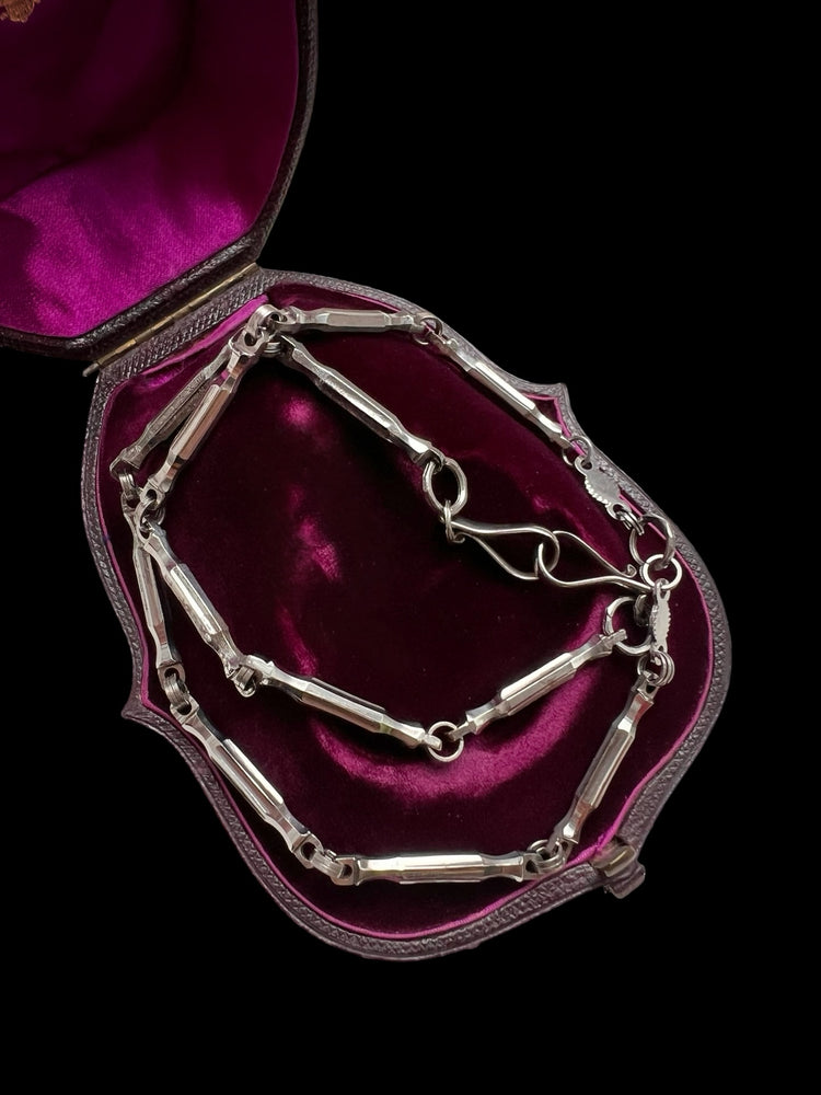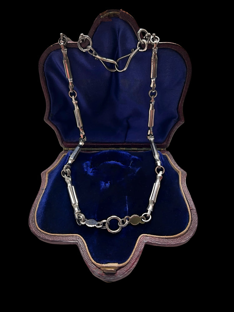 Circa 1820/30; the chain is made of long faceted cut steel barrel links with a central faceted split ring, which is perfect to add your favourite pendant.