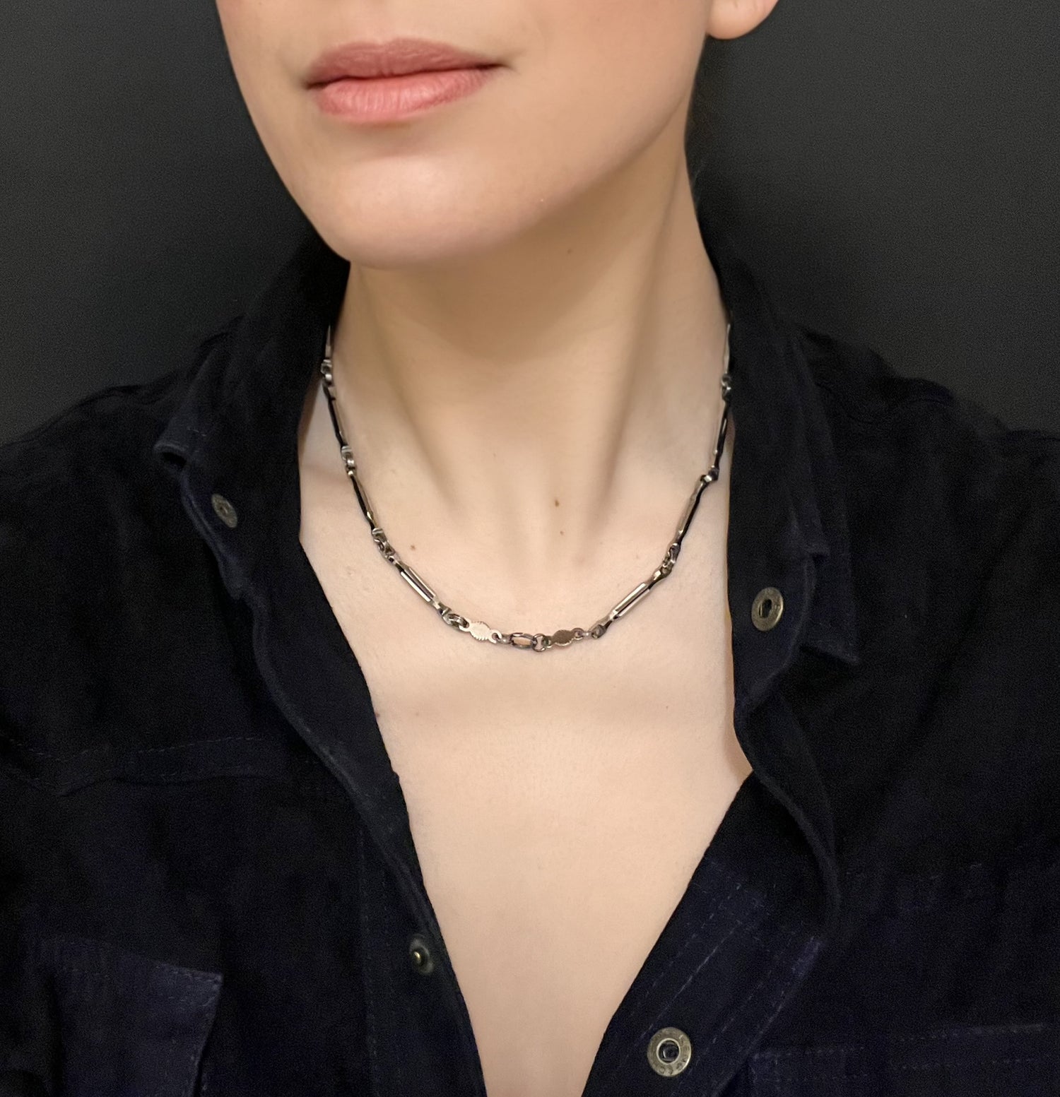 A fab length for everyday wear. And also looks super cool mixed in with silver and gold.