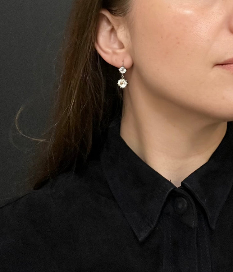I love that the stones have been set on an angle, giving these traditional earrings a modern twist.