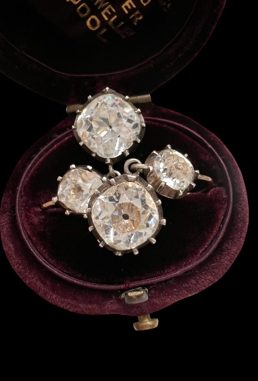 The stones are set in a traditional silver cut down foiled setting and backed with gold.