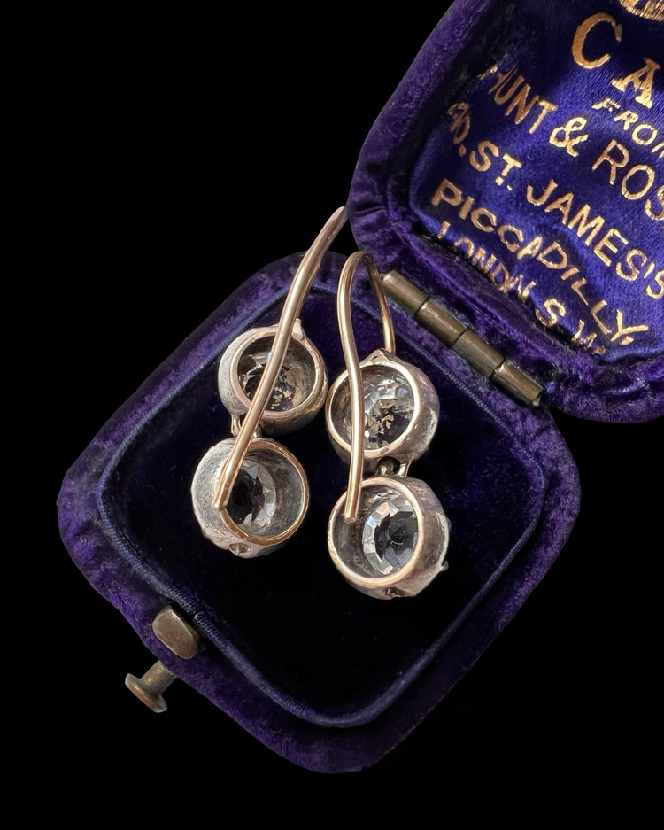 The settings are open backed, allowing the maximum of light into the stones for extra sparkle.