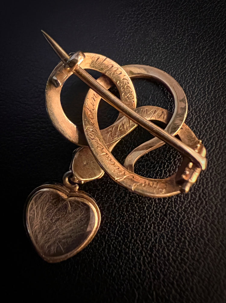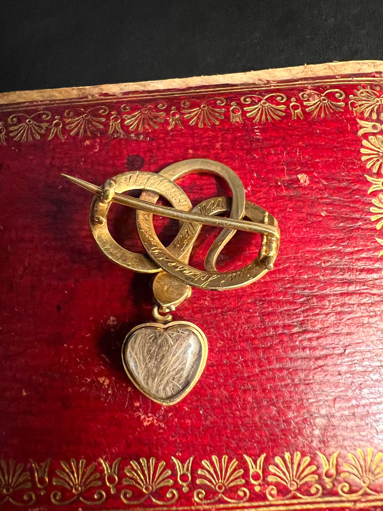 The reverse reveals the pendant is filled with a hair locket and sealed with the original glass panel.