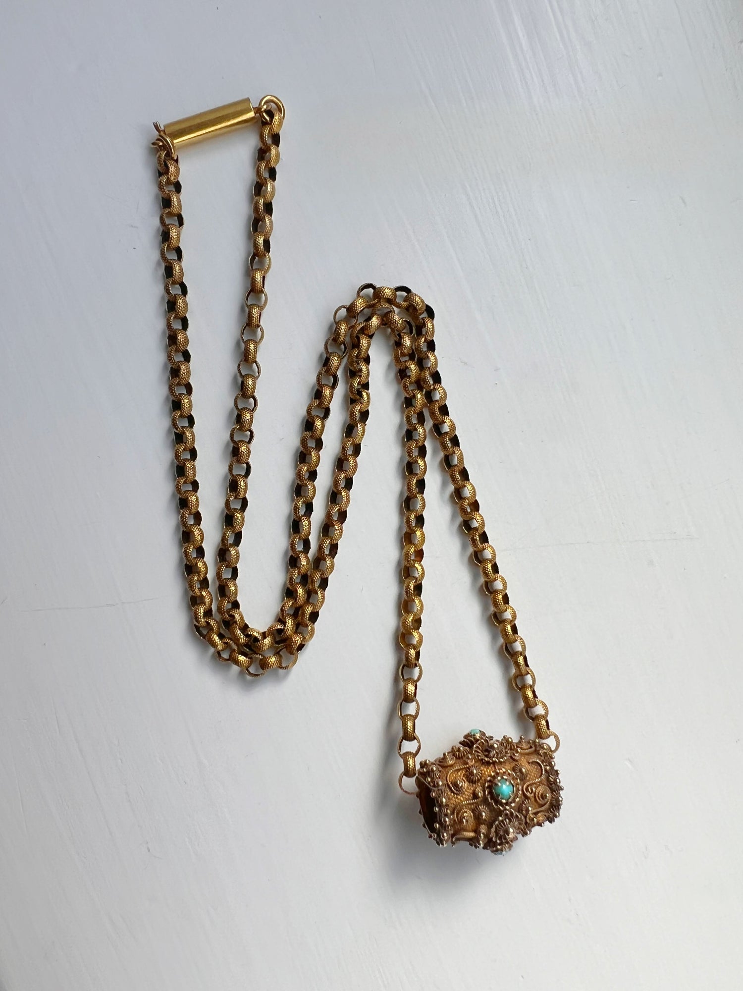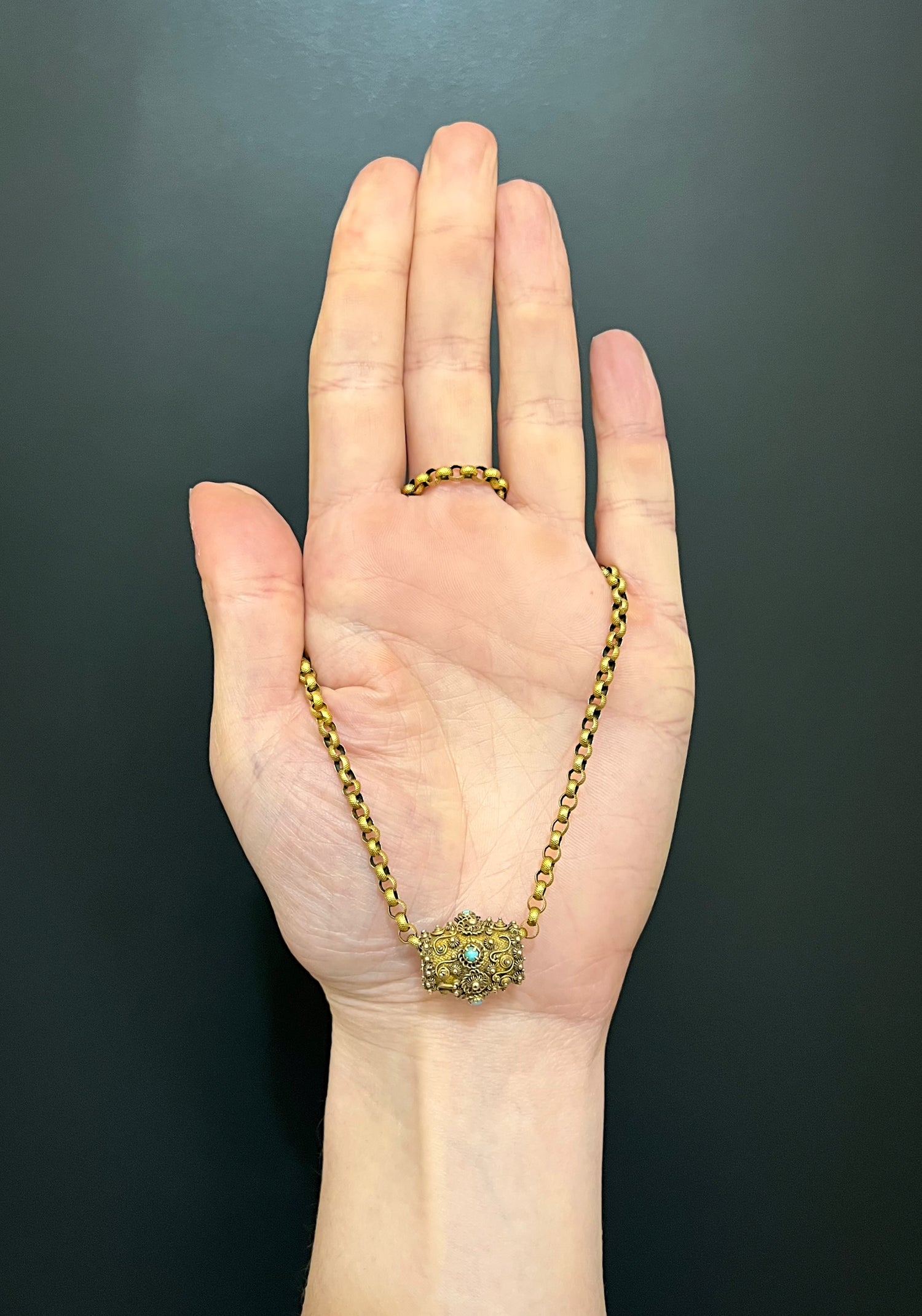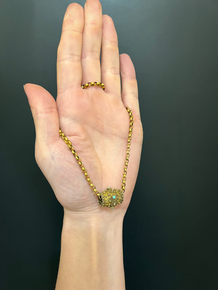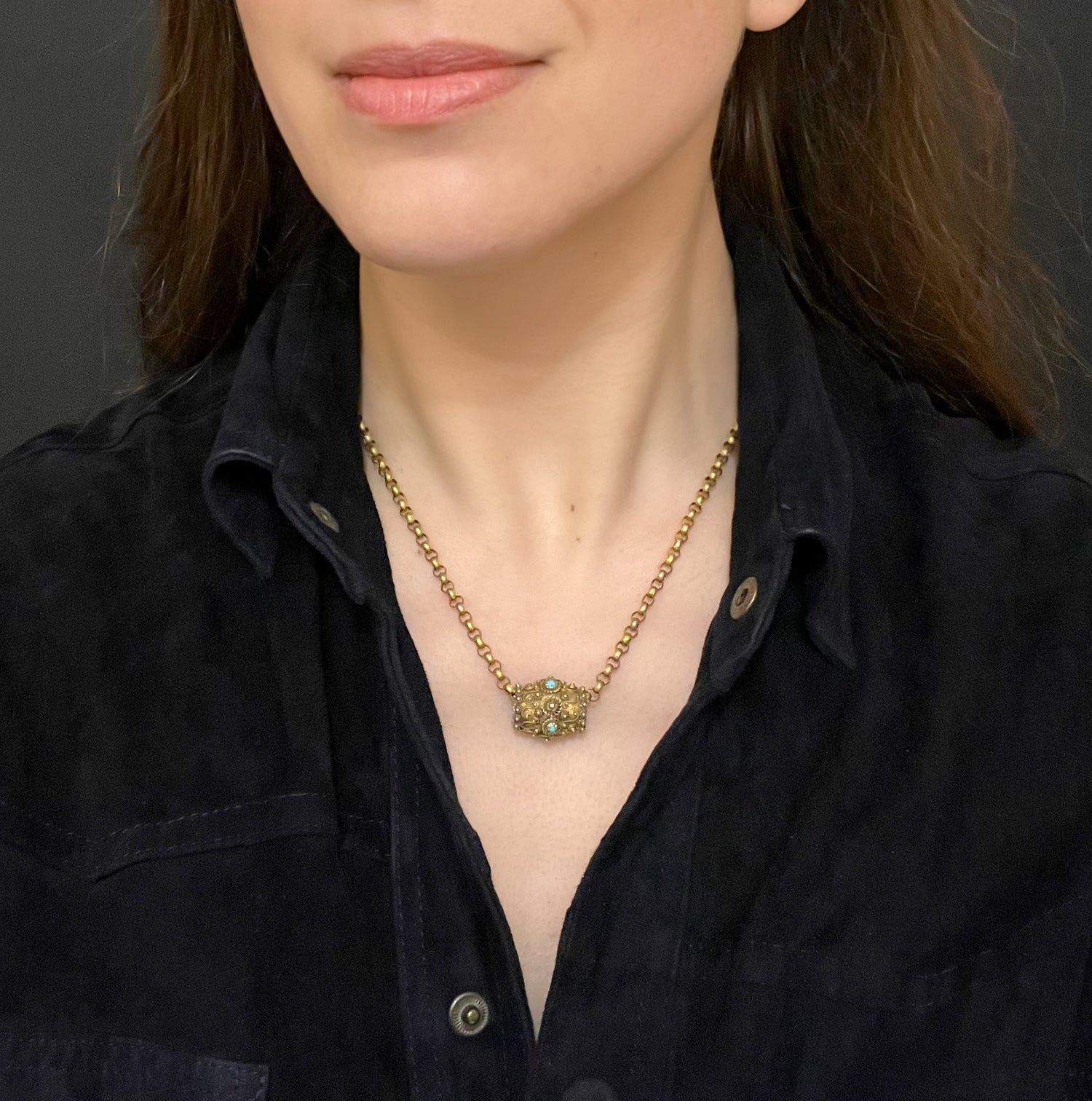 GEORGIAN REGENCY HIGH CARAT GOLD & TURQUOISE SLIDER PENDANT
