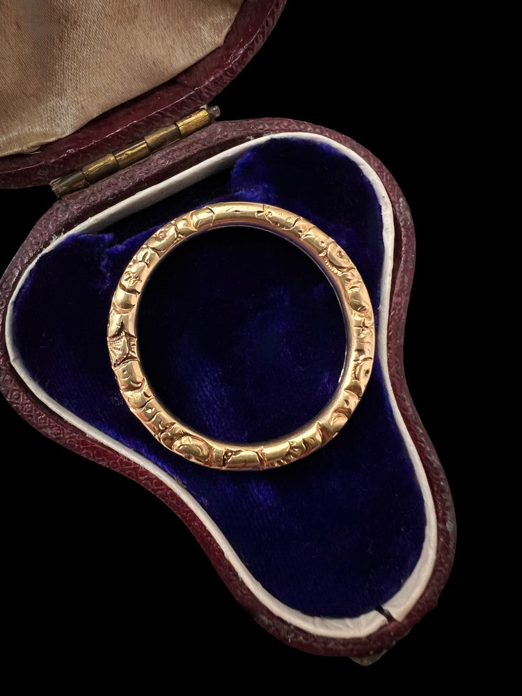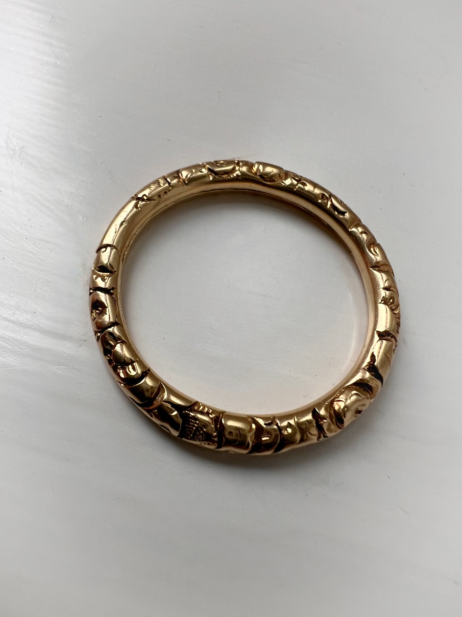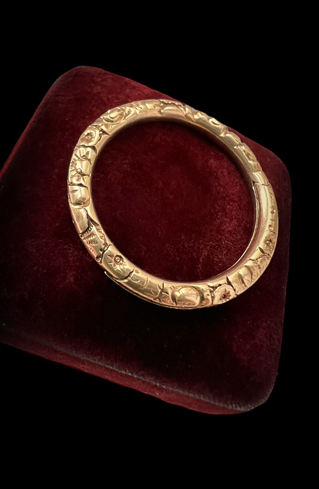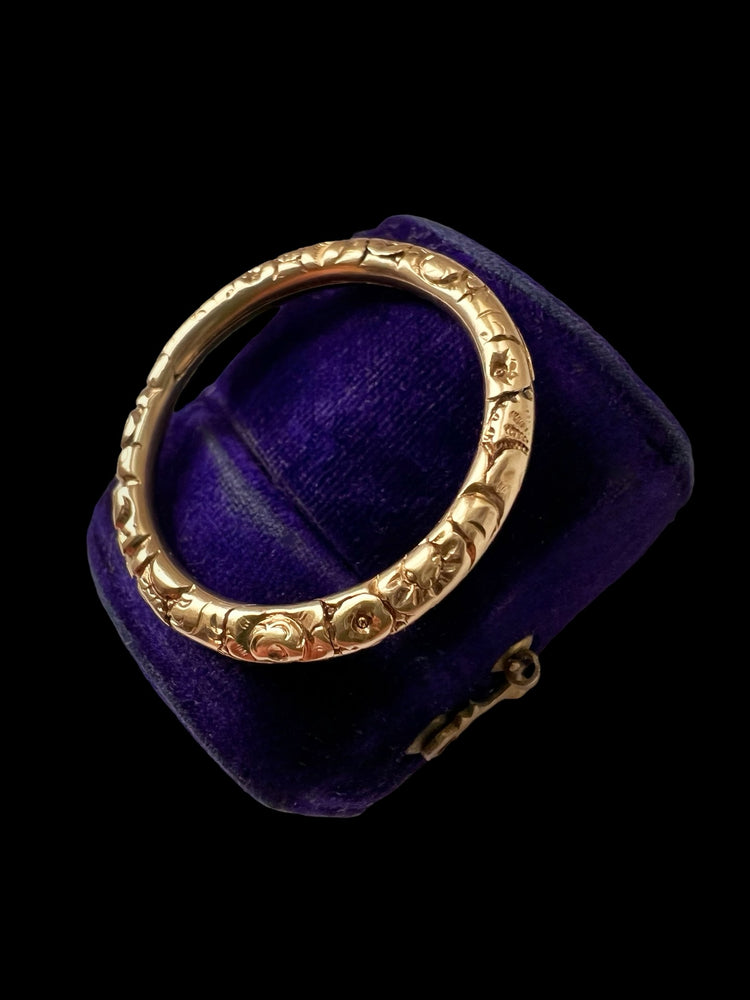 This is a gorgeous heavy weight Georgian 15ct gold chased split ring!