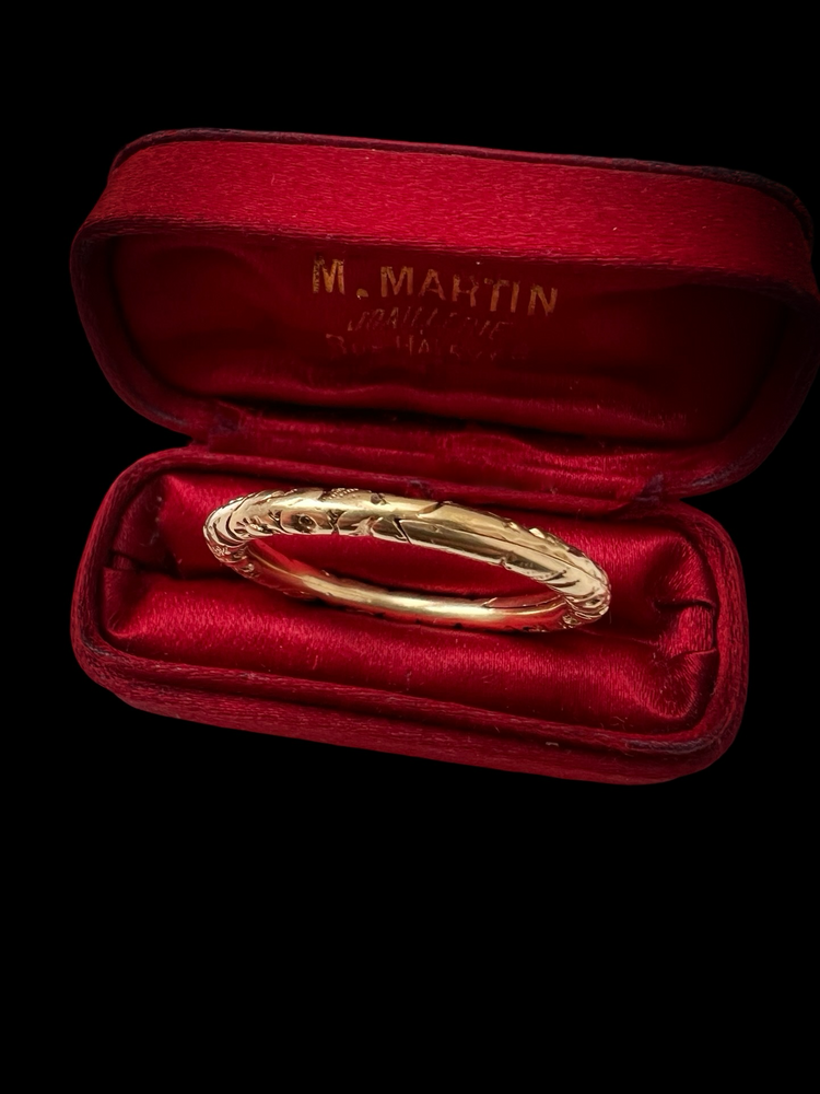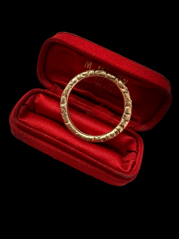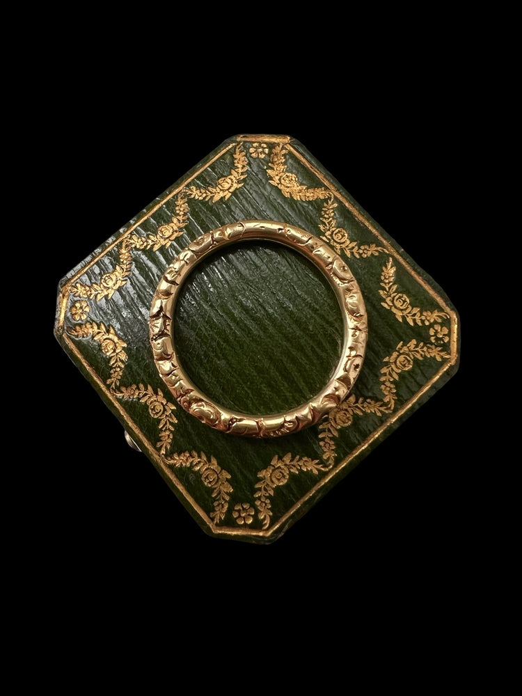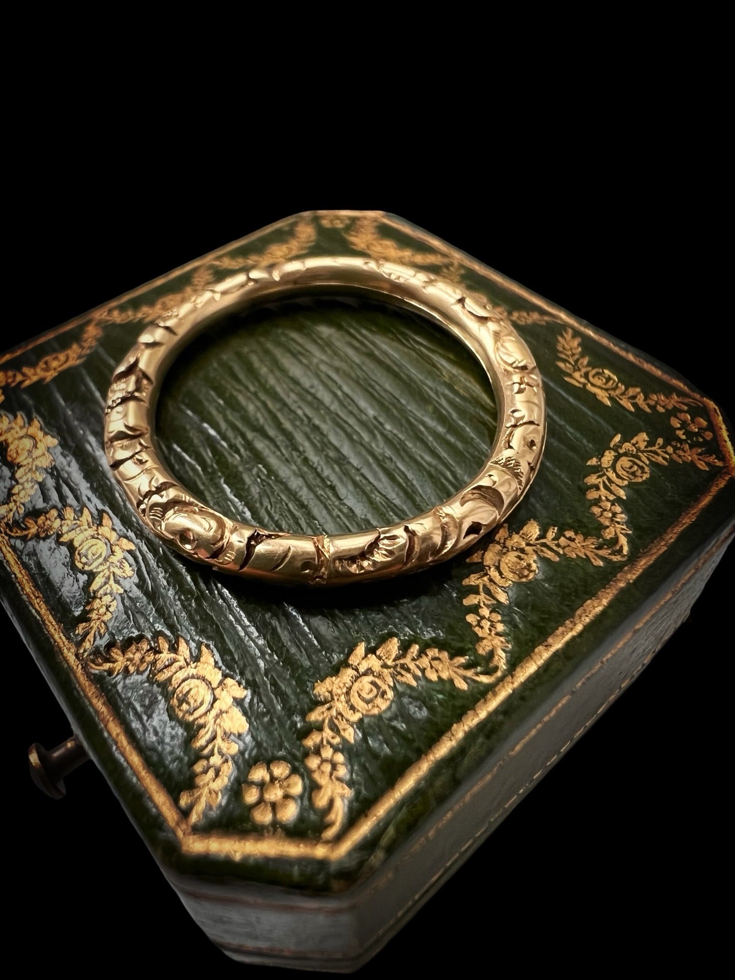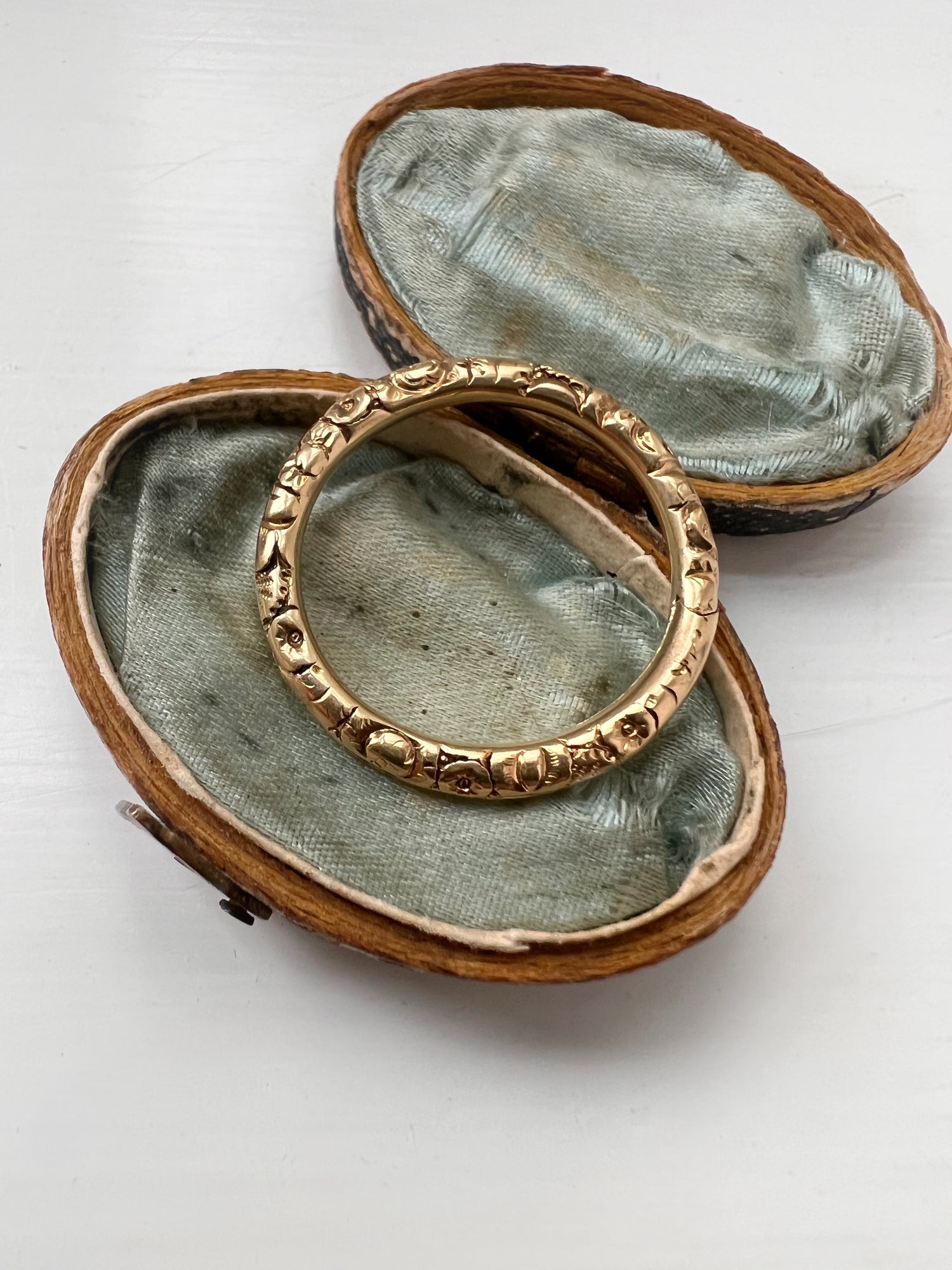 This is a gorgeous heavy weight Georgian 15ct gold chased split ring!