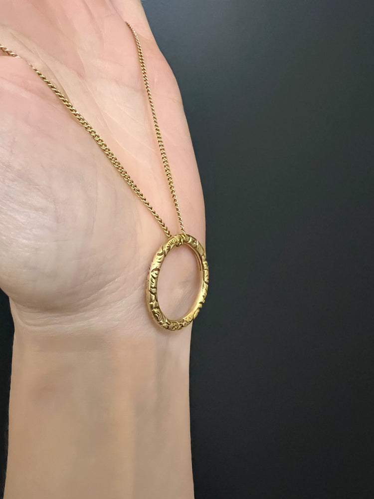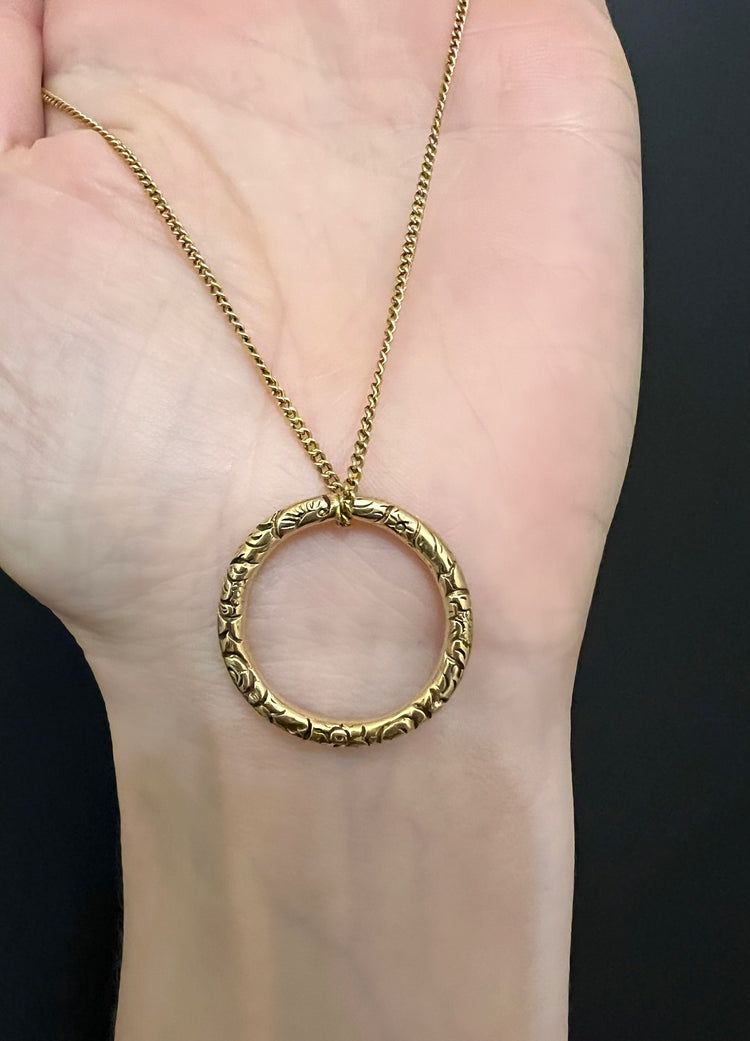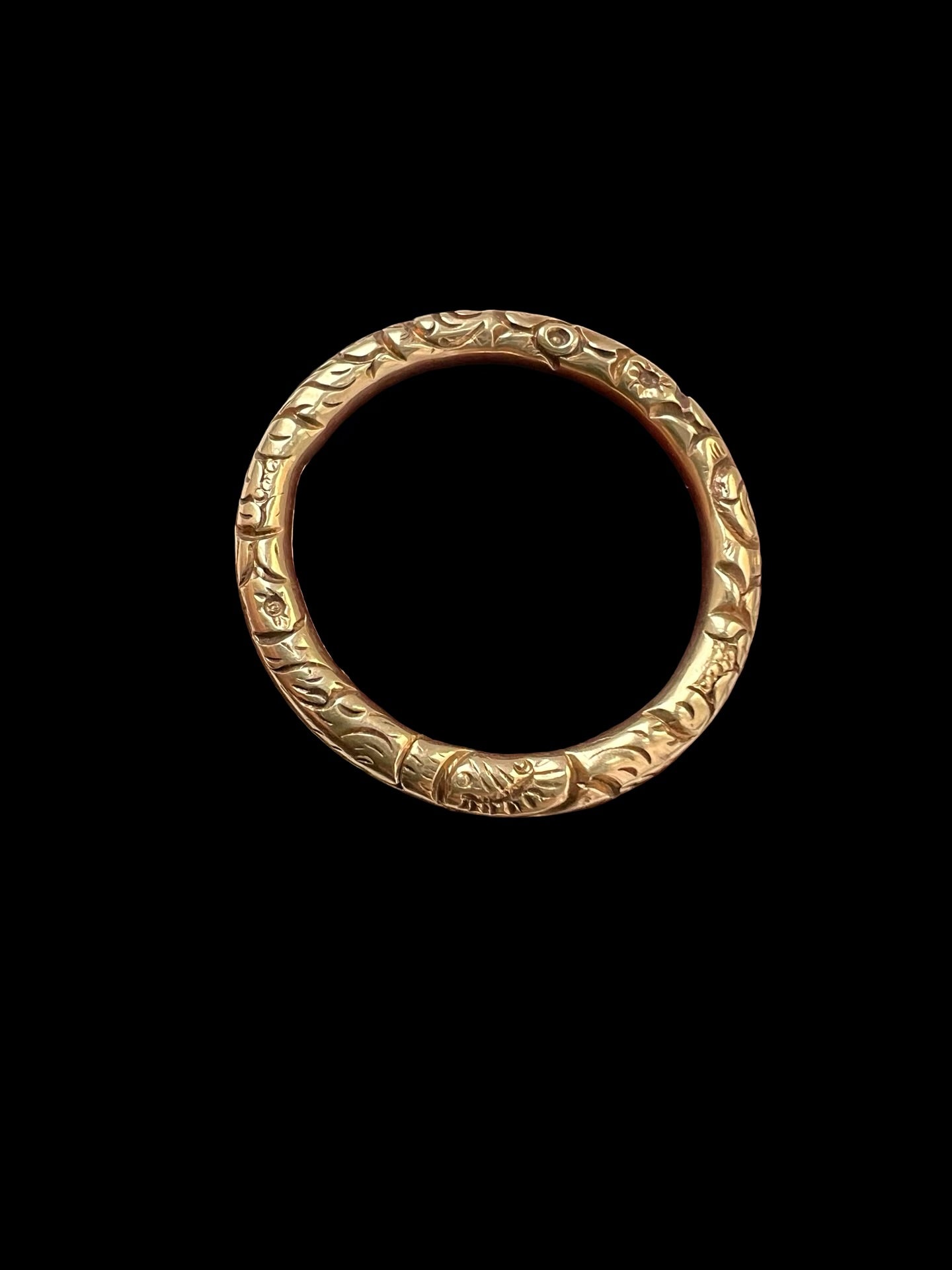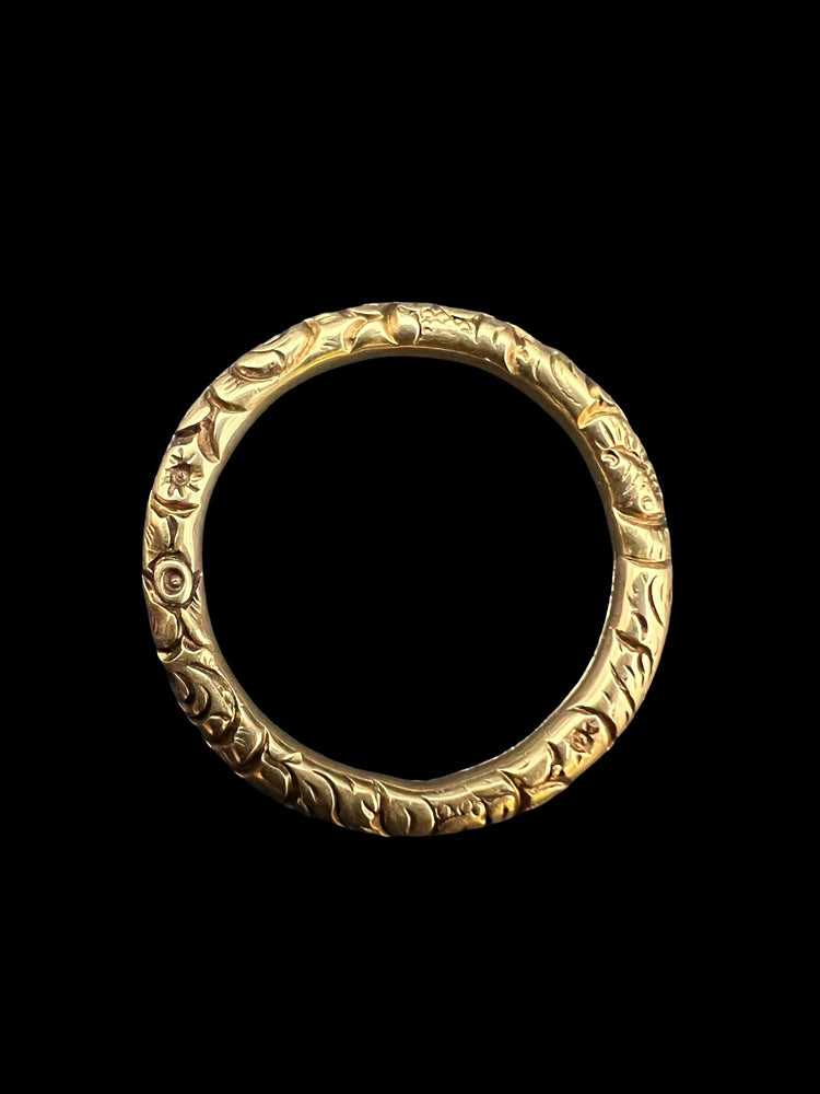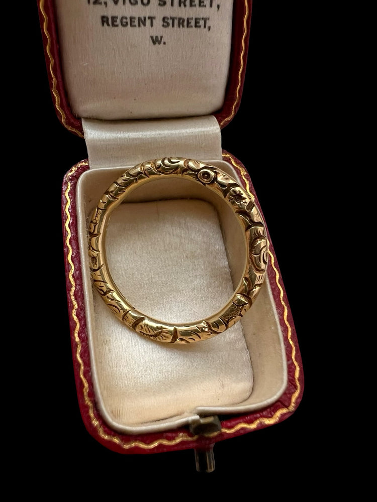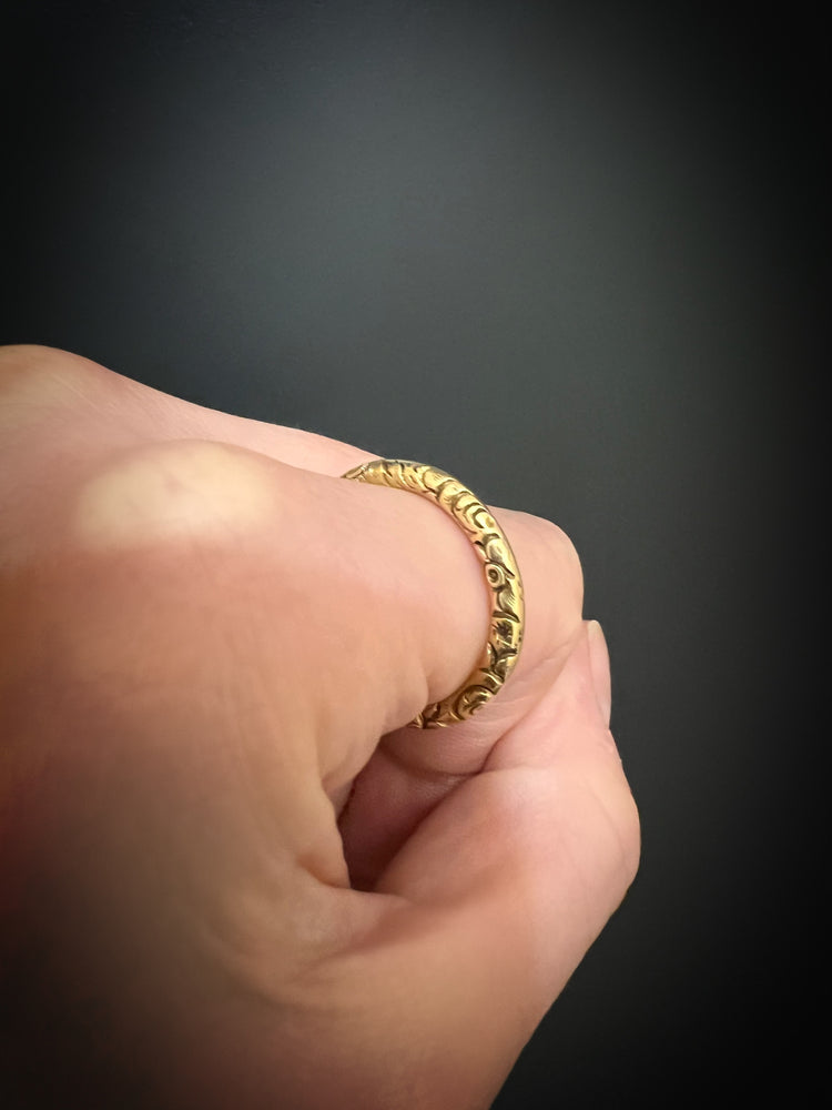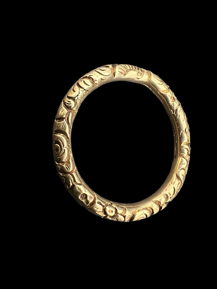 GEORGIAN LARGE CHUNKY 15CT GOLD CHASED SPLIT RING