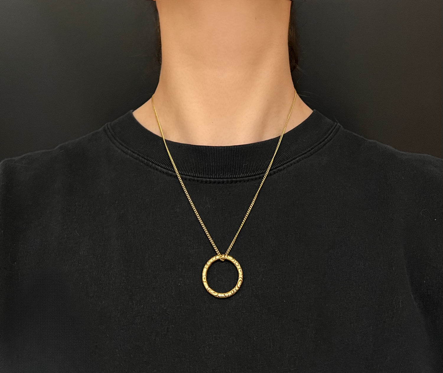 We recommend you place a tape around your neck to see where the chain will sit.