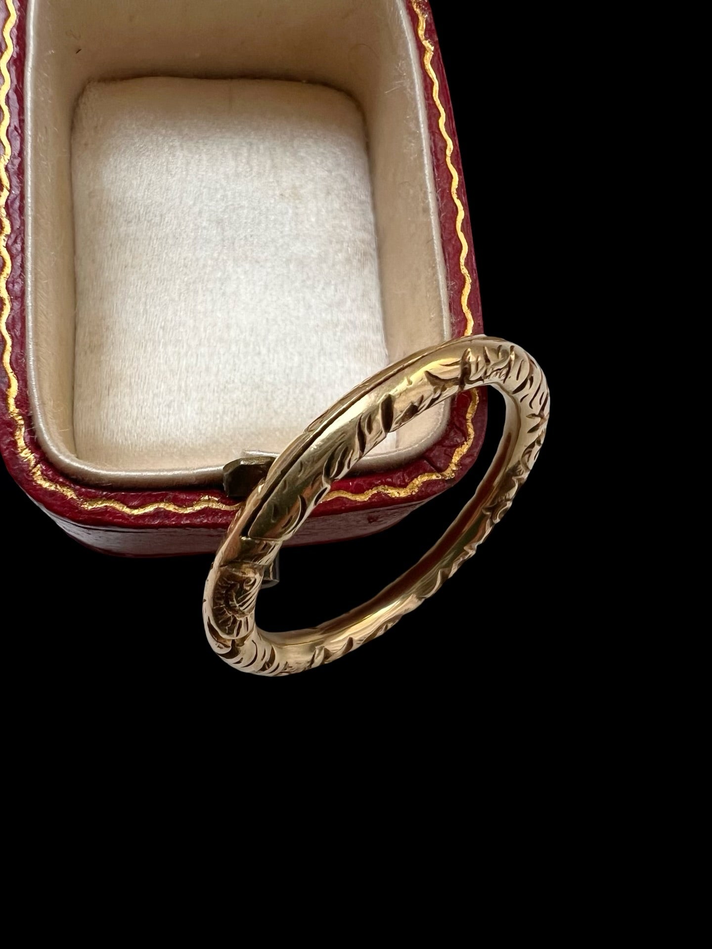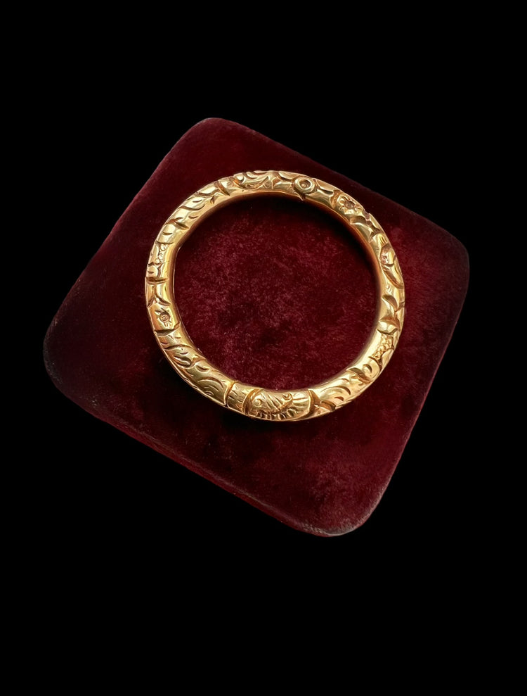 This is a gorgeous heavy weight Georgian 15ct gold chased split ring!