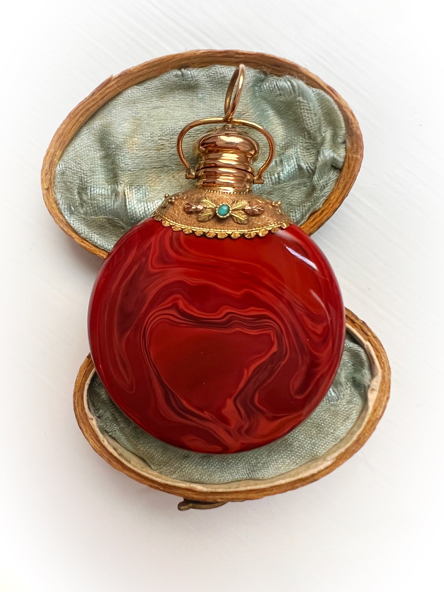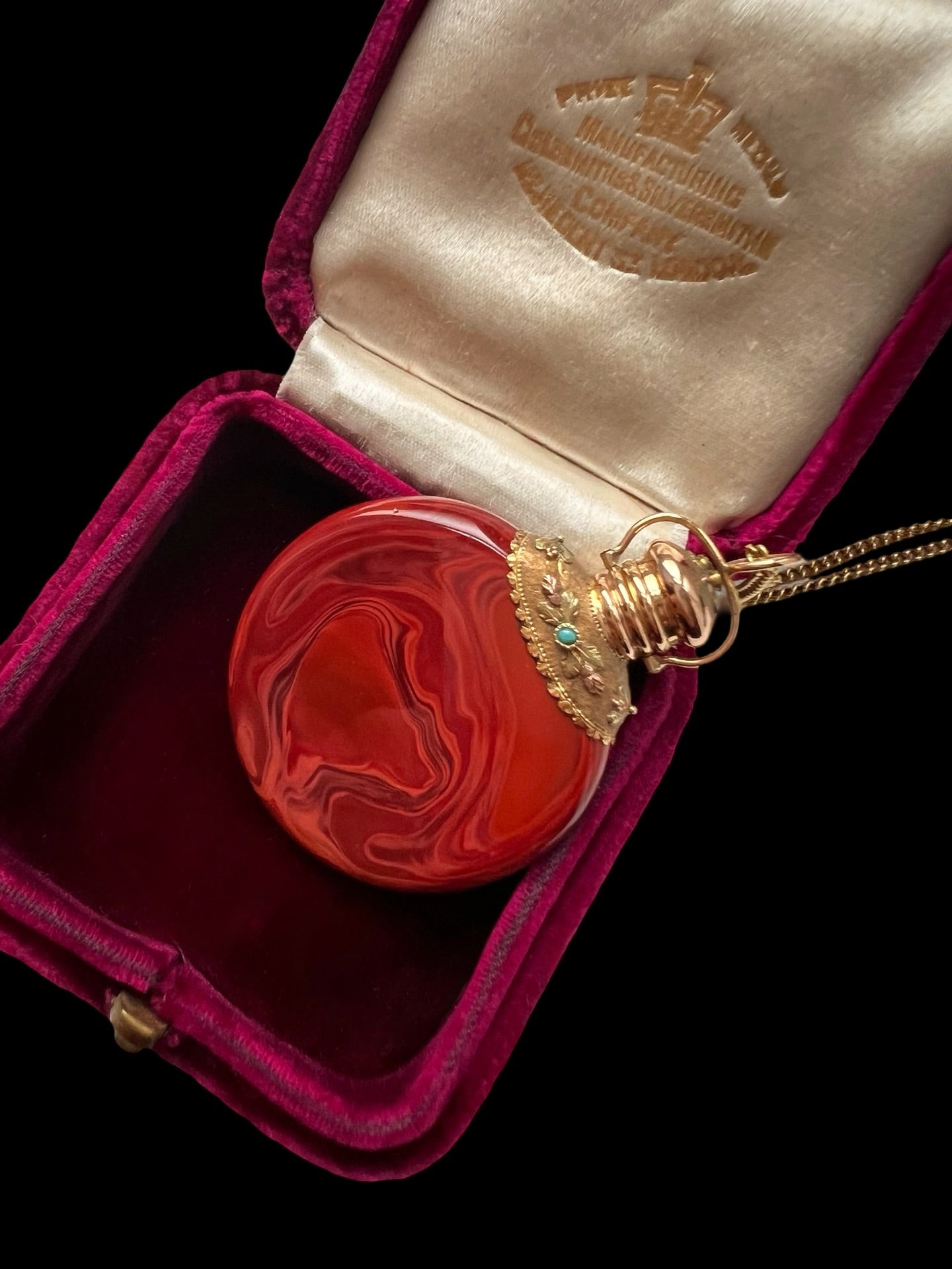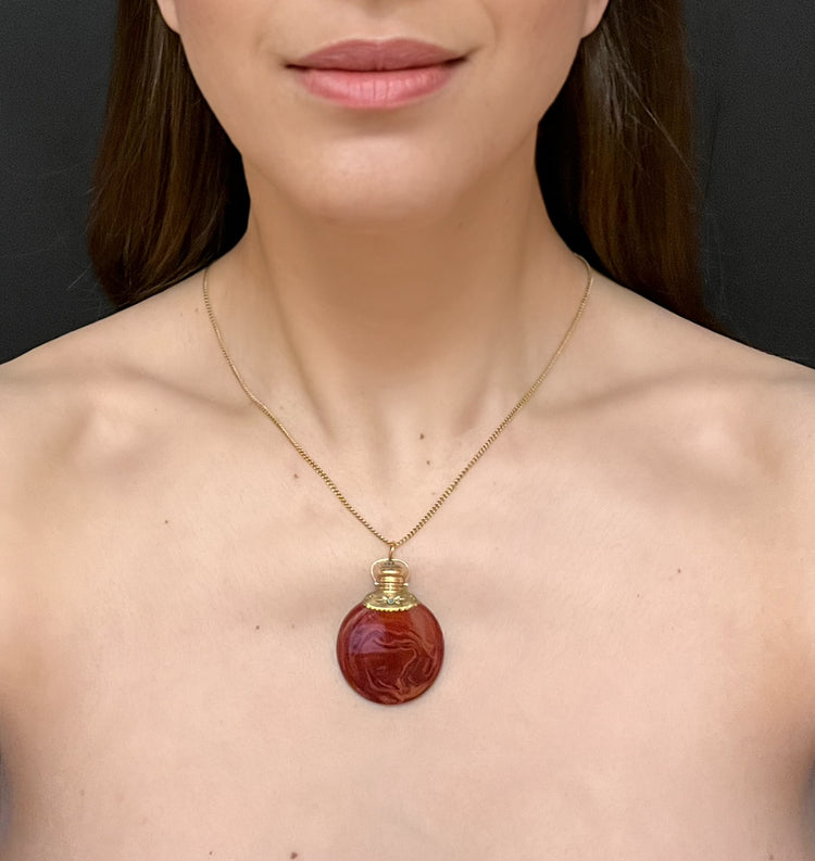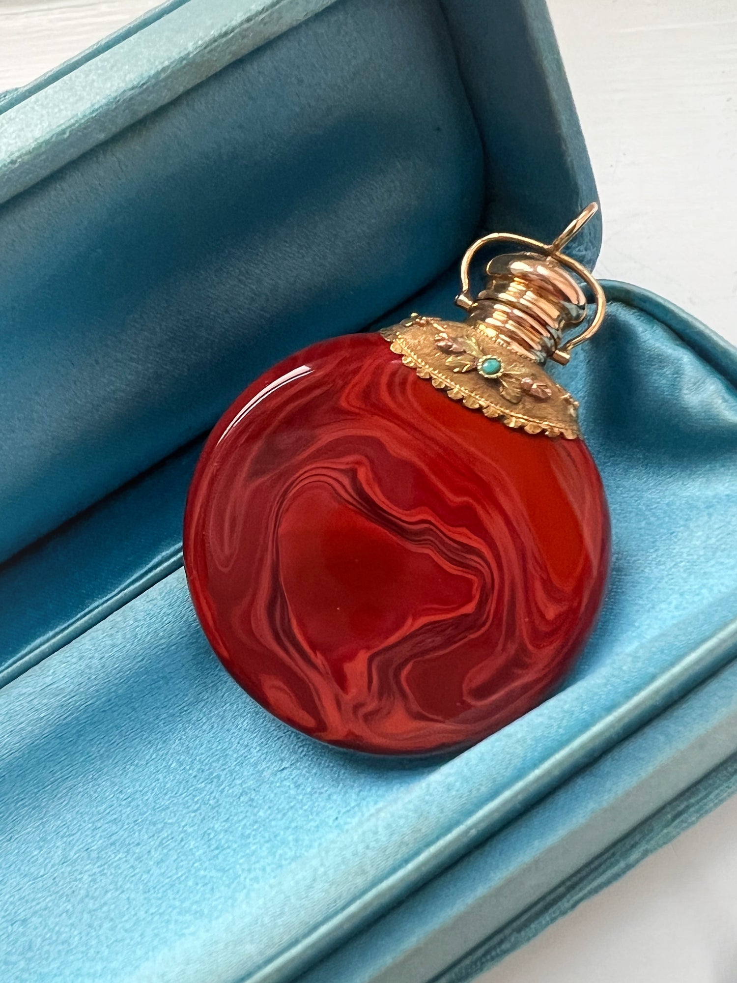 EARLY 19TH CENTURY FRENCH MARBLE GLASS & GOLD SCENT BOTTLE PENDANT