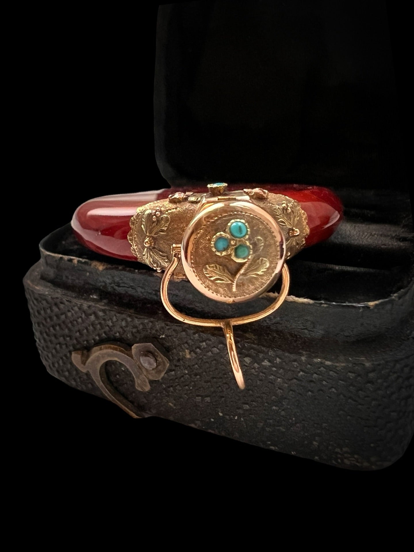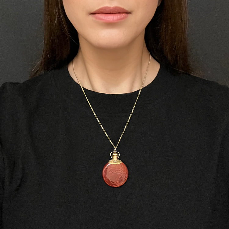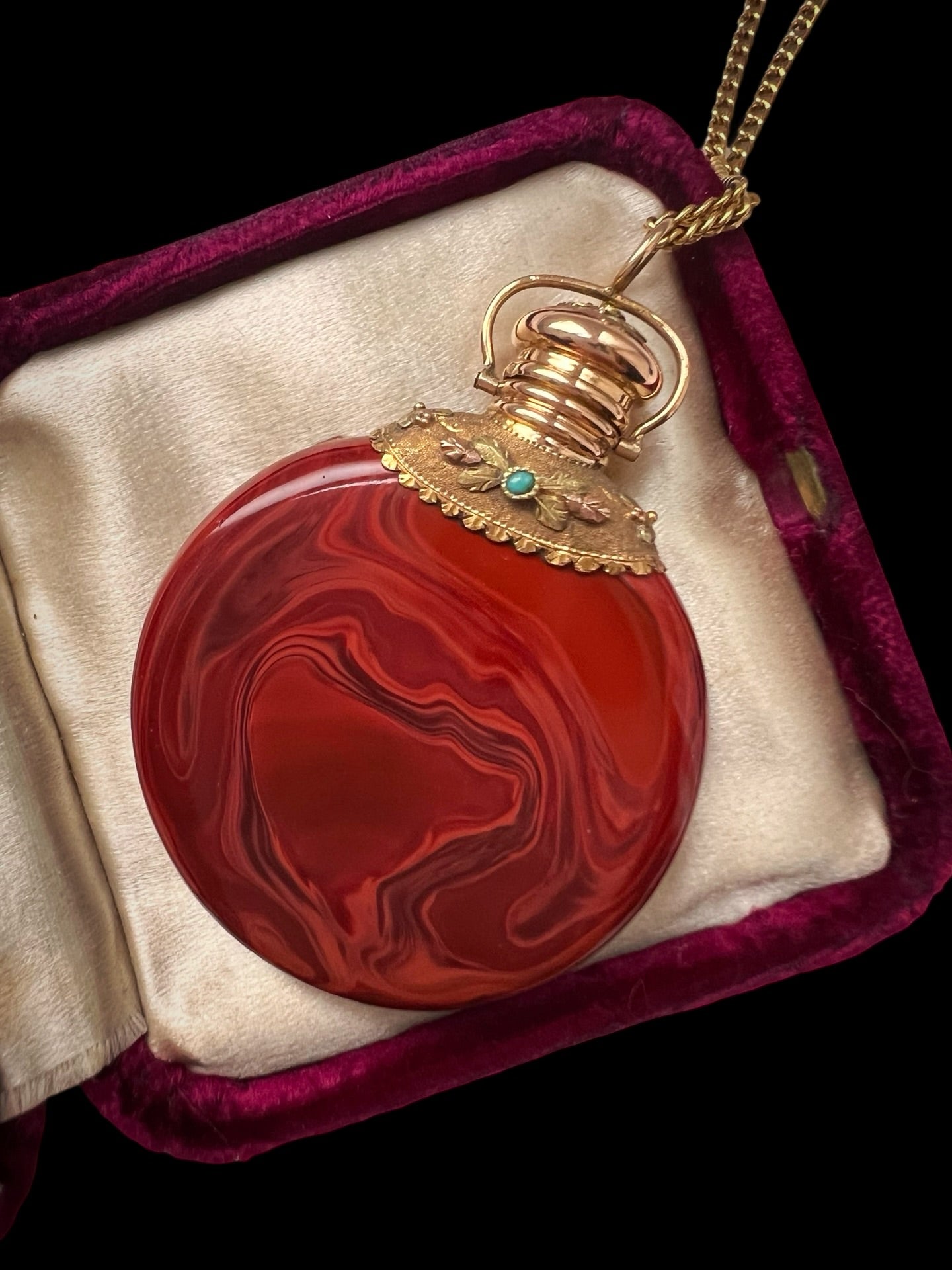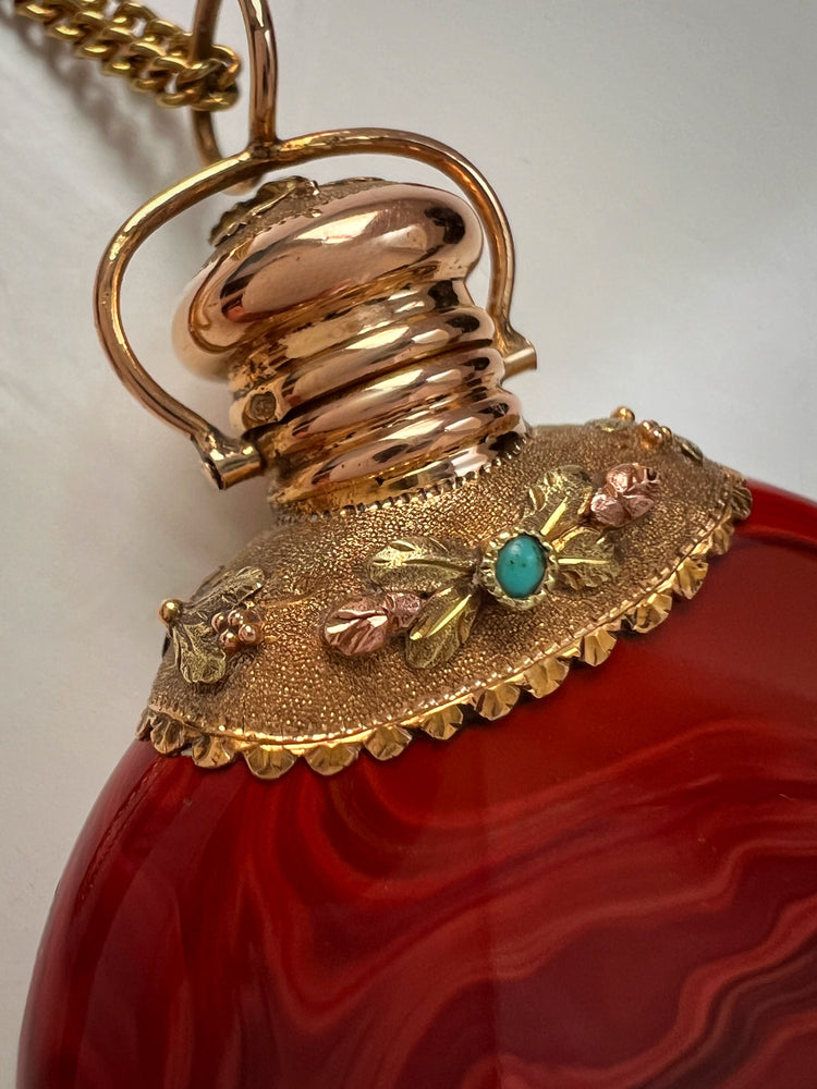 EARLY 19TH CENTURY FRENCH MARBLE GLASS & GOLD SCENT BOTTLE PENDANT