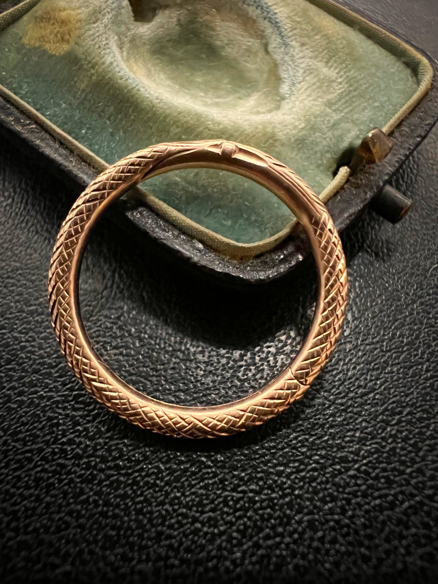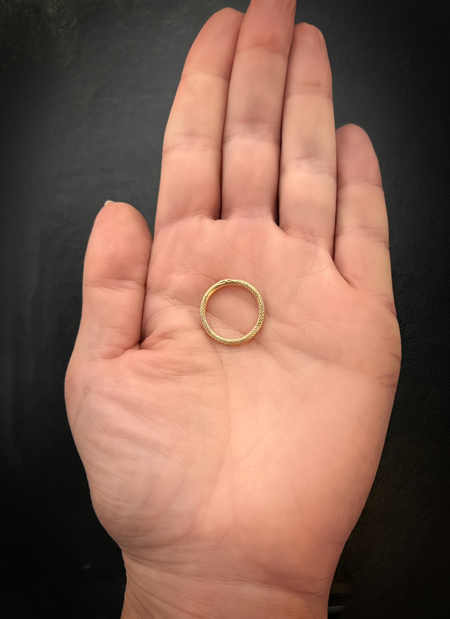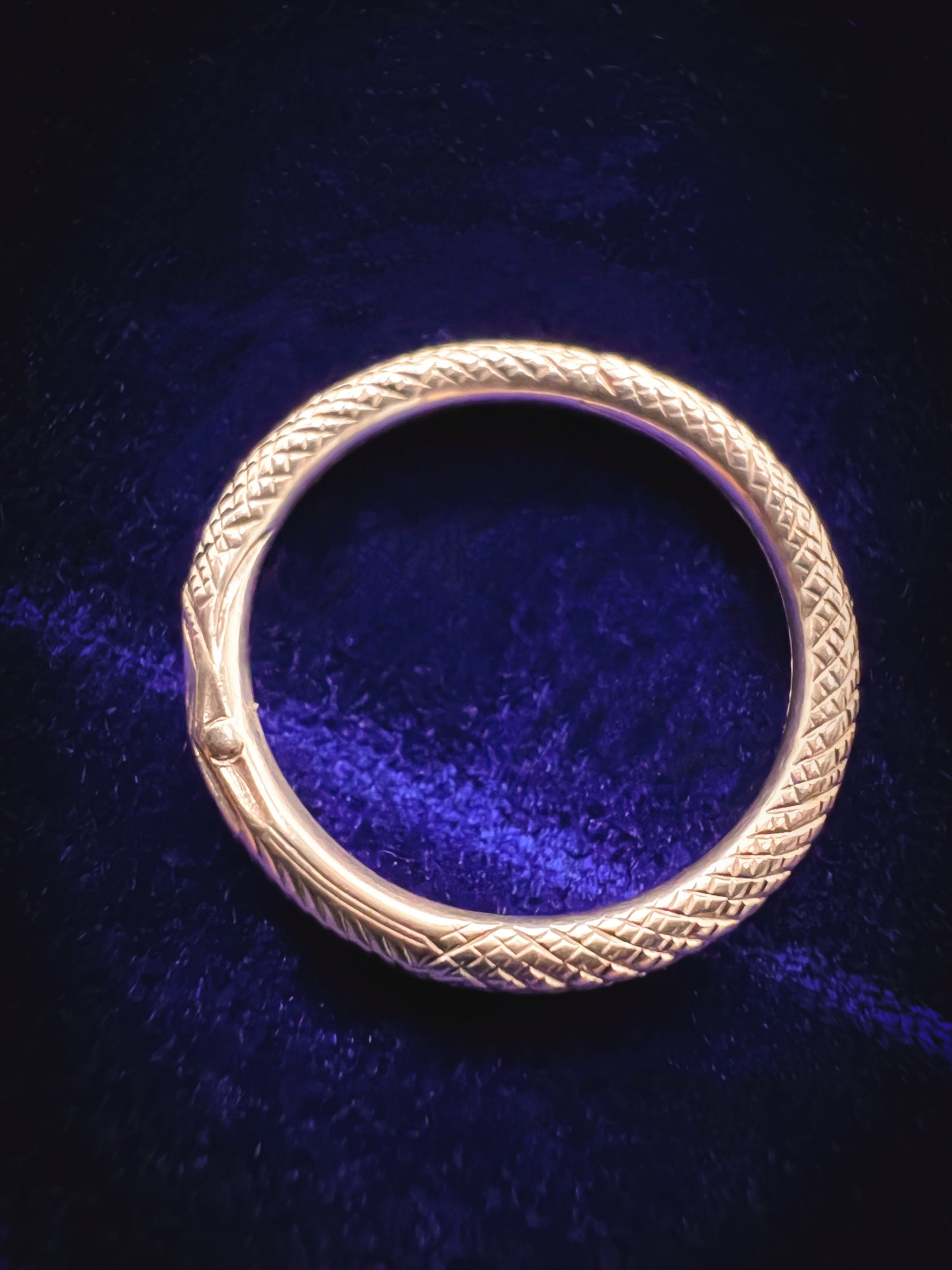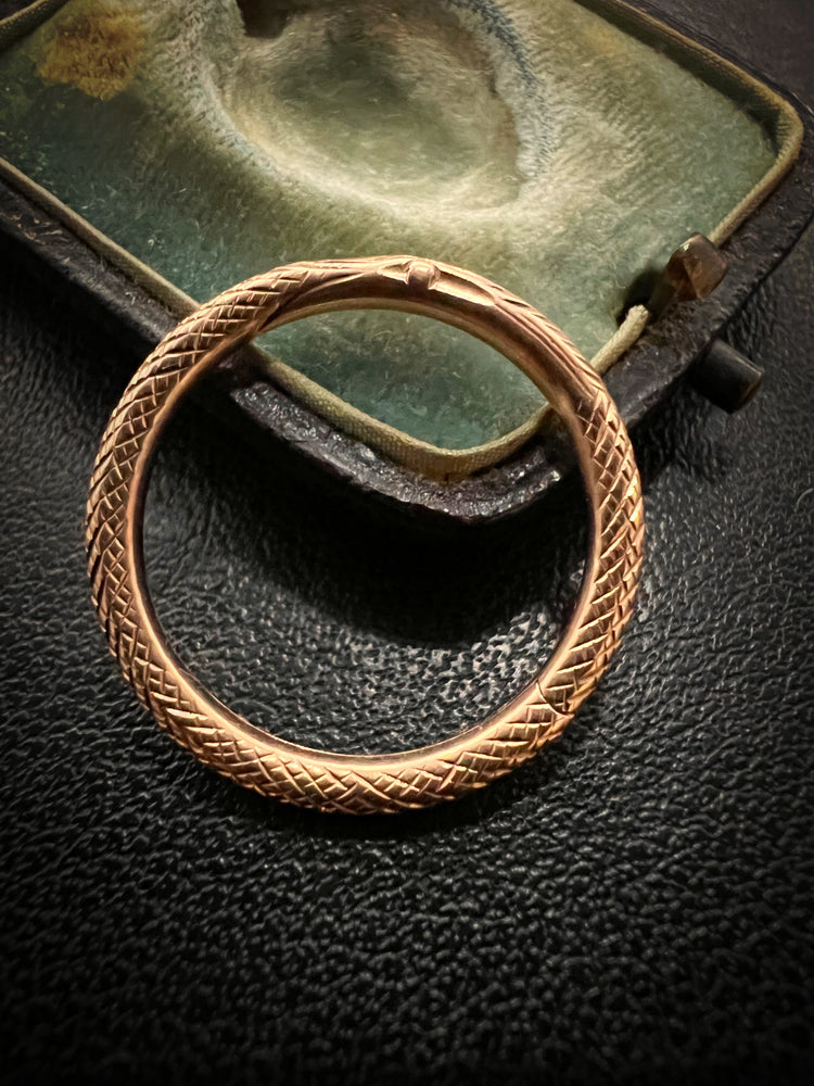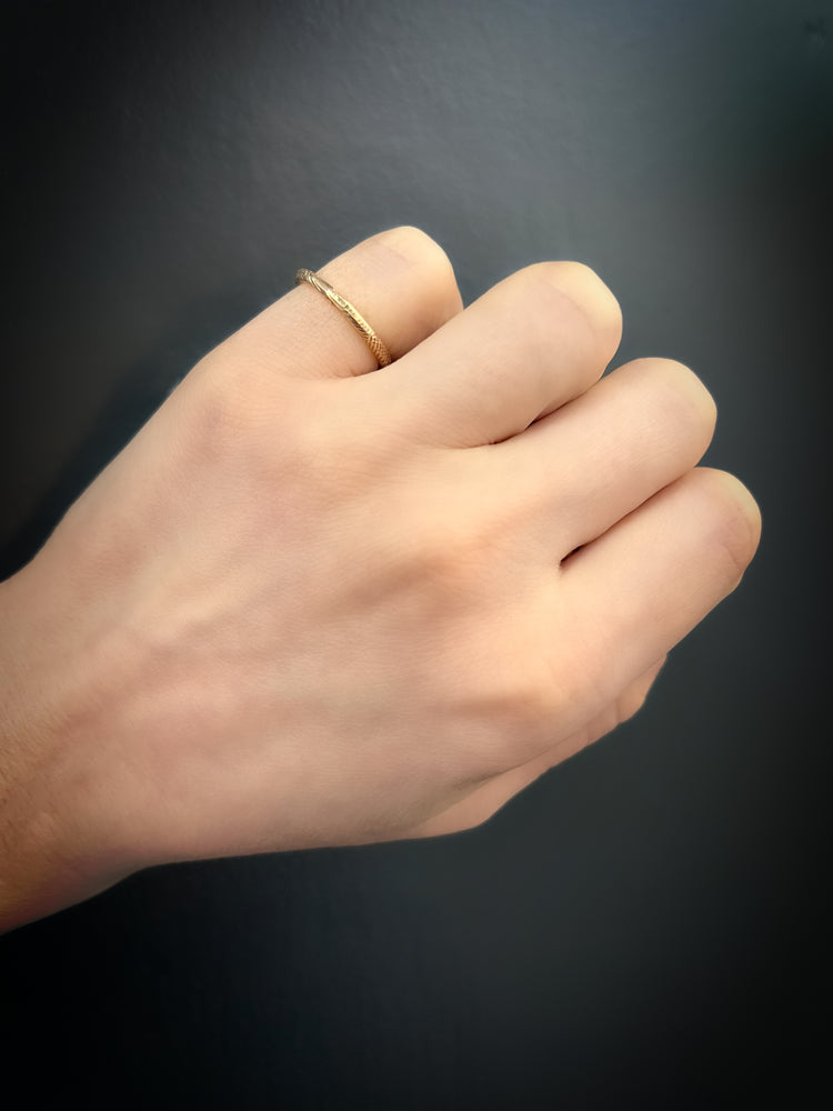The ring has defined cross hatching along the snakes body, and a finely carved head and eyes.