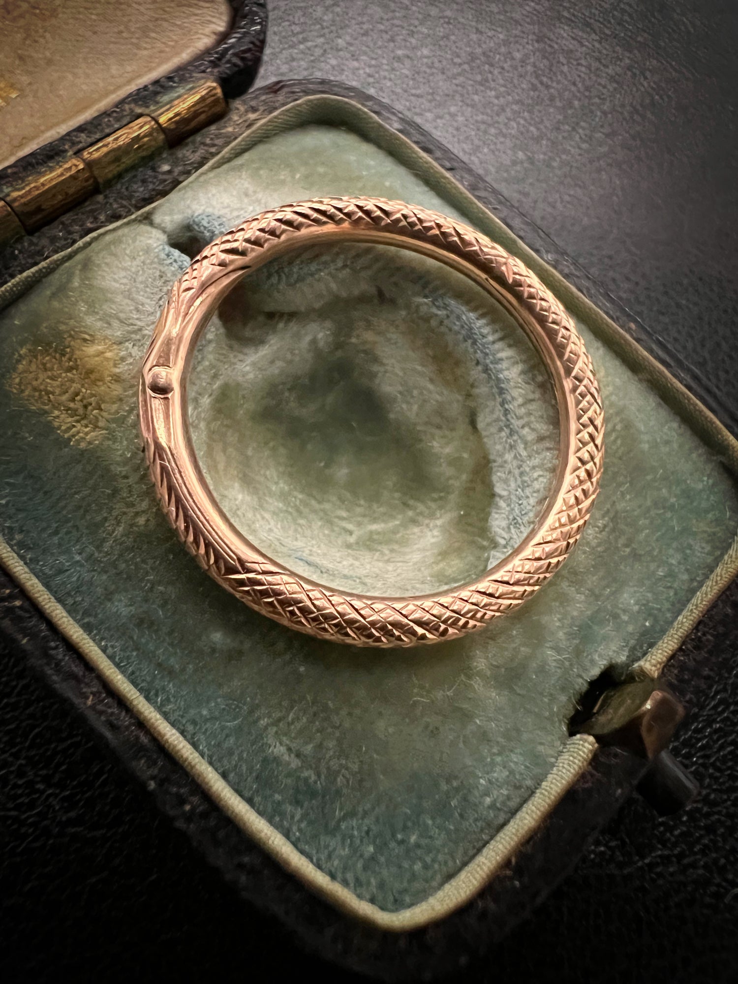 This is a fabulous Georgian split ring, circa 1820/30, modelled as an Ouroboros snake biting his tail.