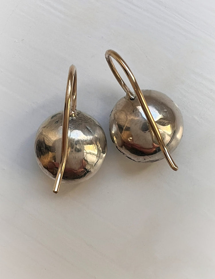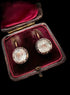 Likely converted from buttons or cufflinks, the earrings have been set with 9ct gold shepherds hook wires.