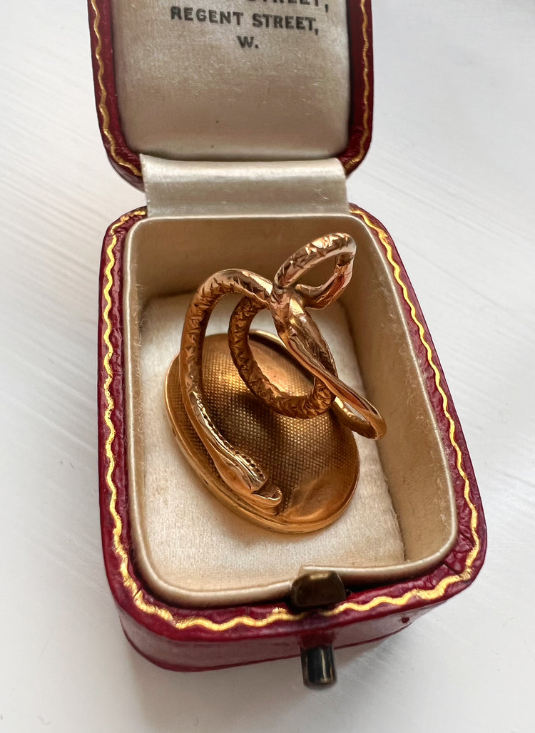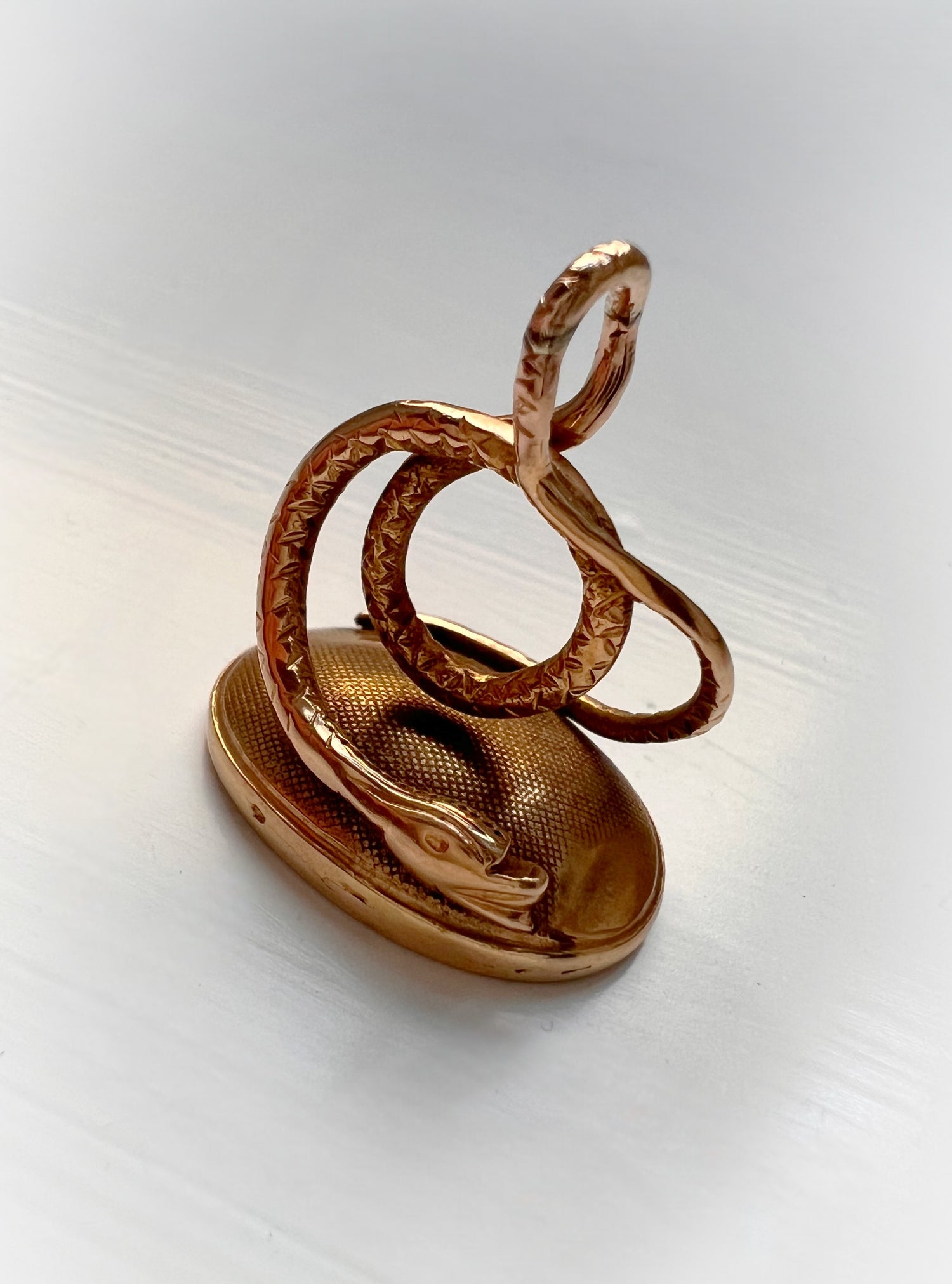 A gorgeous Georgian Regency coiled snake fob pendant.