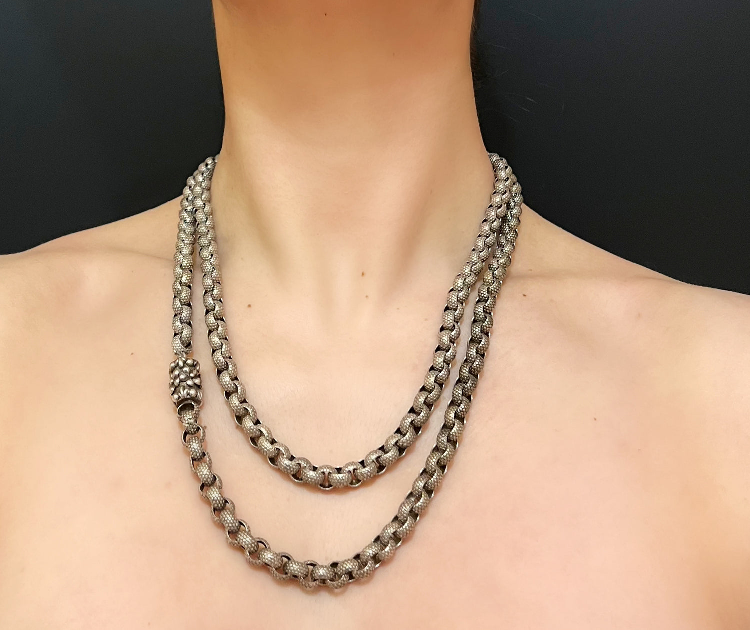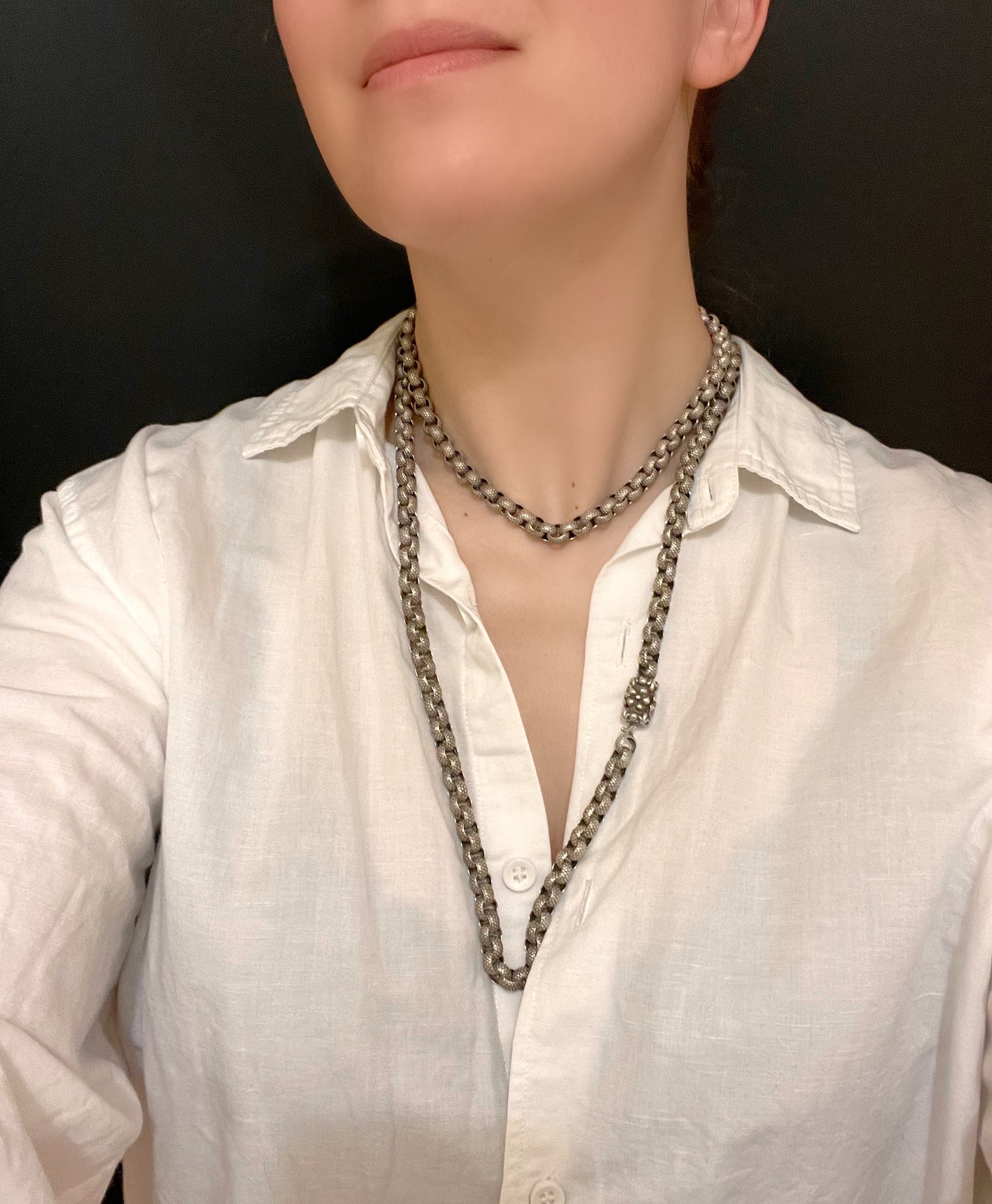 These silver Georgian chains are much rarer than the the gold and pinch belcher versions. Which makes this a collectors piece.
