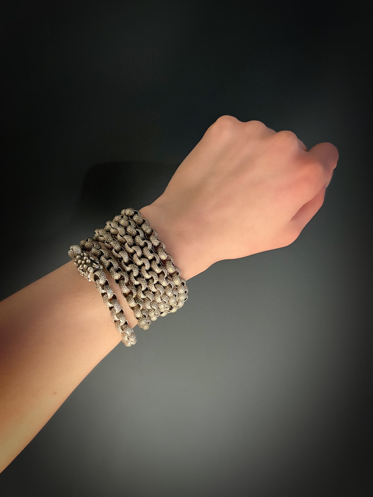 The links are a chunky belcher with a gorgeous circular pattern on every link.