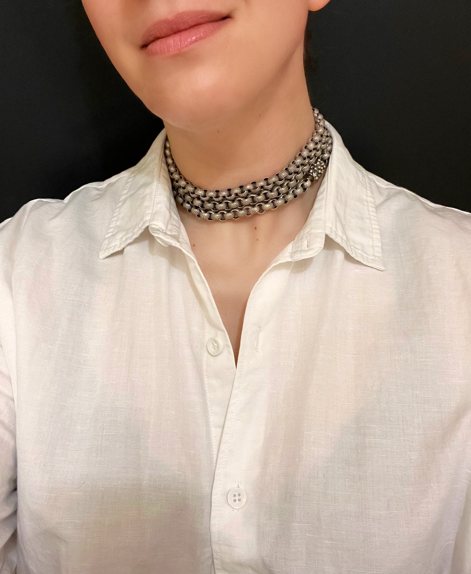 We recommend removing pieces of jewellery before washing hands or showering, as water can damage the antique settings.