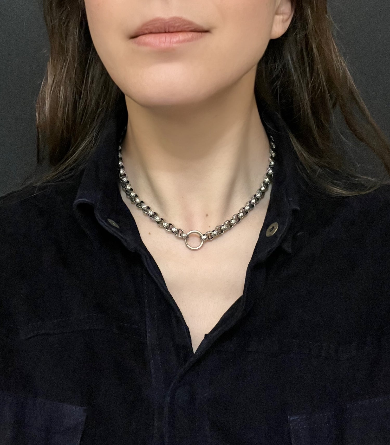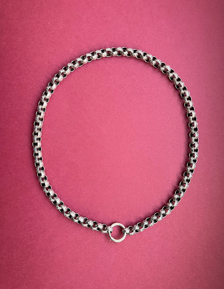 The chain fastens with a simple silver bolt ring that can also be used to hang pendants from.