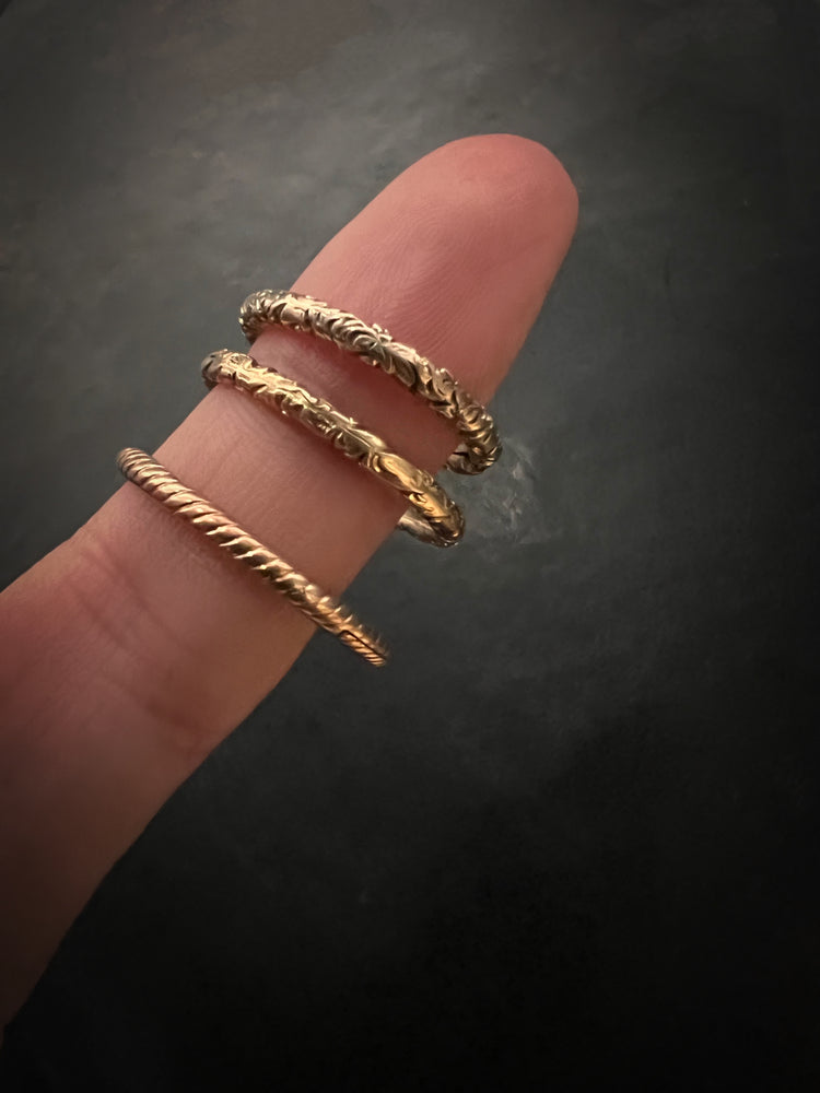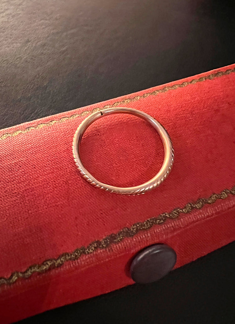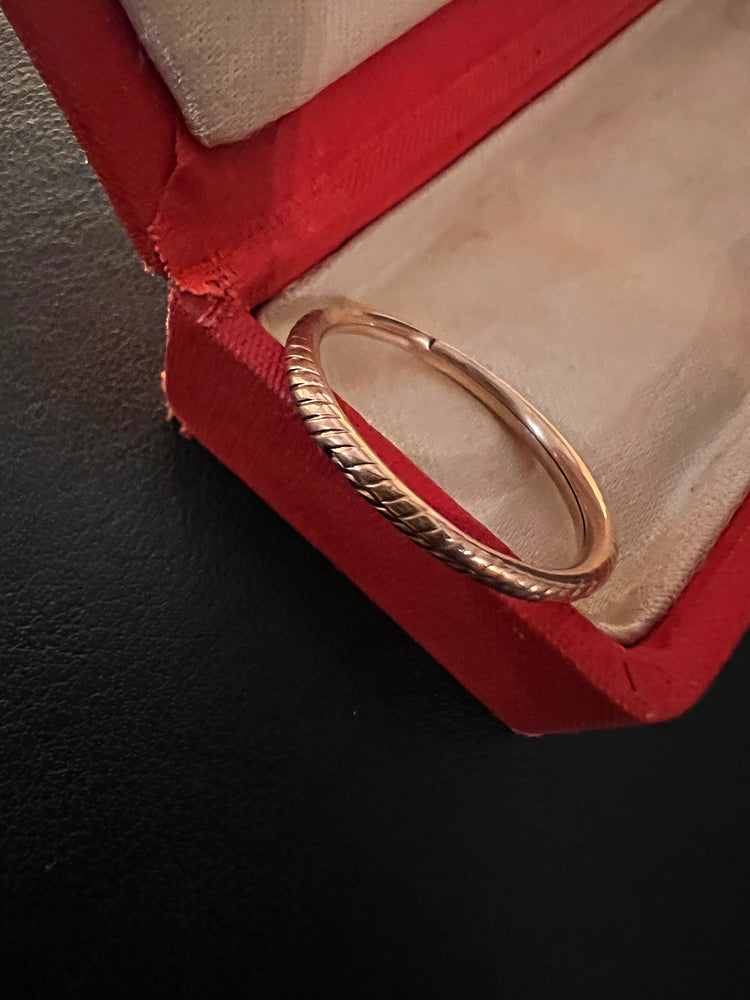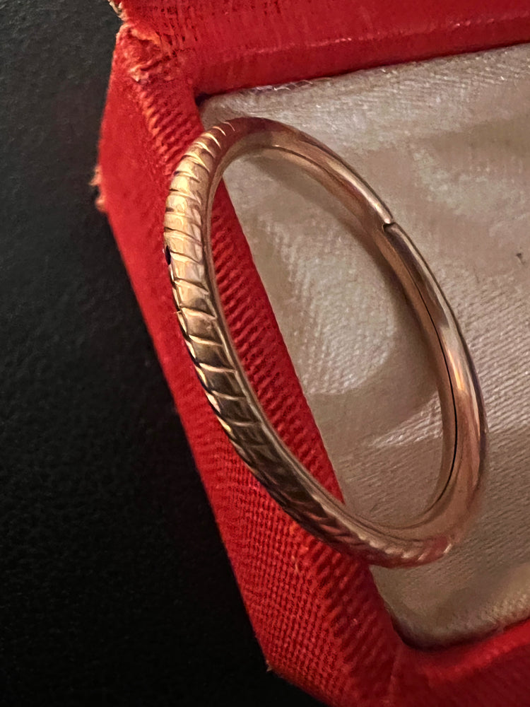 A stunning Georgian 15ct gold split ring, with rarely seen striped chasing.