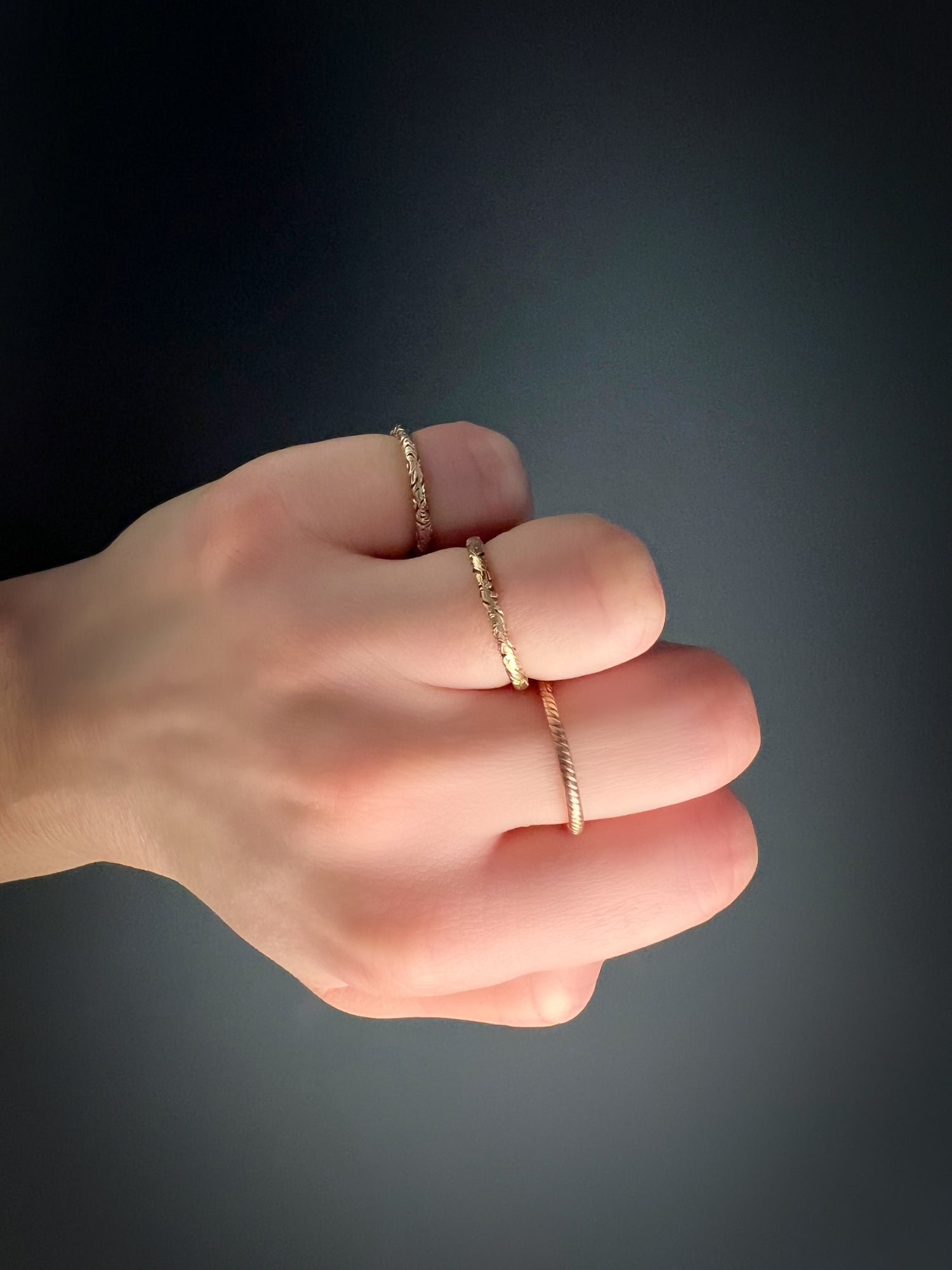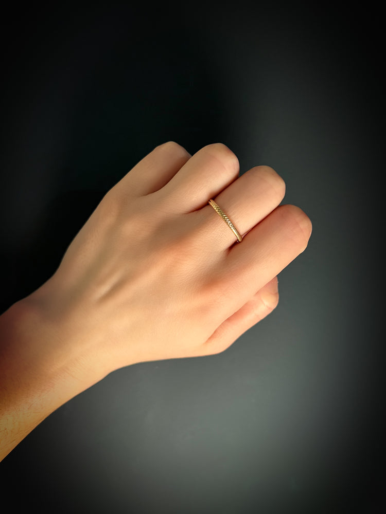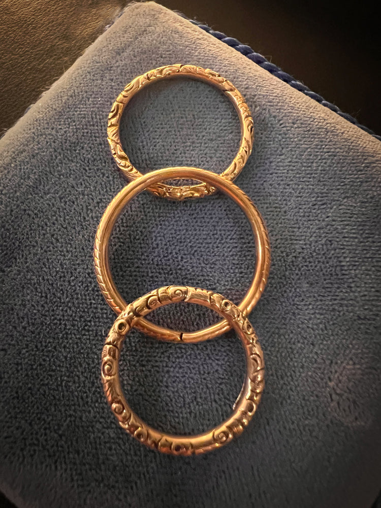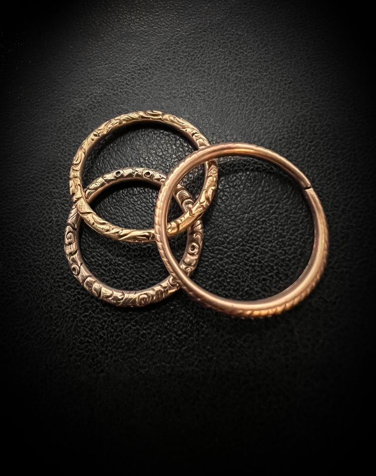 A stunning Georgian 15ct gold split ring, with rarely seen striped chasing.