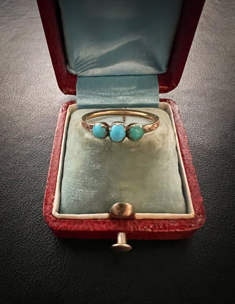 A totally unique Georgian three stone Turquoise mourning ring.