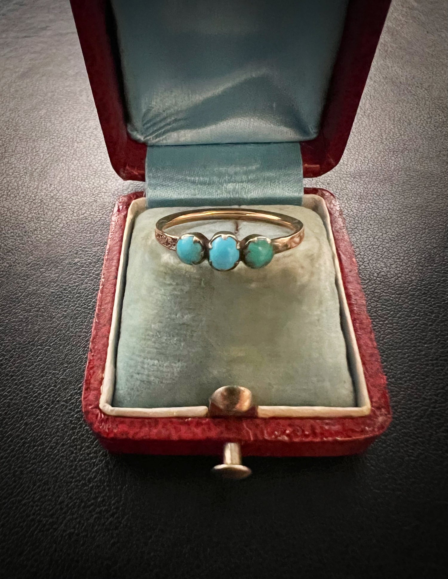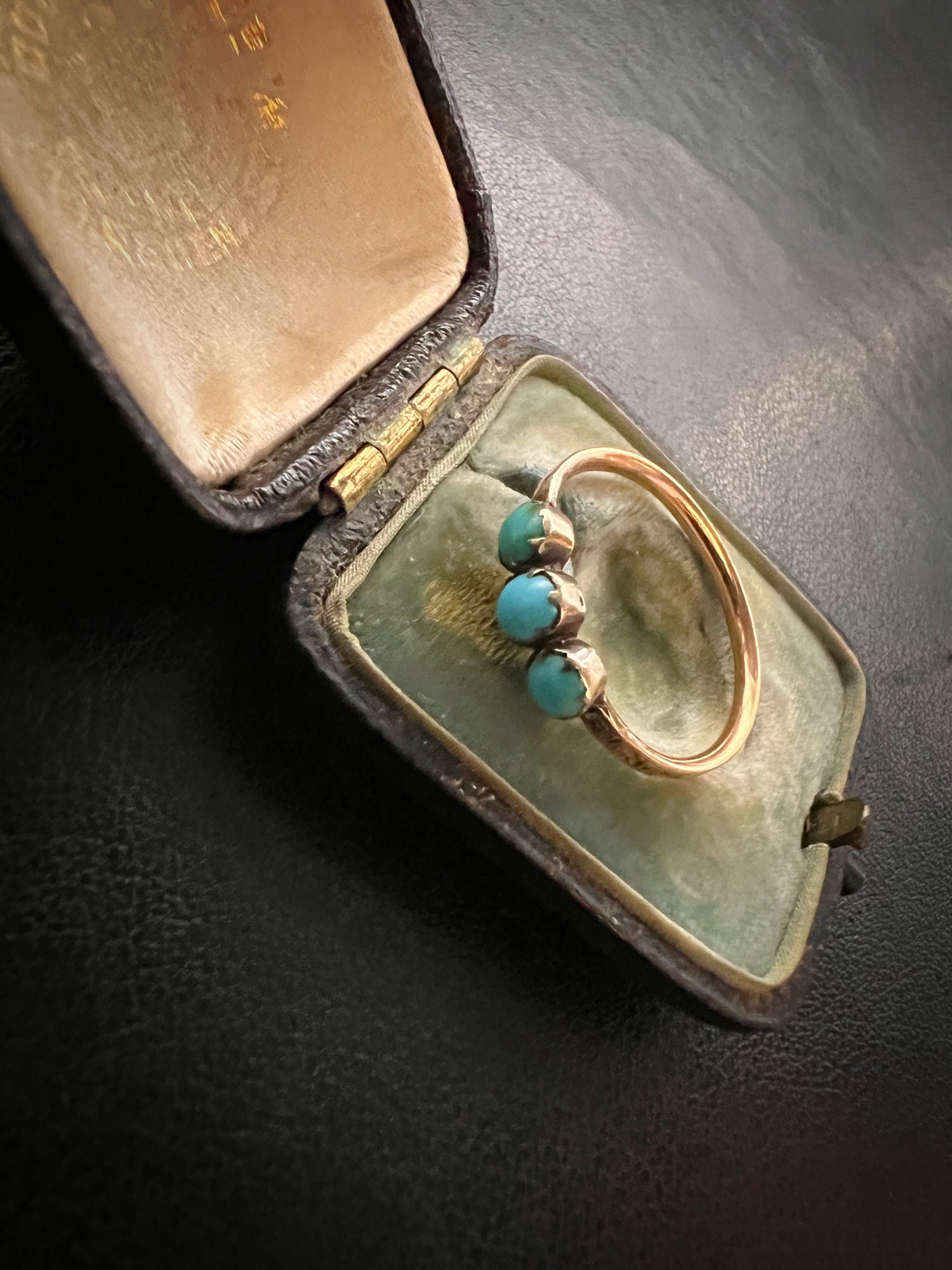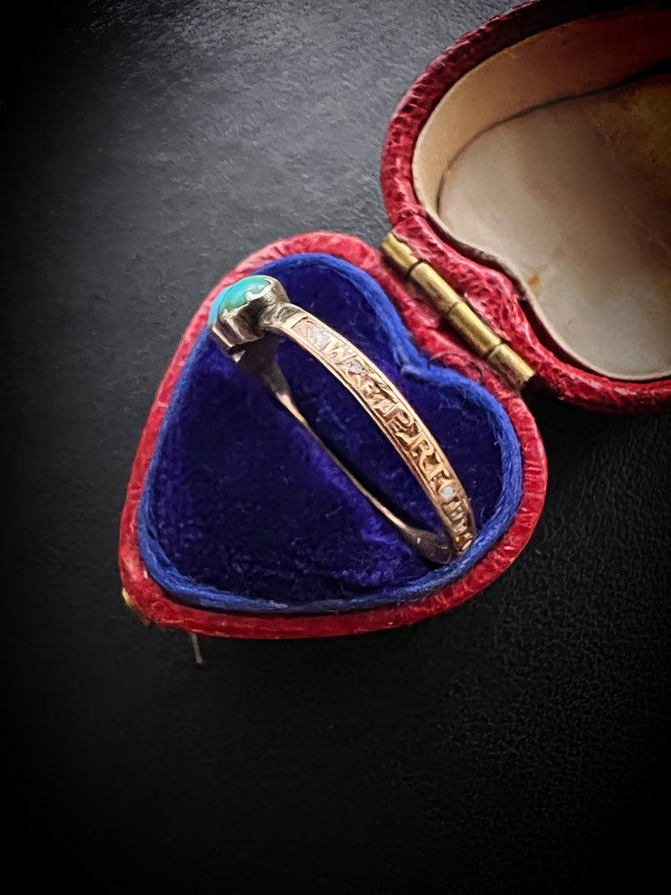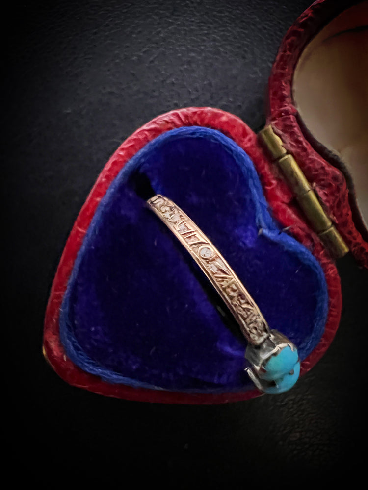 It’s really unusual to find a mourning ring with Turquoise stones, making this a completely unique piece.