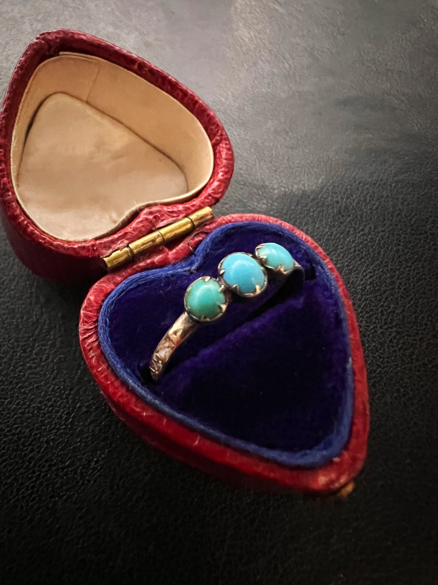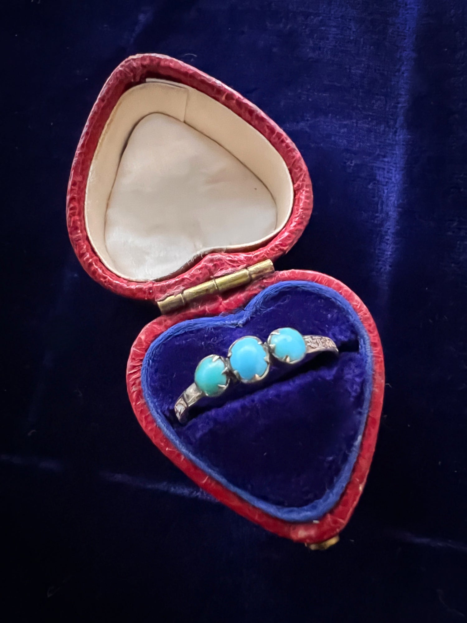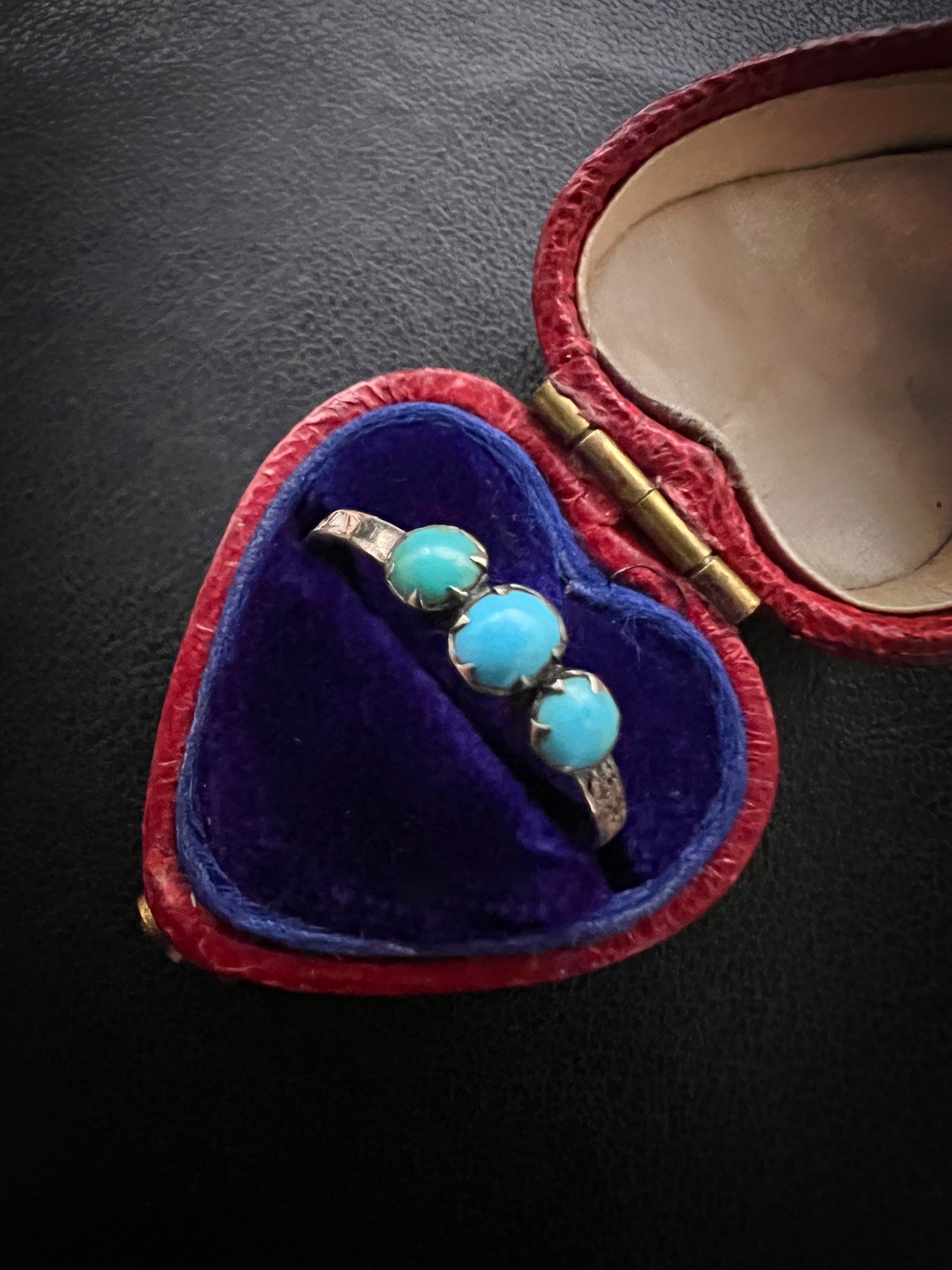 It’s really unusual to find a mourning ring with Turquoise stones, making this a completely unique piece.