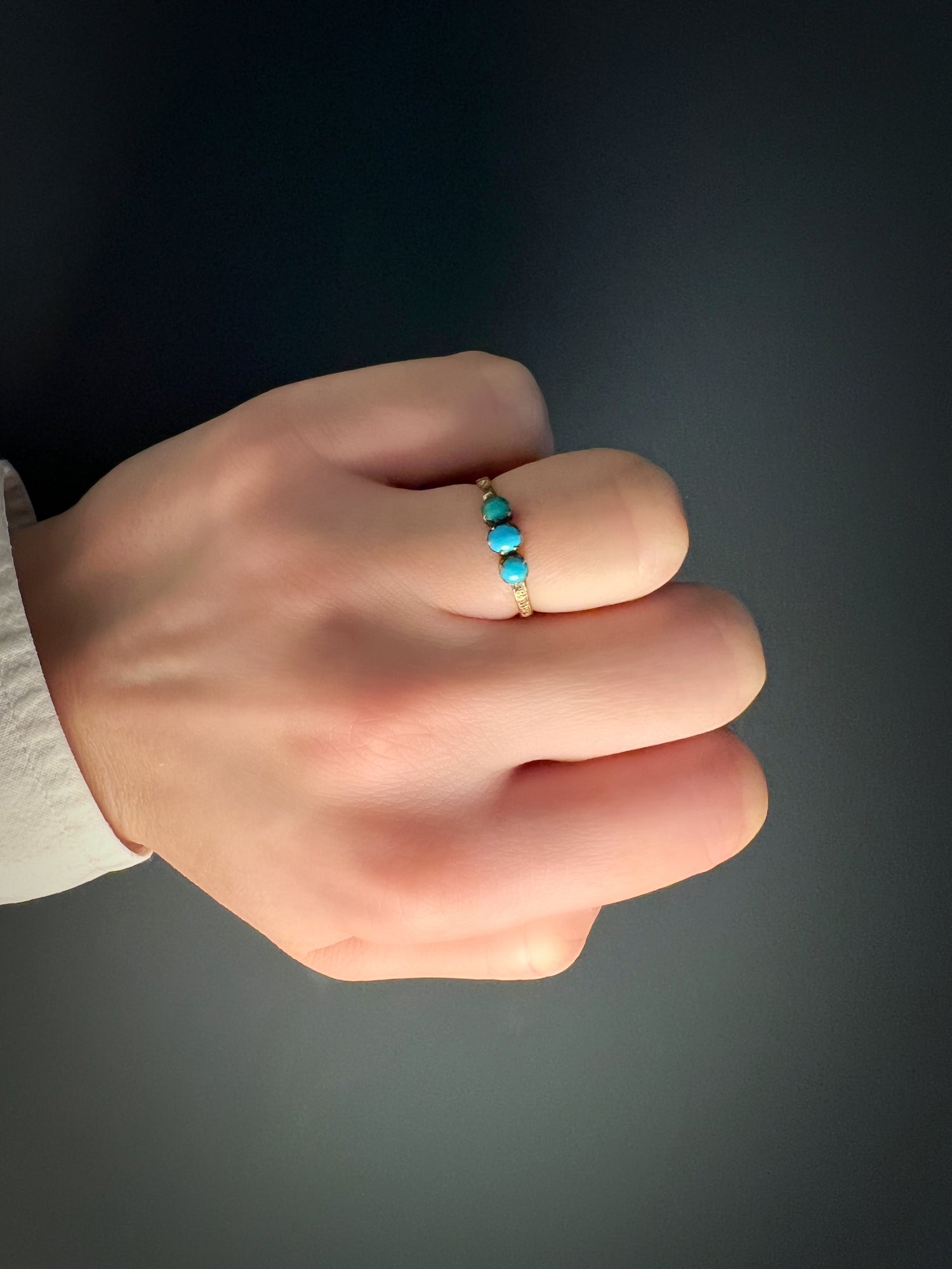 The Turquoise stones have a lovely variation of colour which adds to the rings charm.