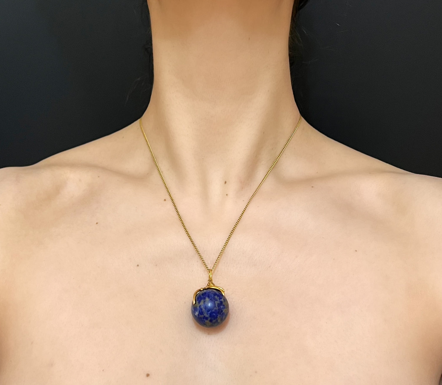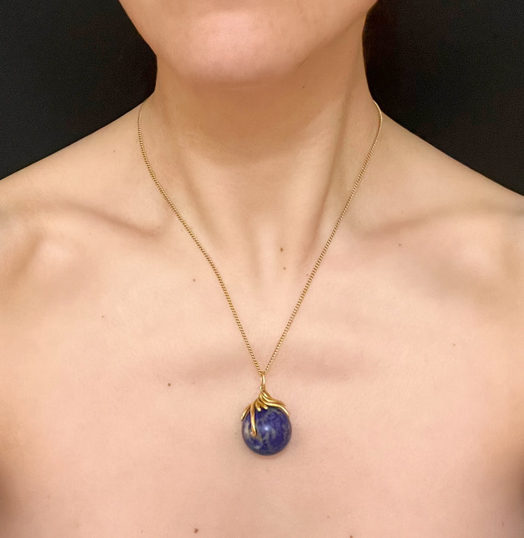 LAPIS LAZULI GLOBE PENDANT WITH 18CT TWISTED BAIL